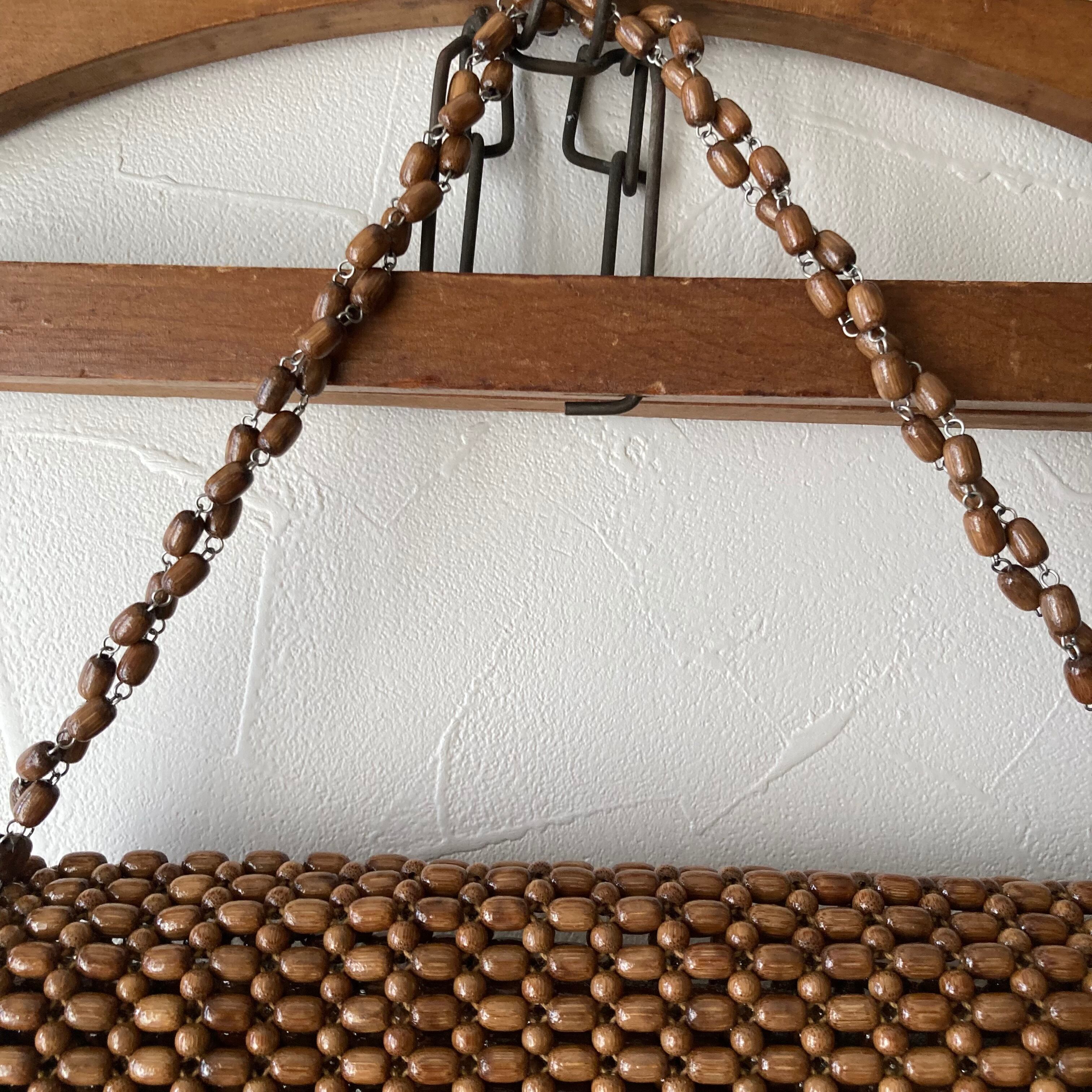 レトロ古着やお着物に似合いそうなウッドビーズのバッグです。