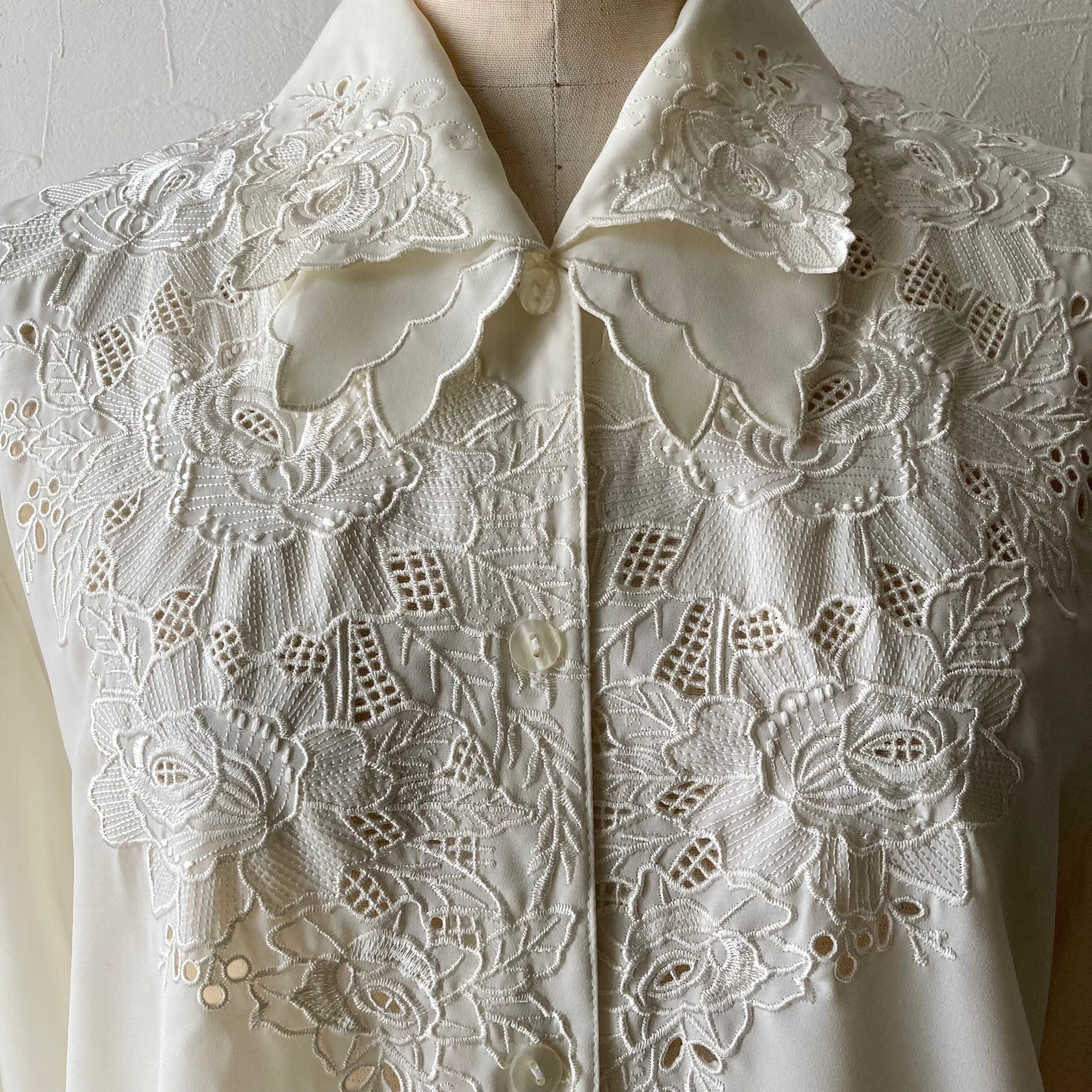 カットワーク花刺繍ブラウス 古着 used vintage レトロ