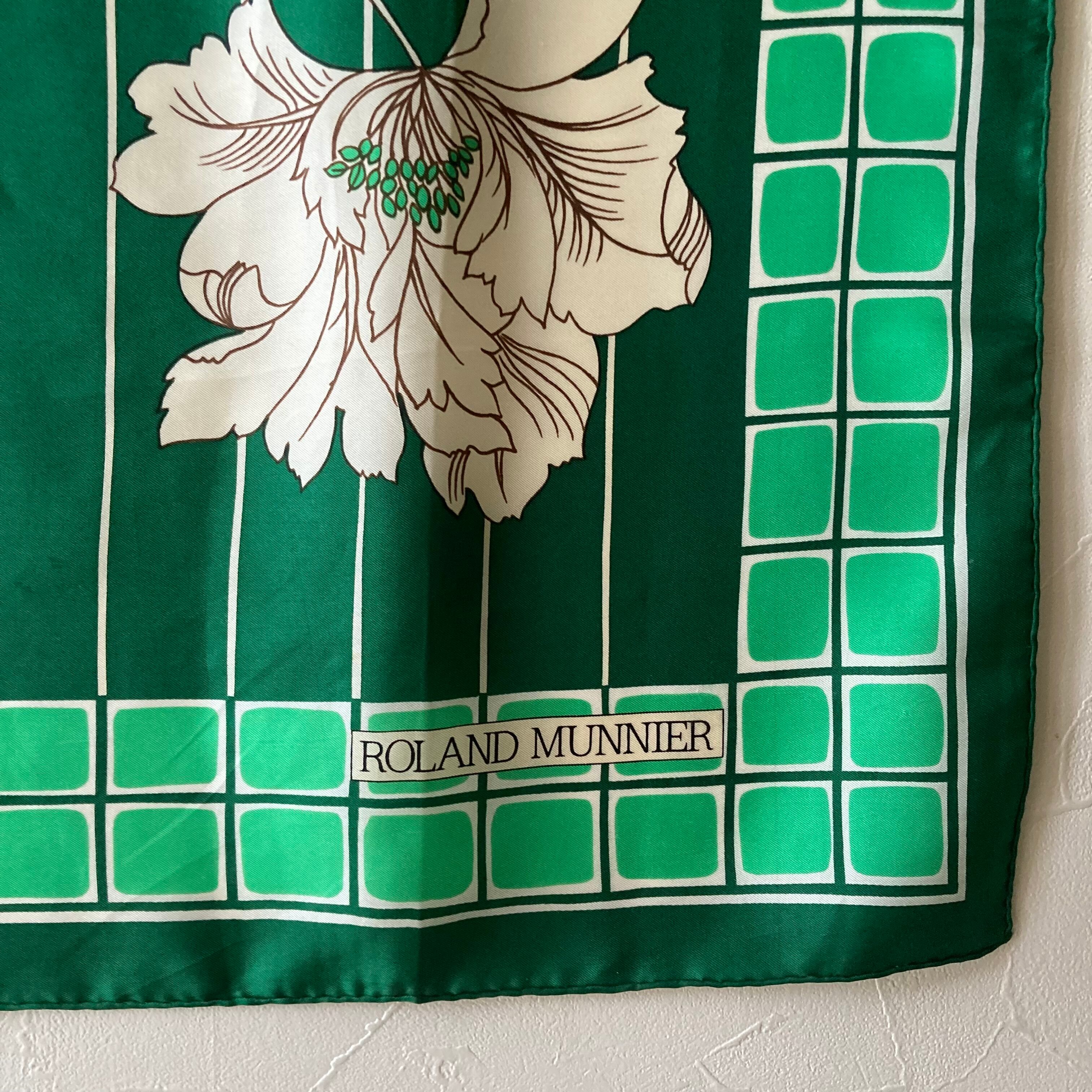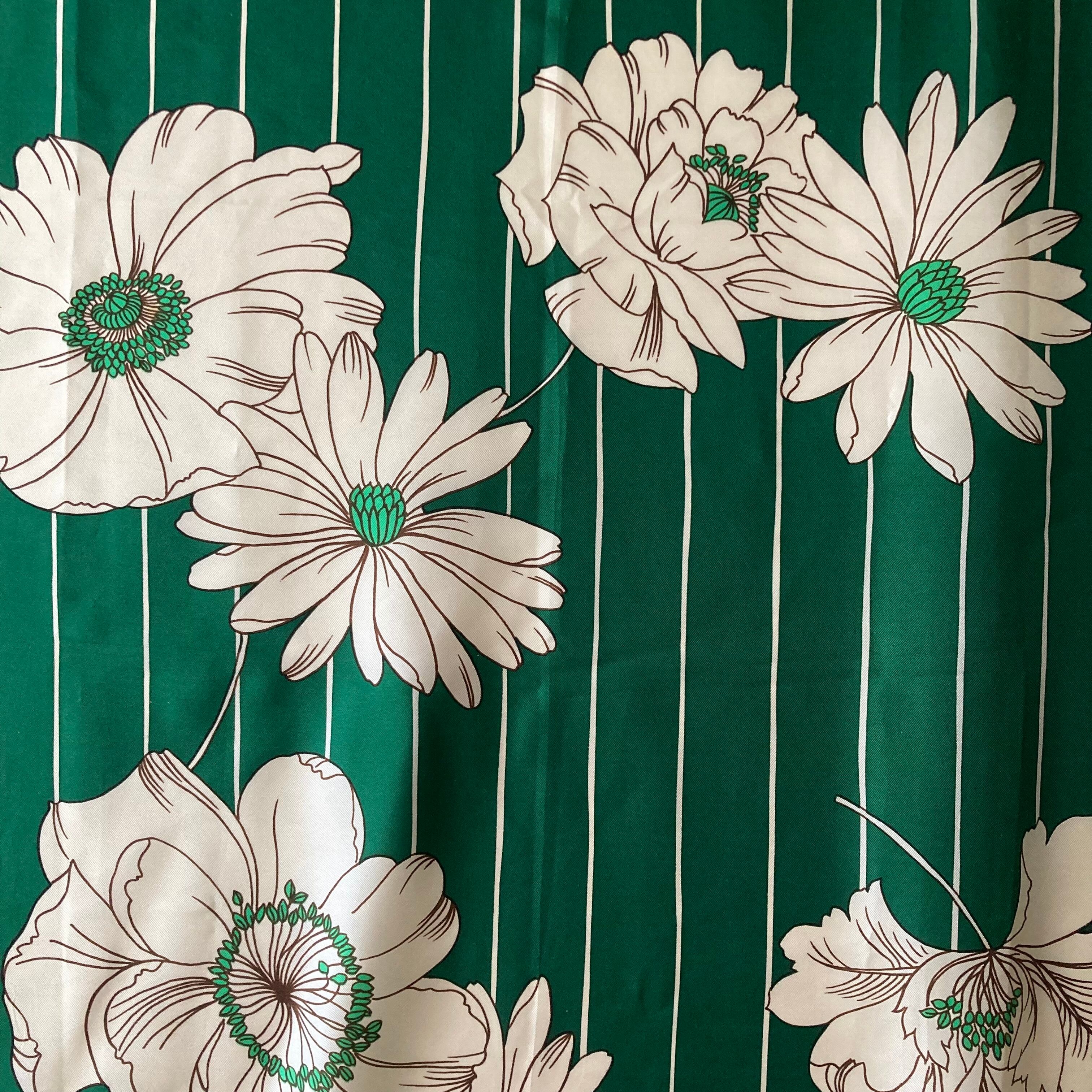 グリーンに白い花柄がレトロで素敵なスカーフです。