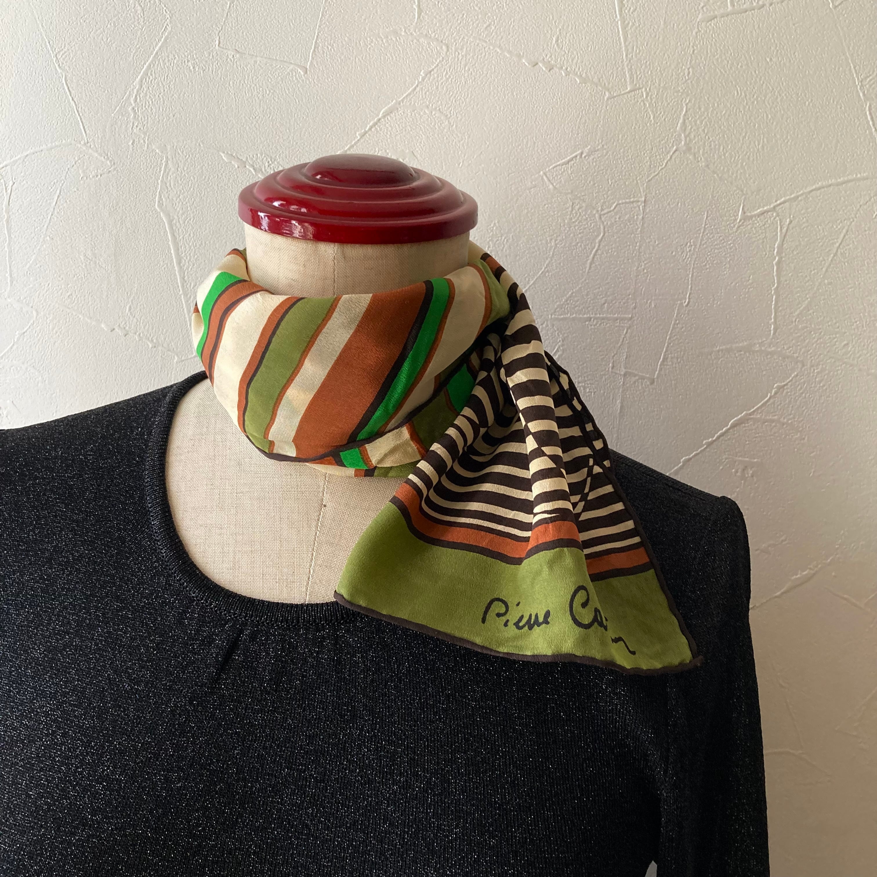 レトロな色柄のピエールカルダンのスカーフ◯細長い形で巻きやすいです。