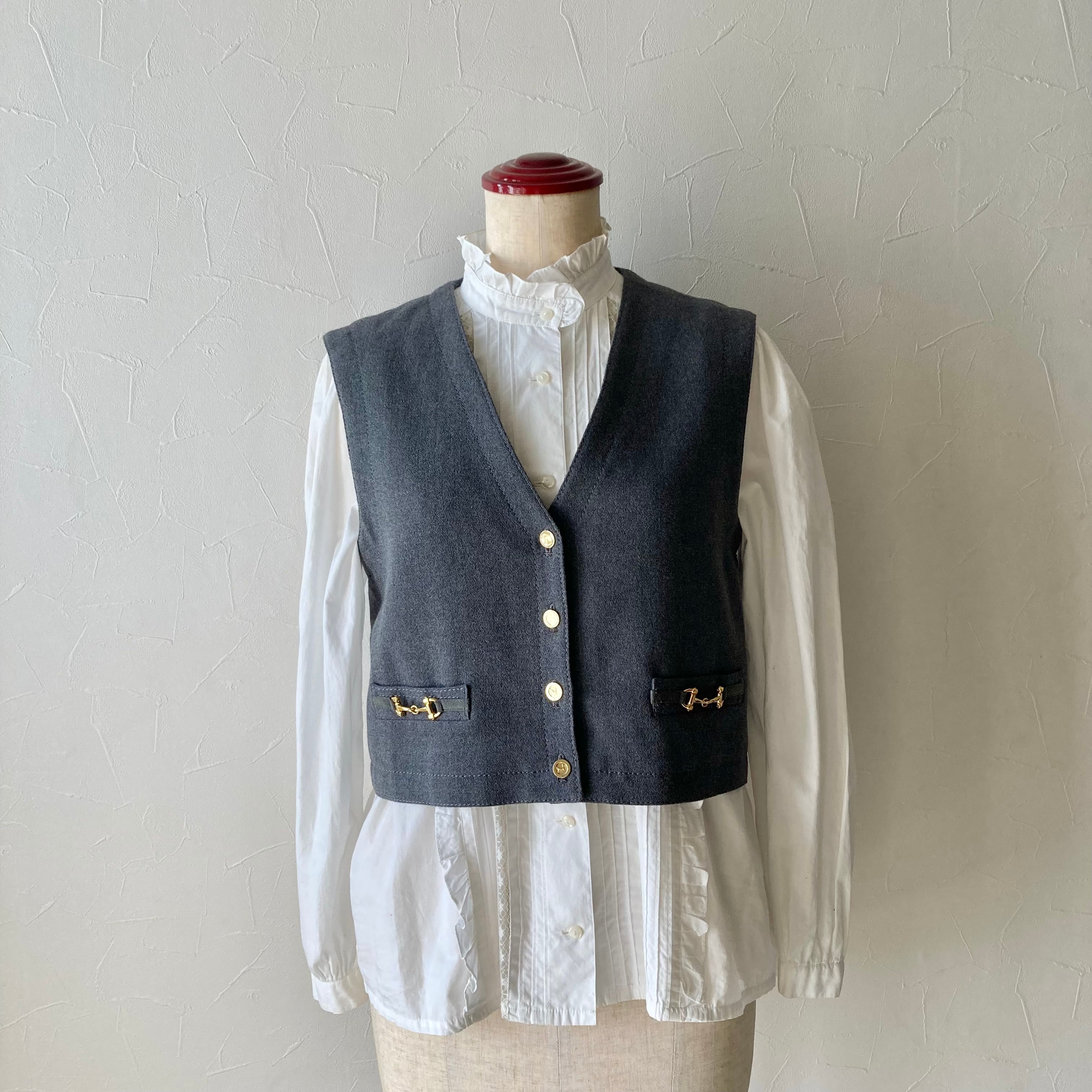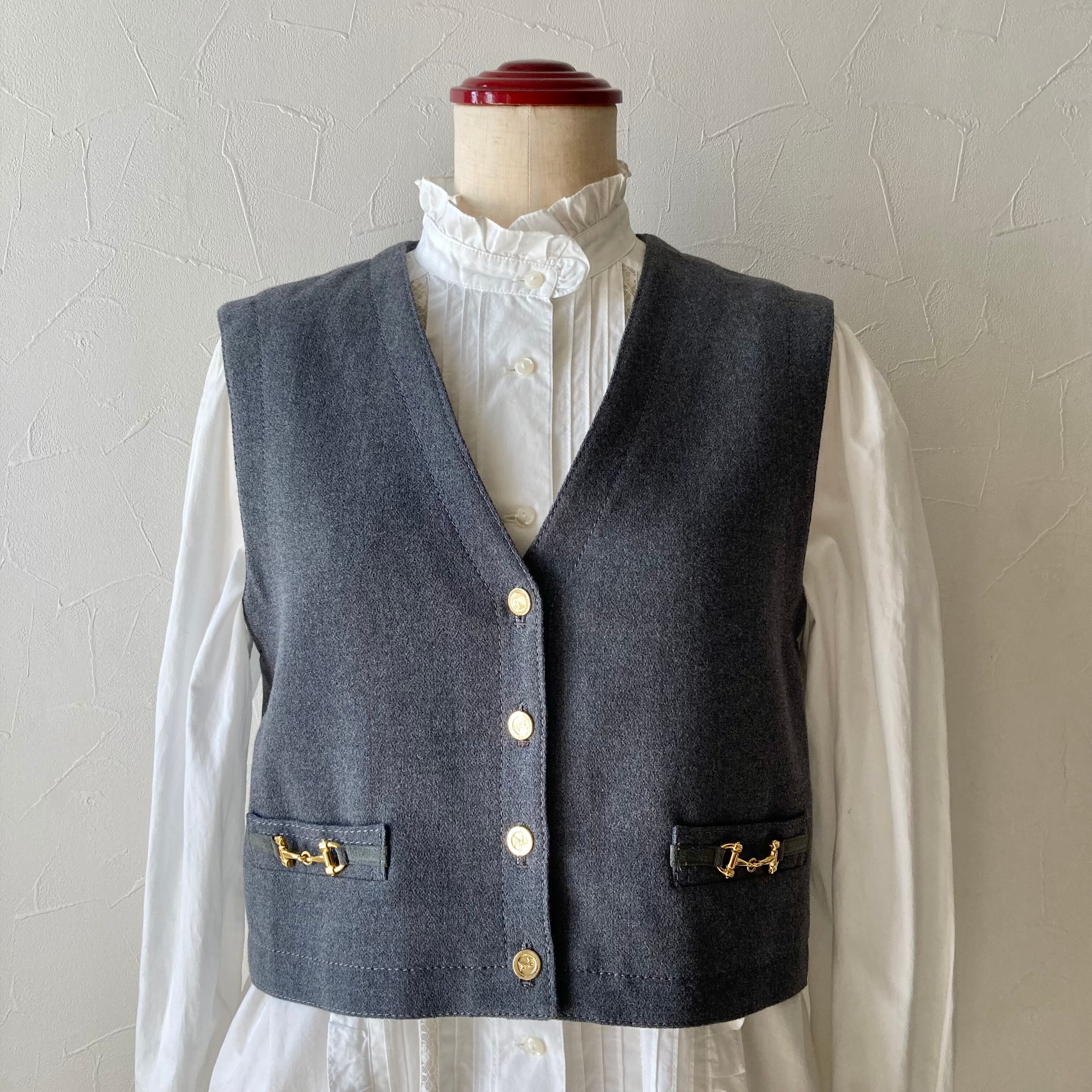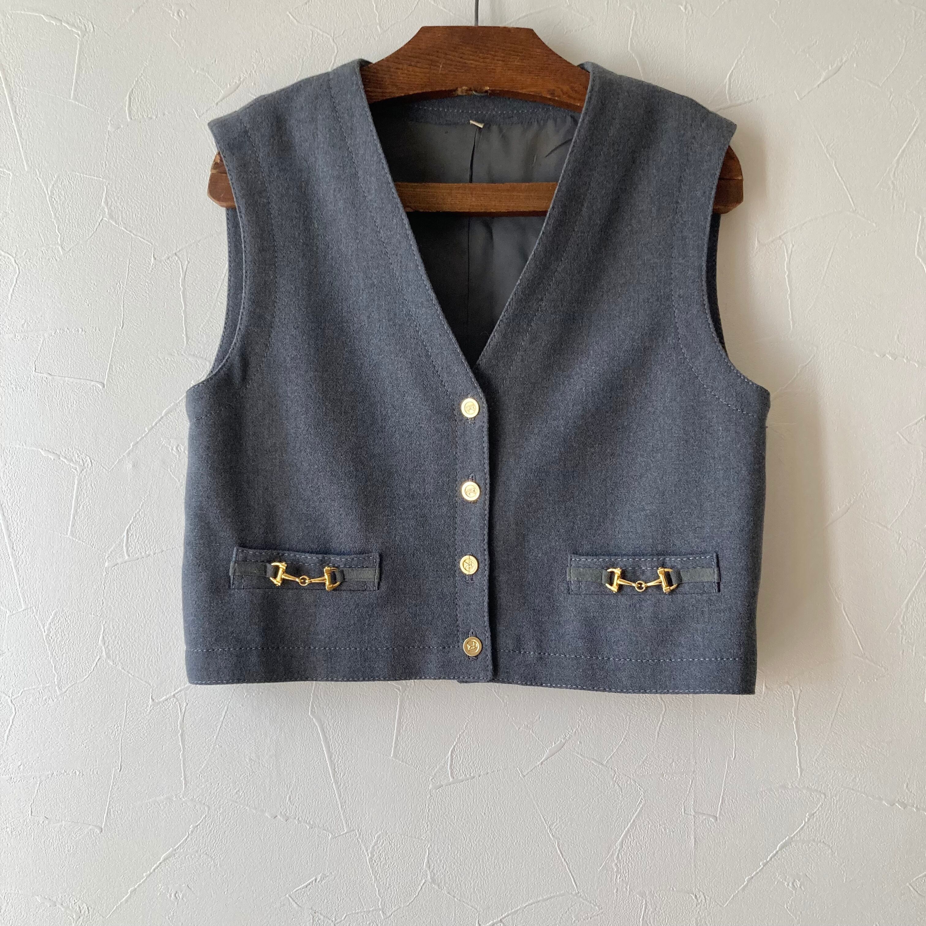 ゴールドのレトロな装飾が素敵なグレーのベストです。
