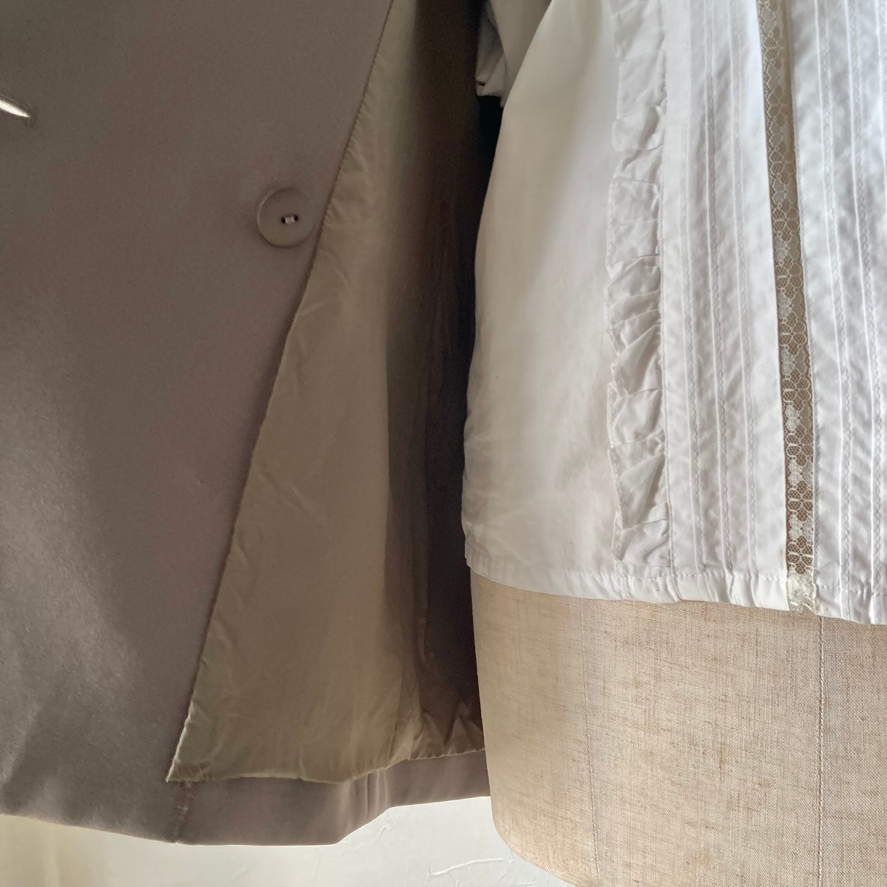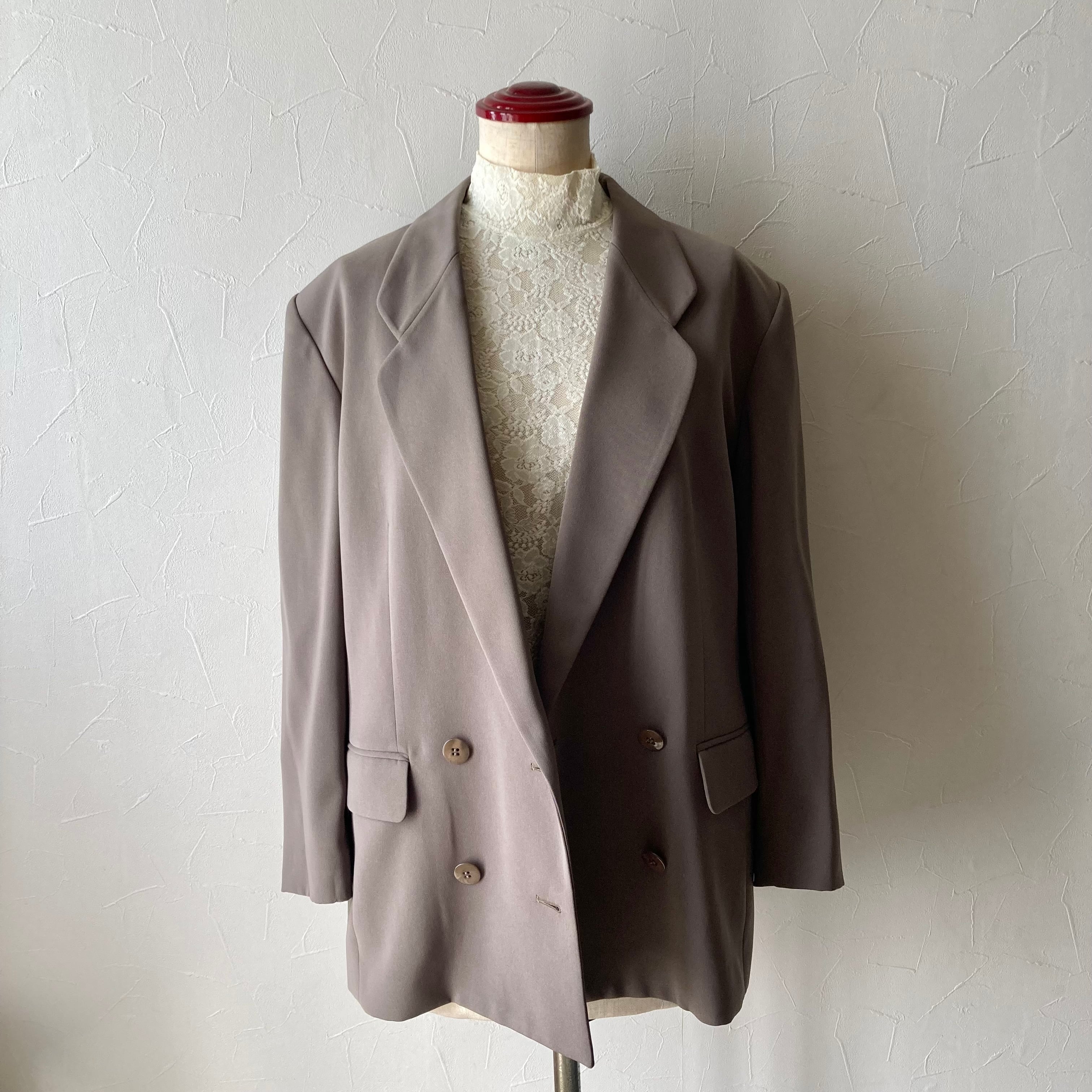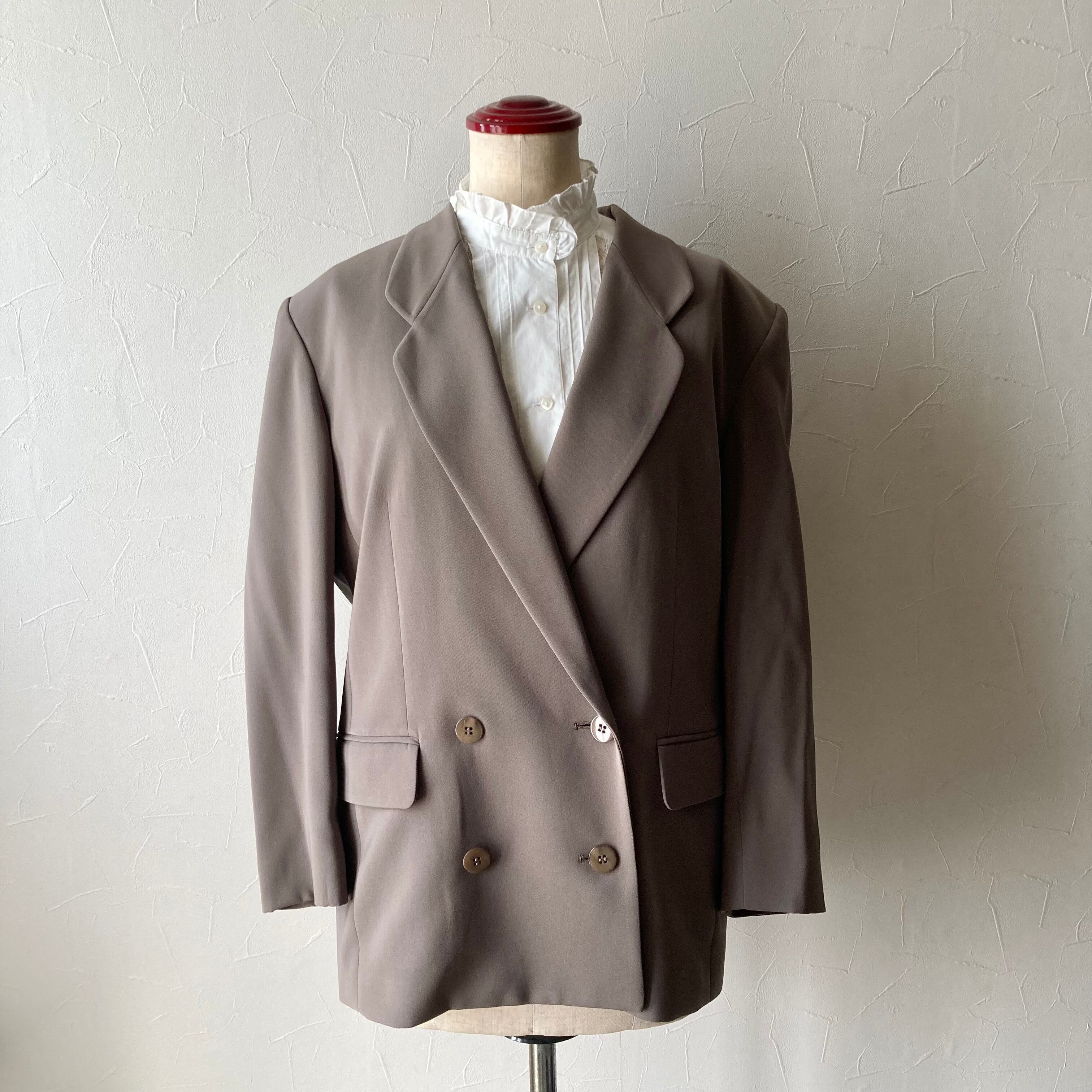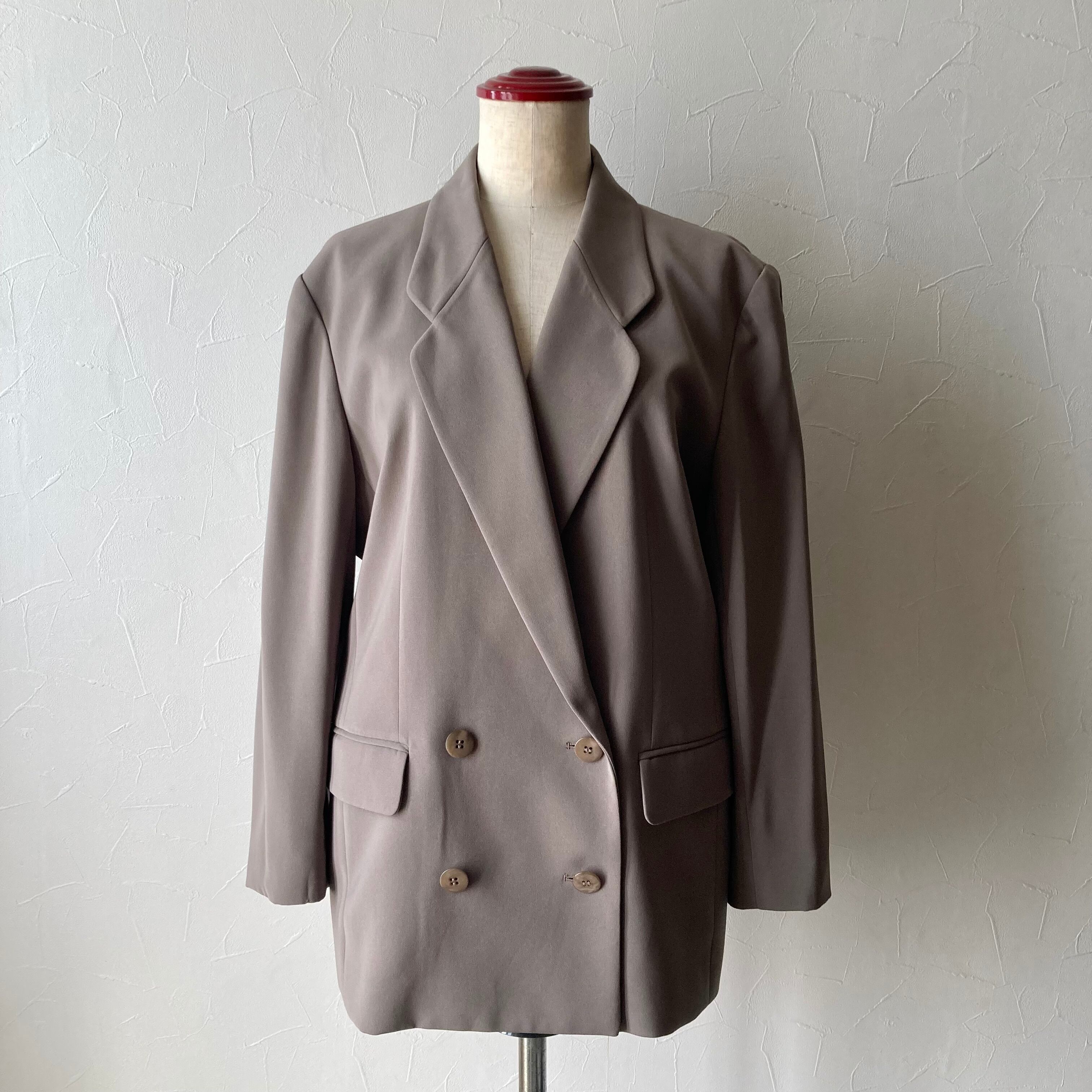 ベージュとカーキが混ざったようなお色のダブルボタンジャケット◯裏地付き軽い着心地で、これからの季節にぴったりなジャケットです。ゆったりめに着られて可愛いサイズ感です。