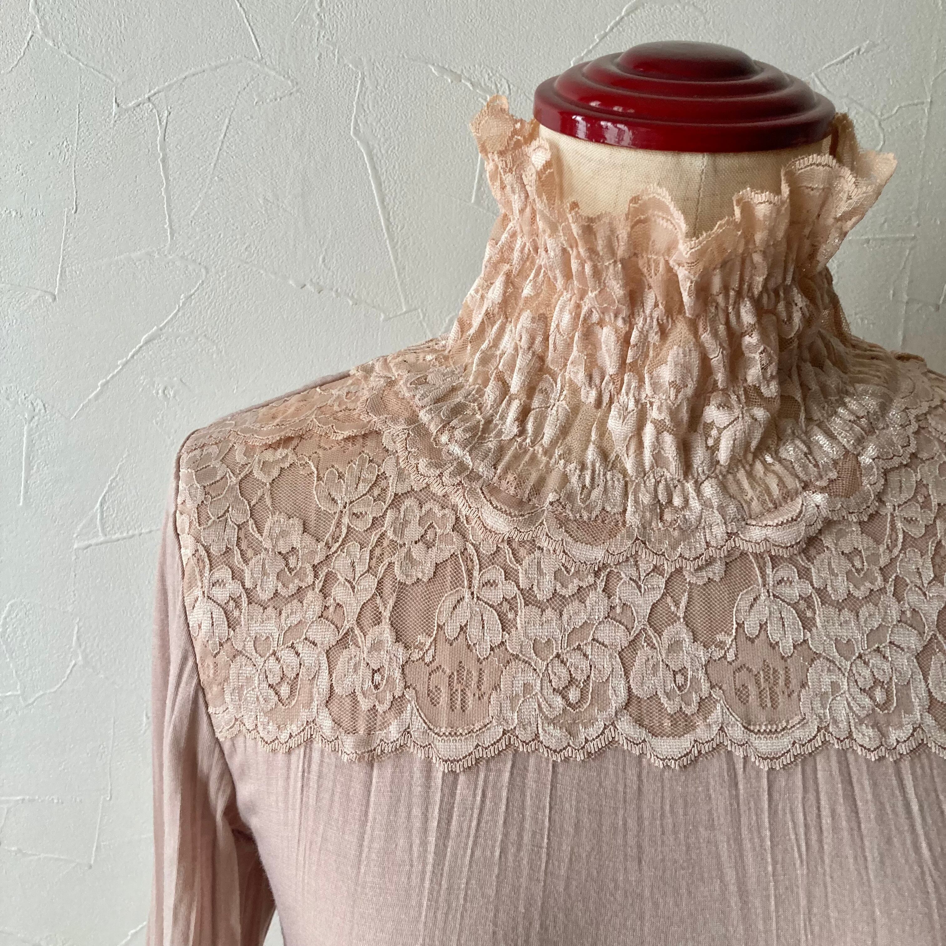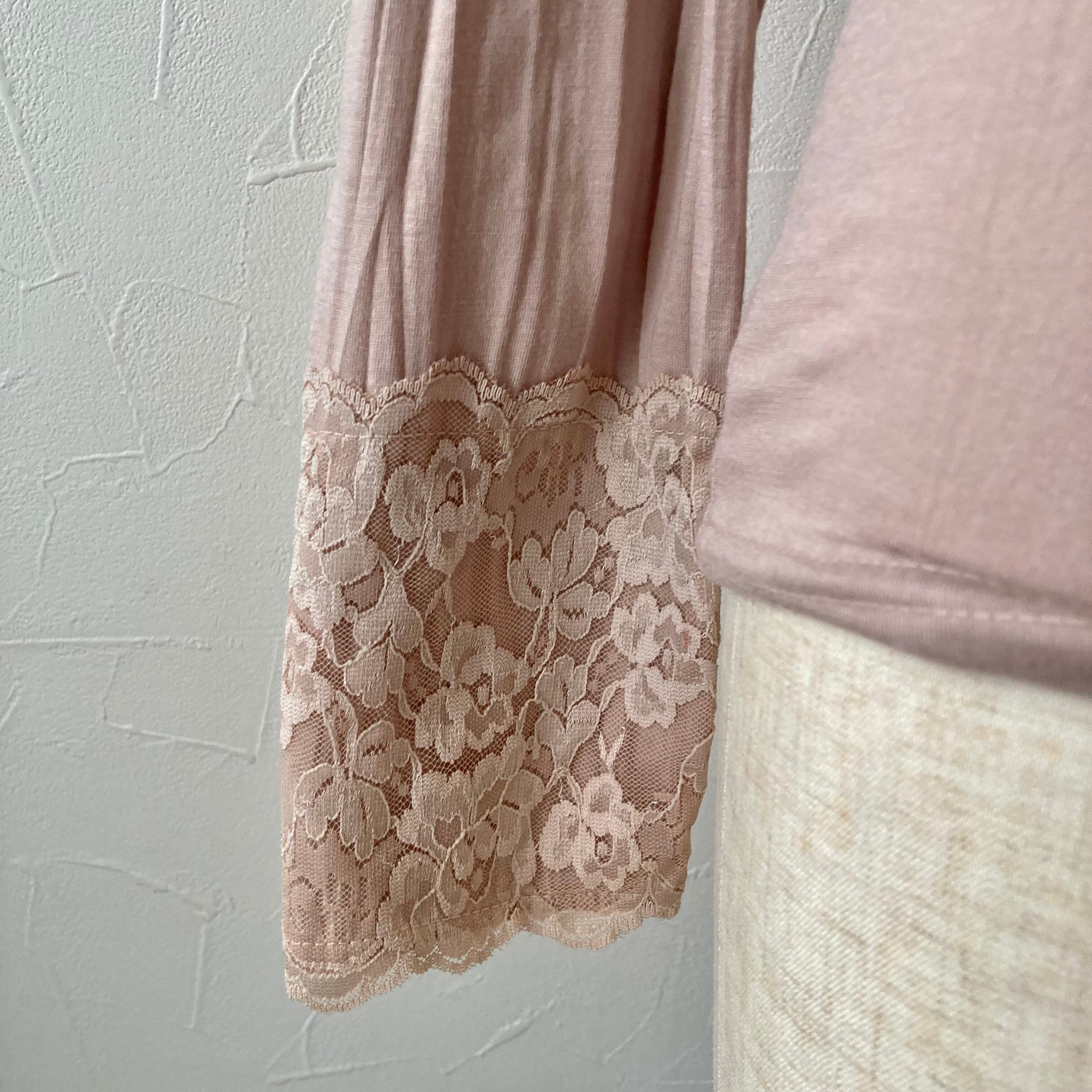 首のフリフリレースや袖のレースがとても素敵です。肌触りがよく伸縮性もあるので着心地もよく、春のインナーとして活躍してくれそうな一枚です。
