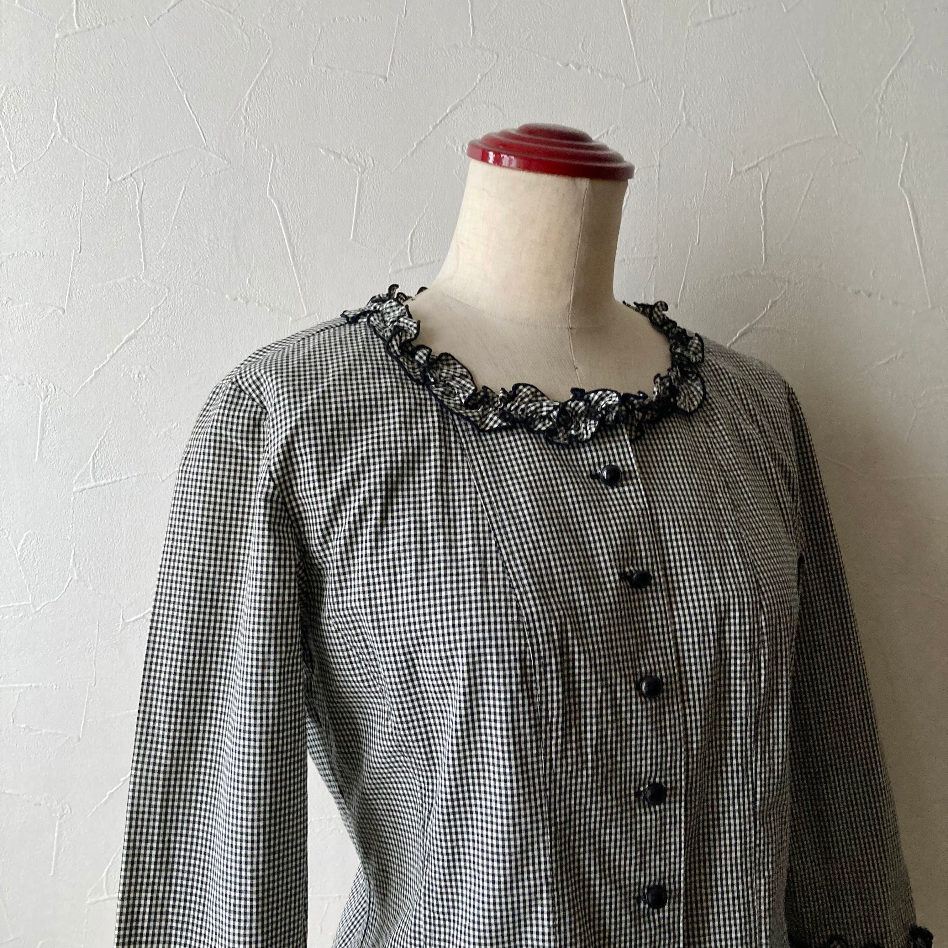 コットンギンガムチェックブラウス 古着 used vintage レトロ