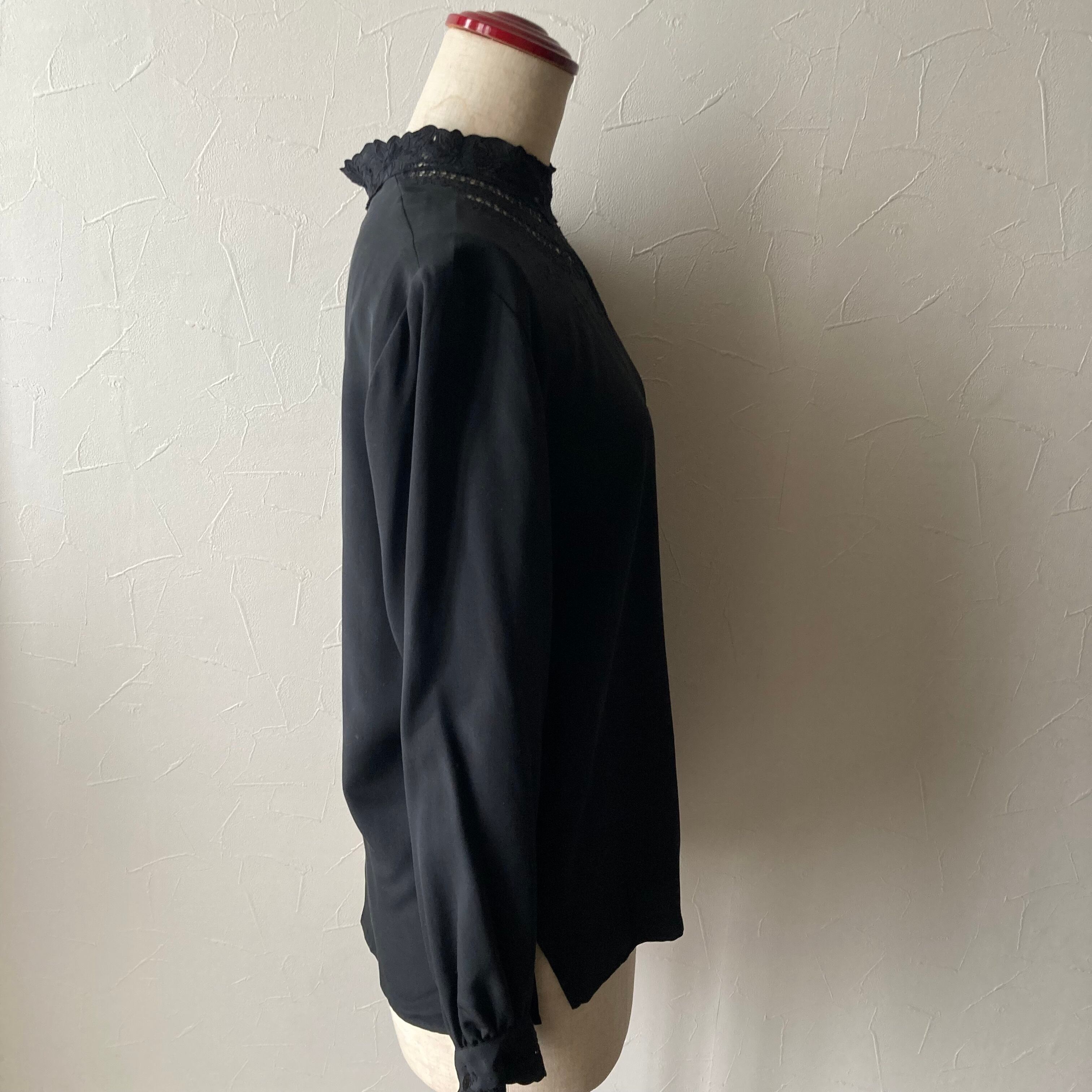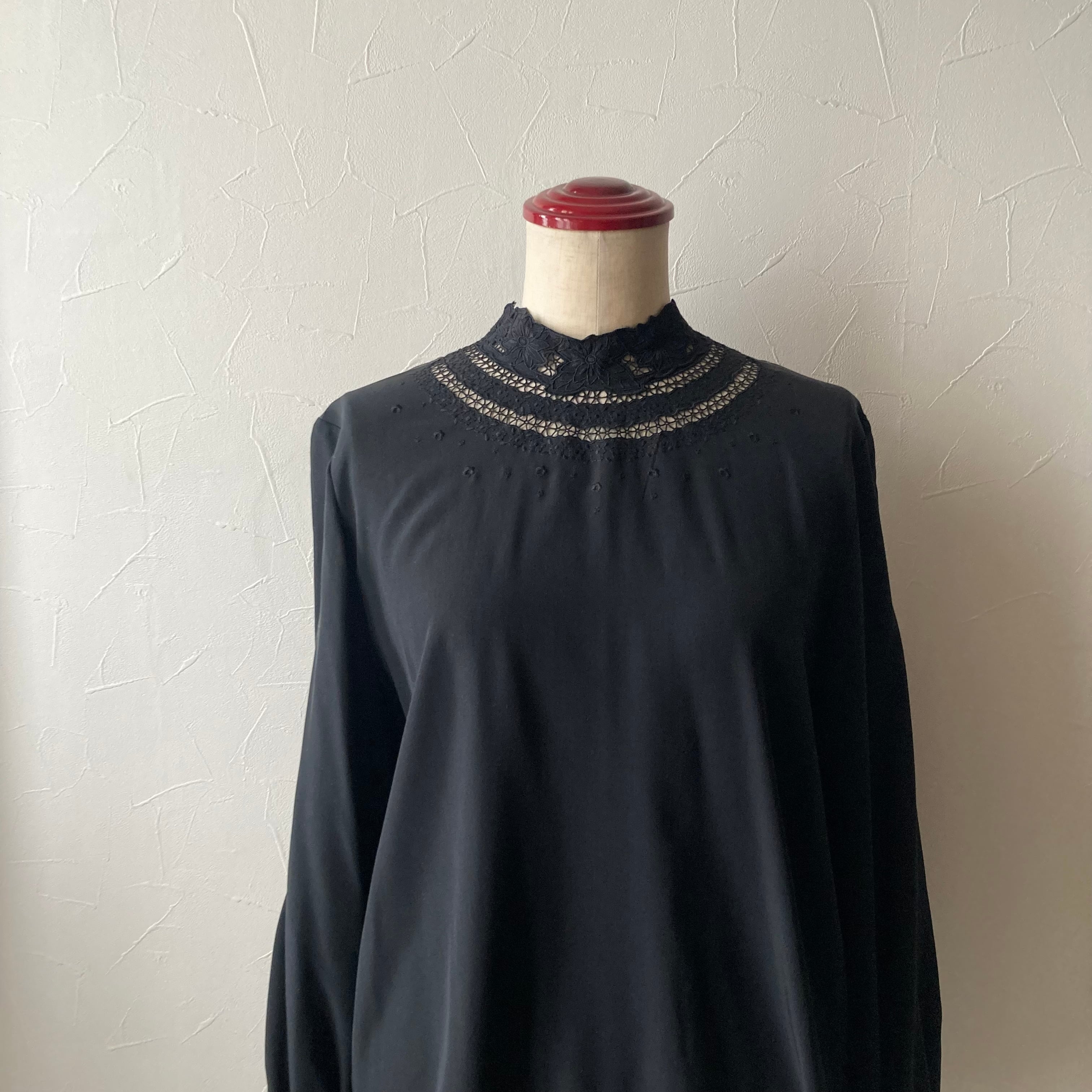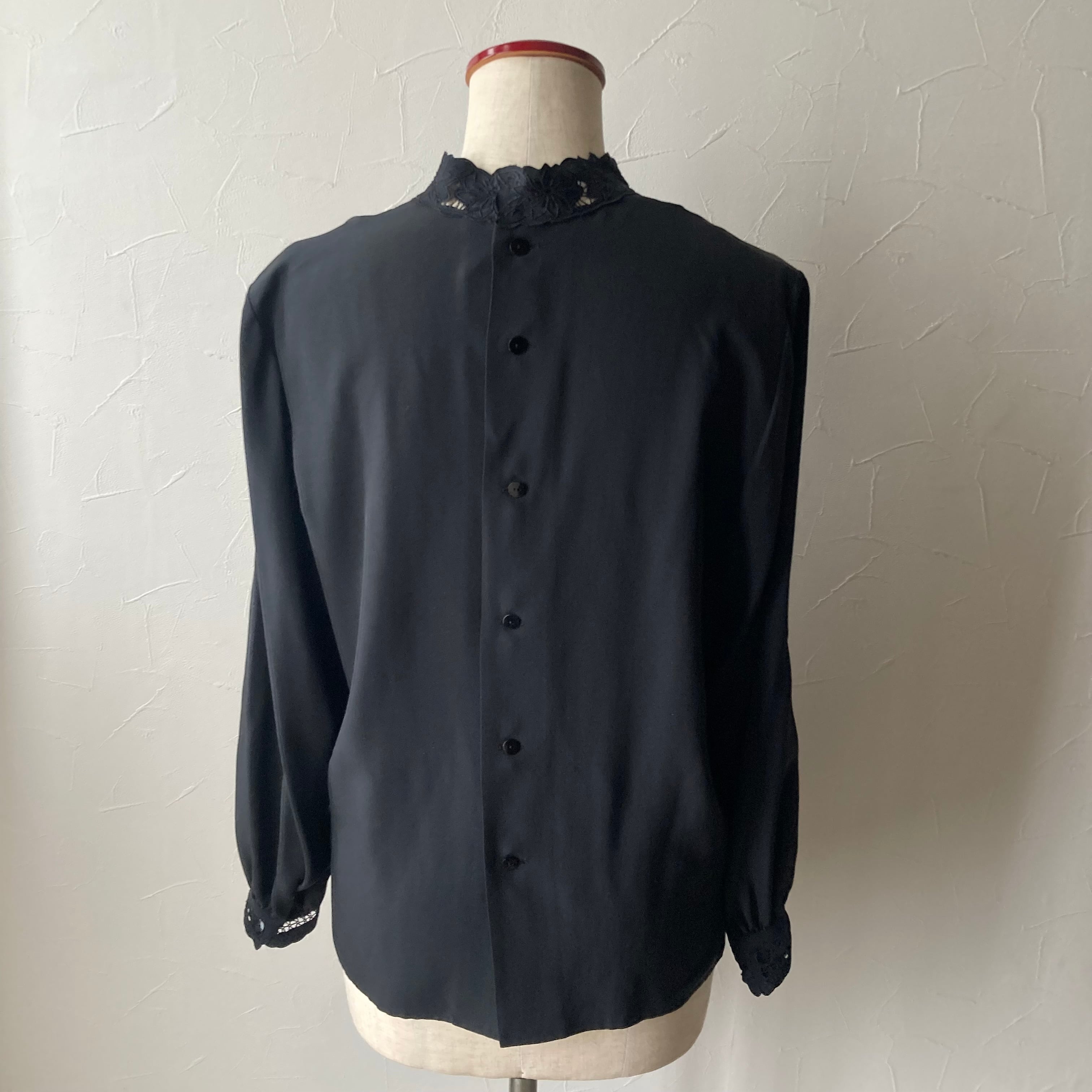 シルク黒カットワーク刺繍ブラウス 古着 used vintage レトロ