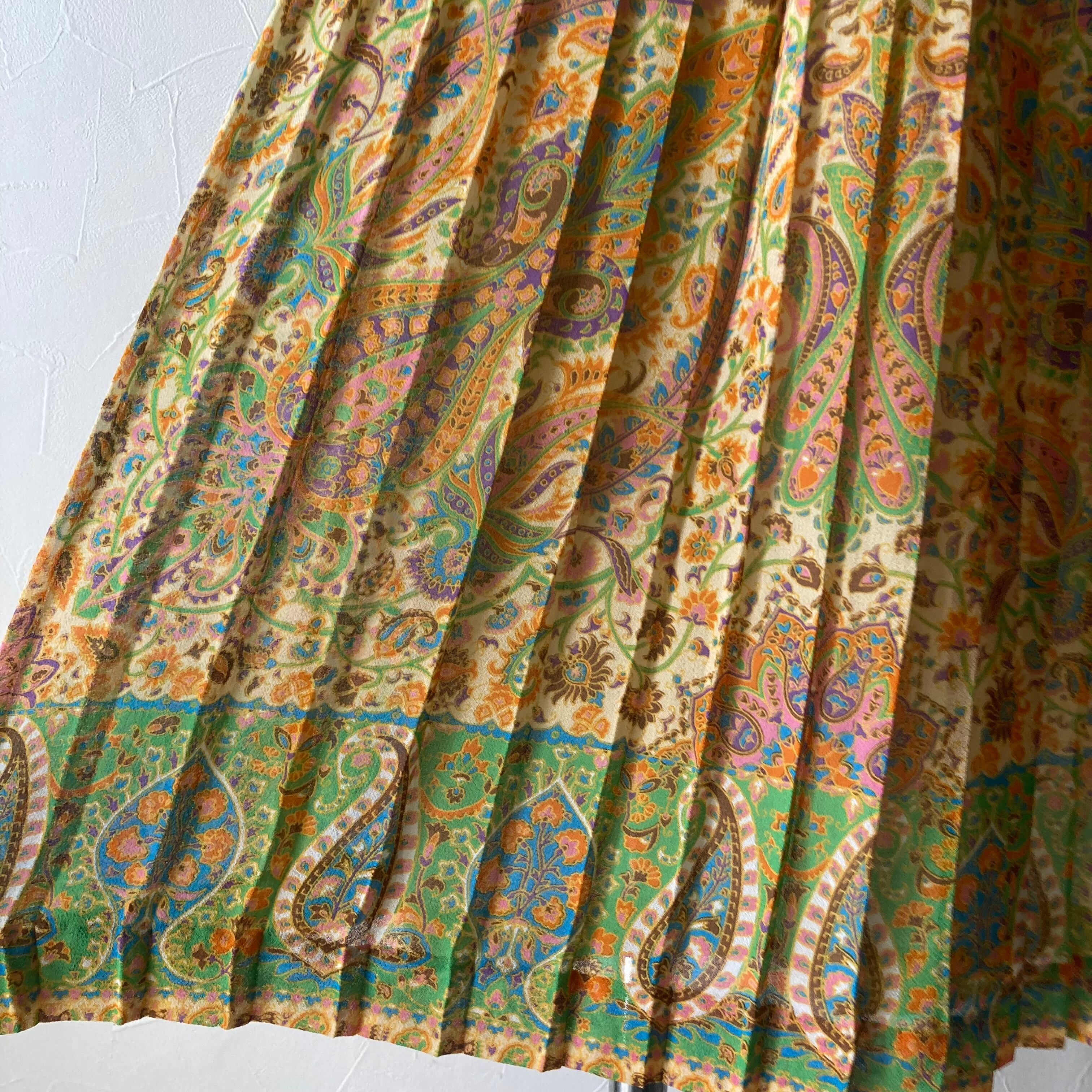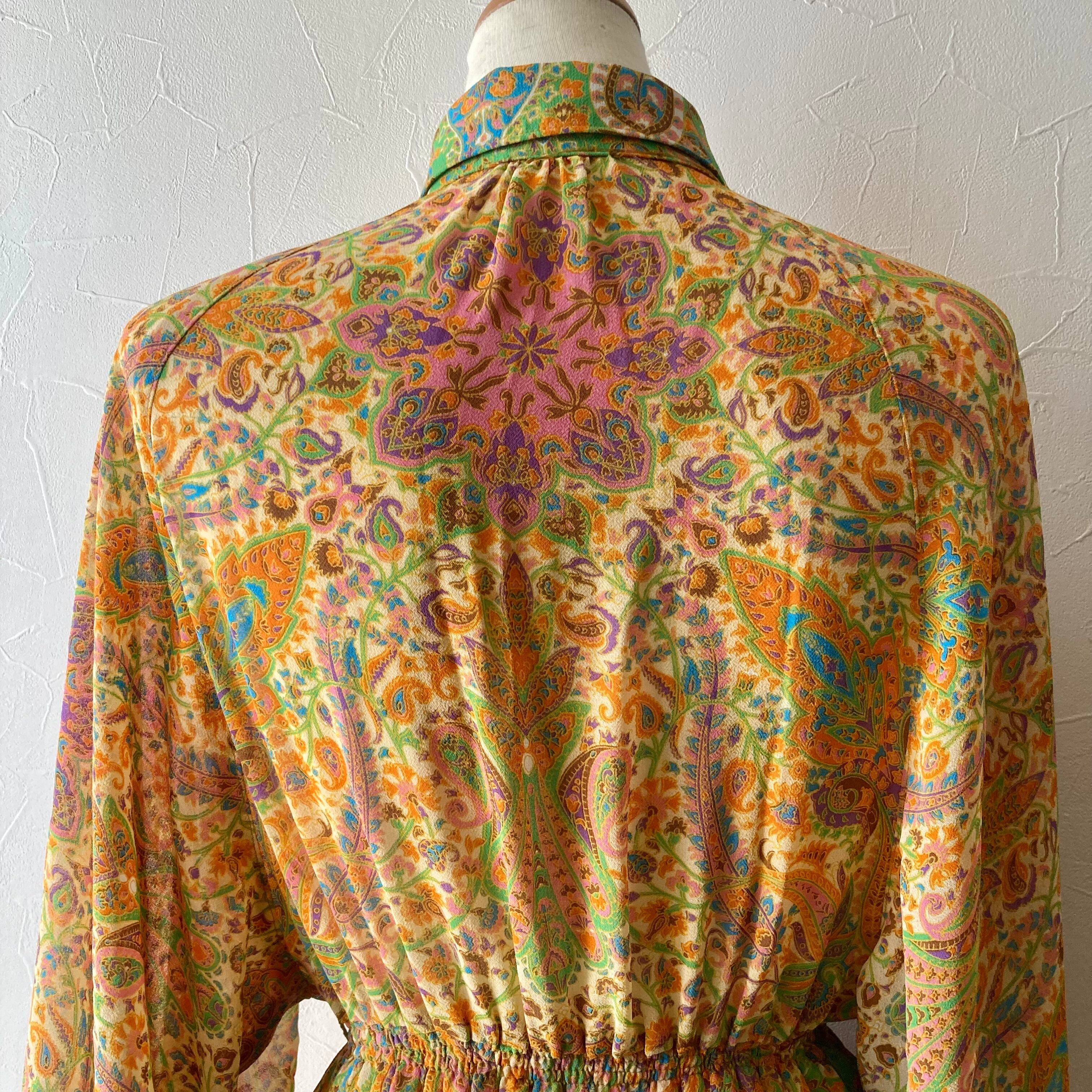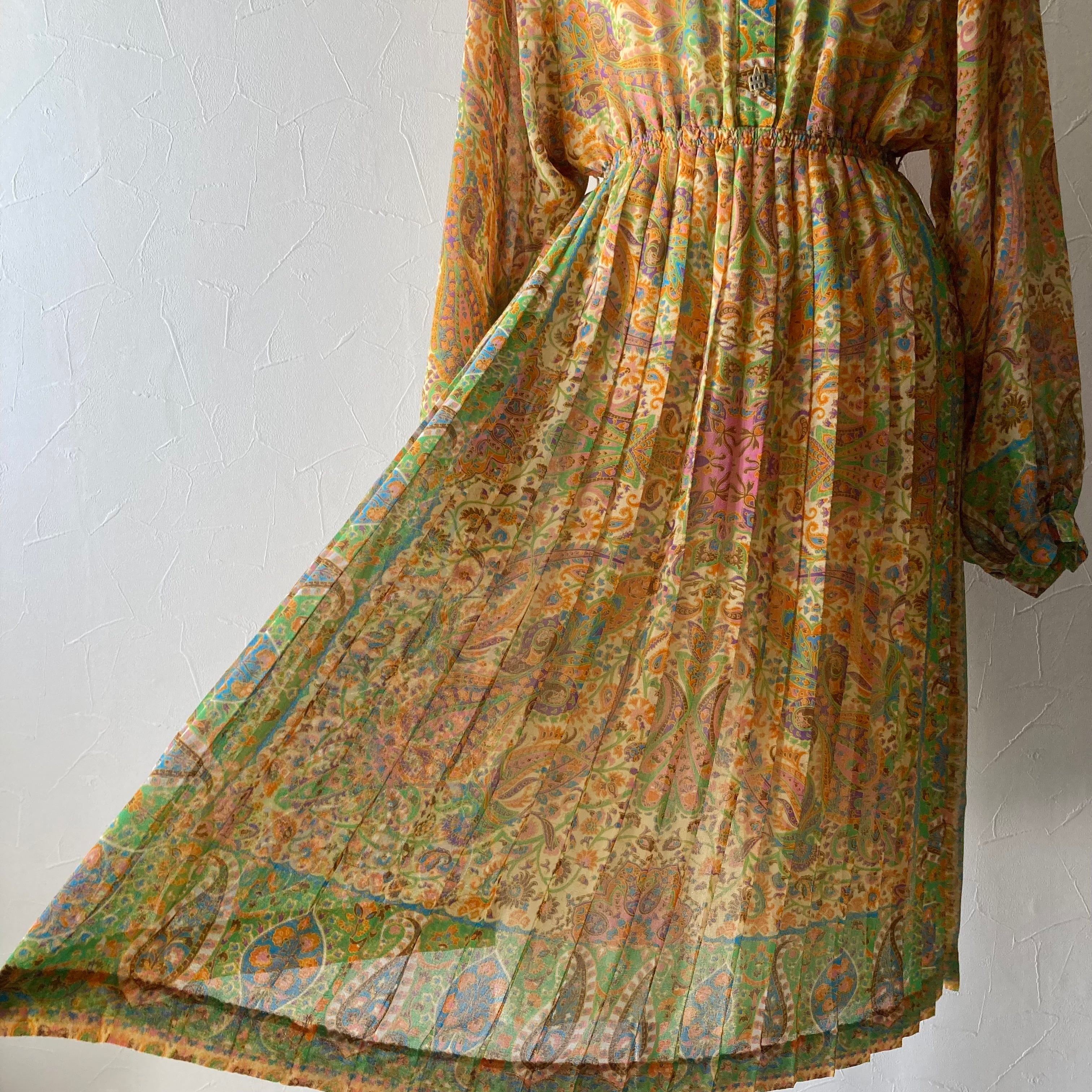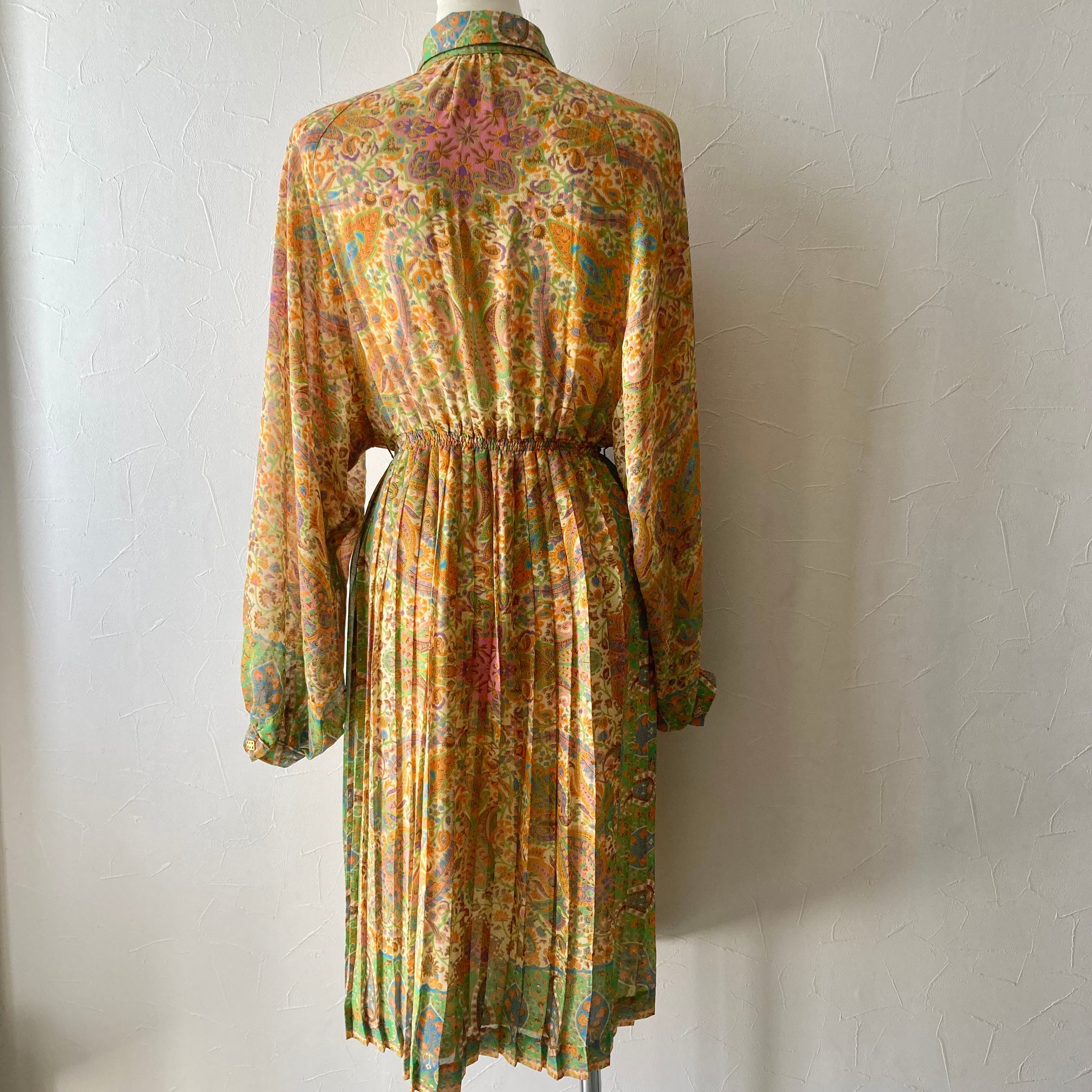 柄ドルマンスリーブプリーツワンピース 古着 used vintage レトロ