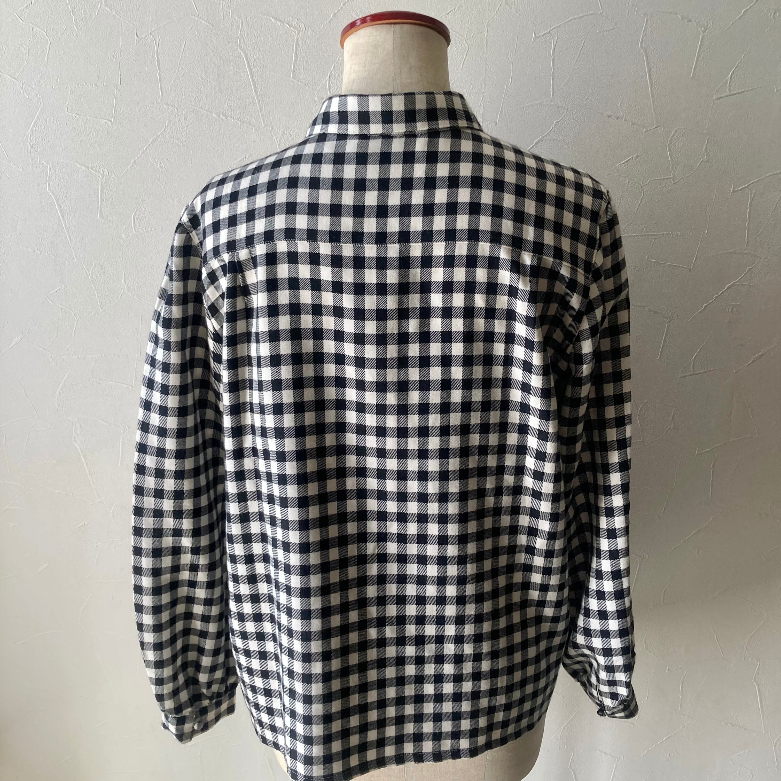 ※ 上から4個目くらいのボタンのギンガムチェックの白い箇所にうっすらとシミがあるように見える箇所がありますが、ほとんど目立たないかと思います。