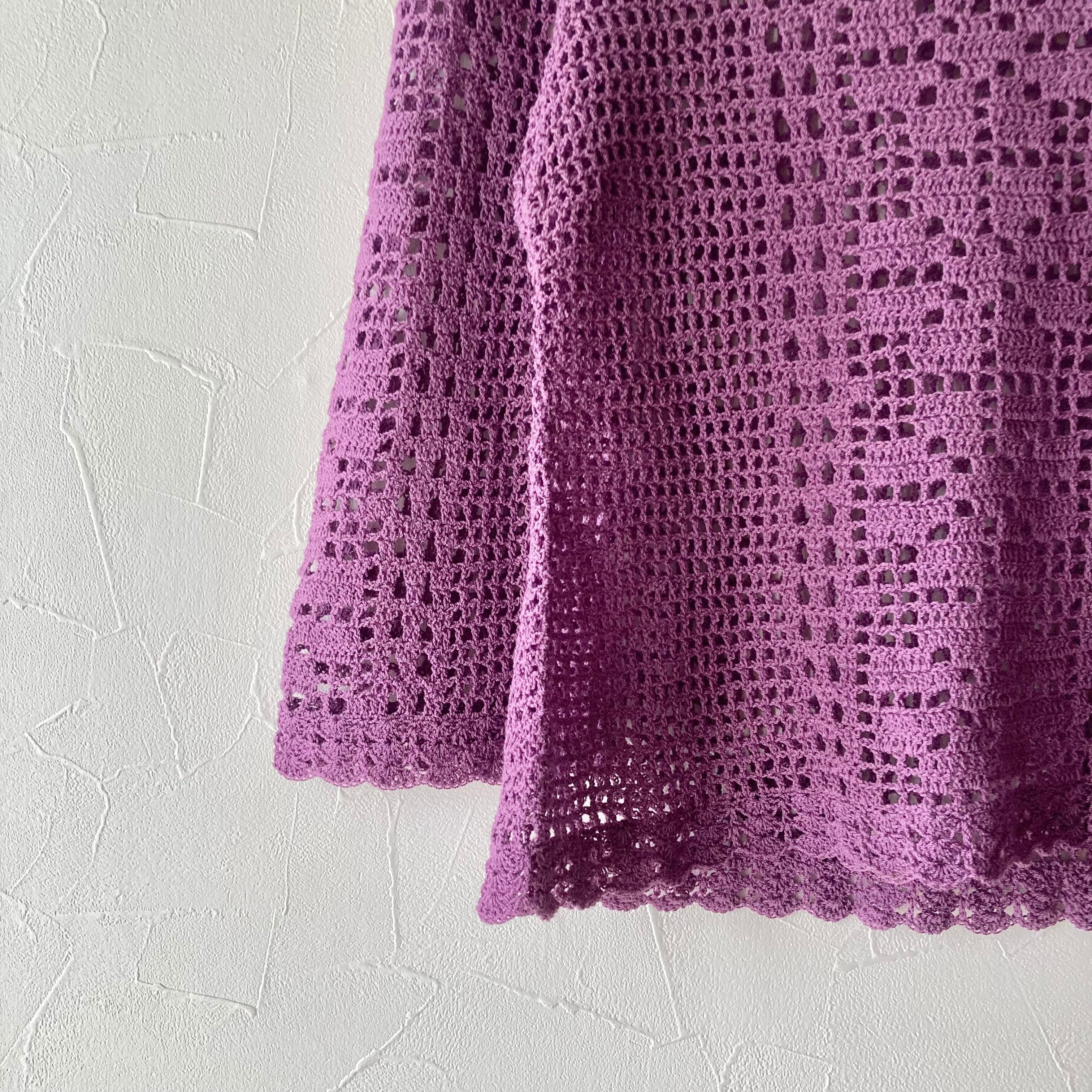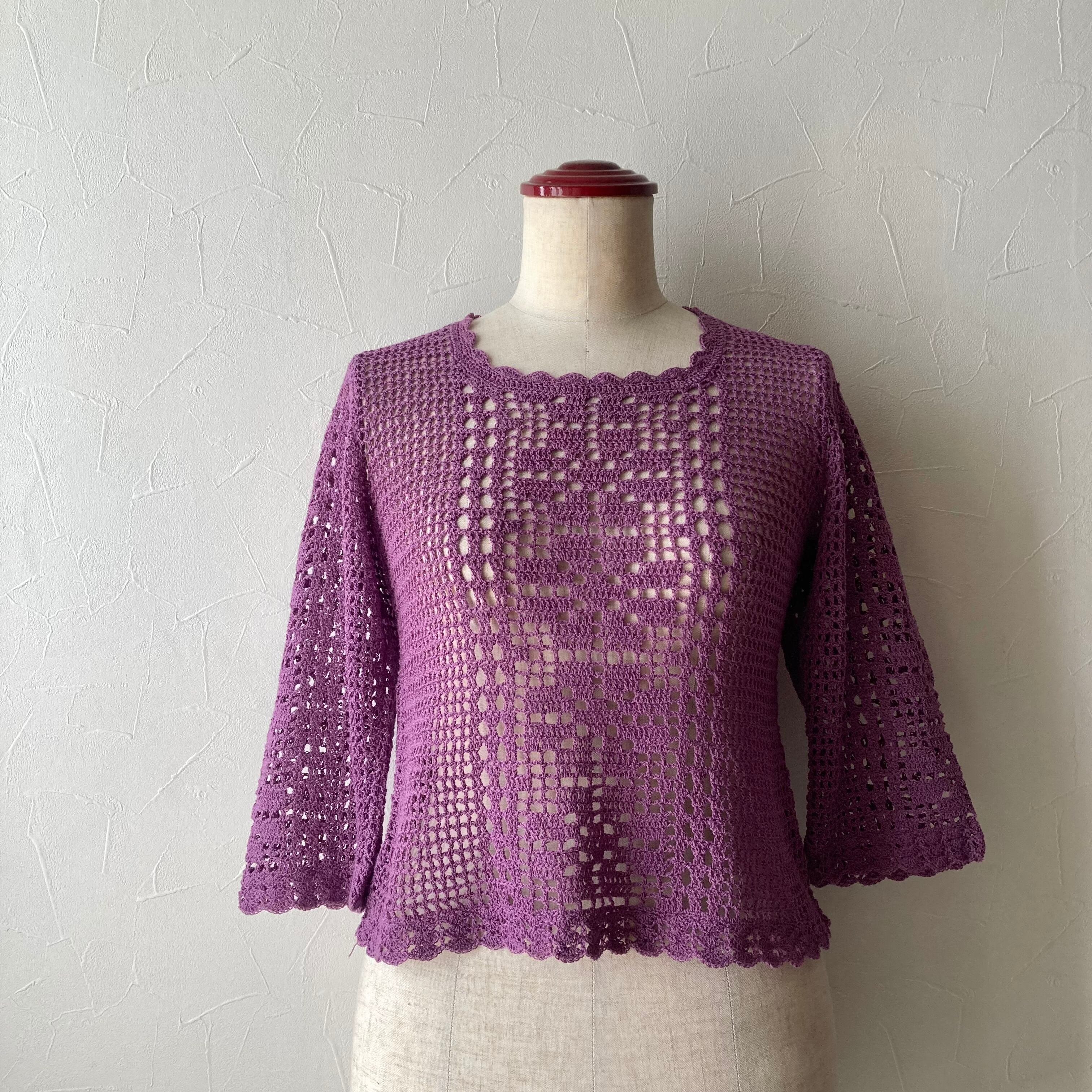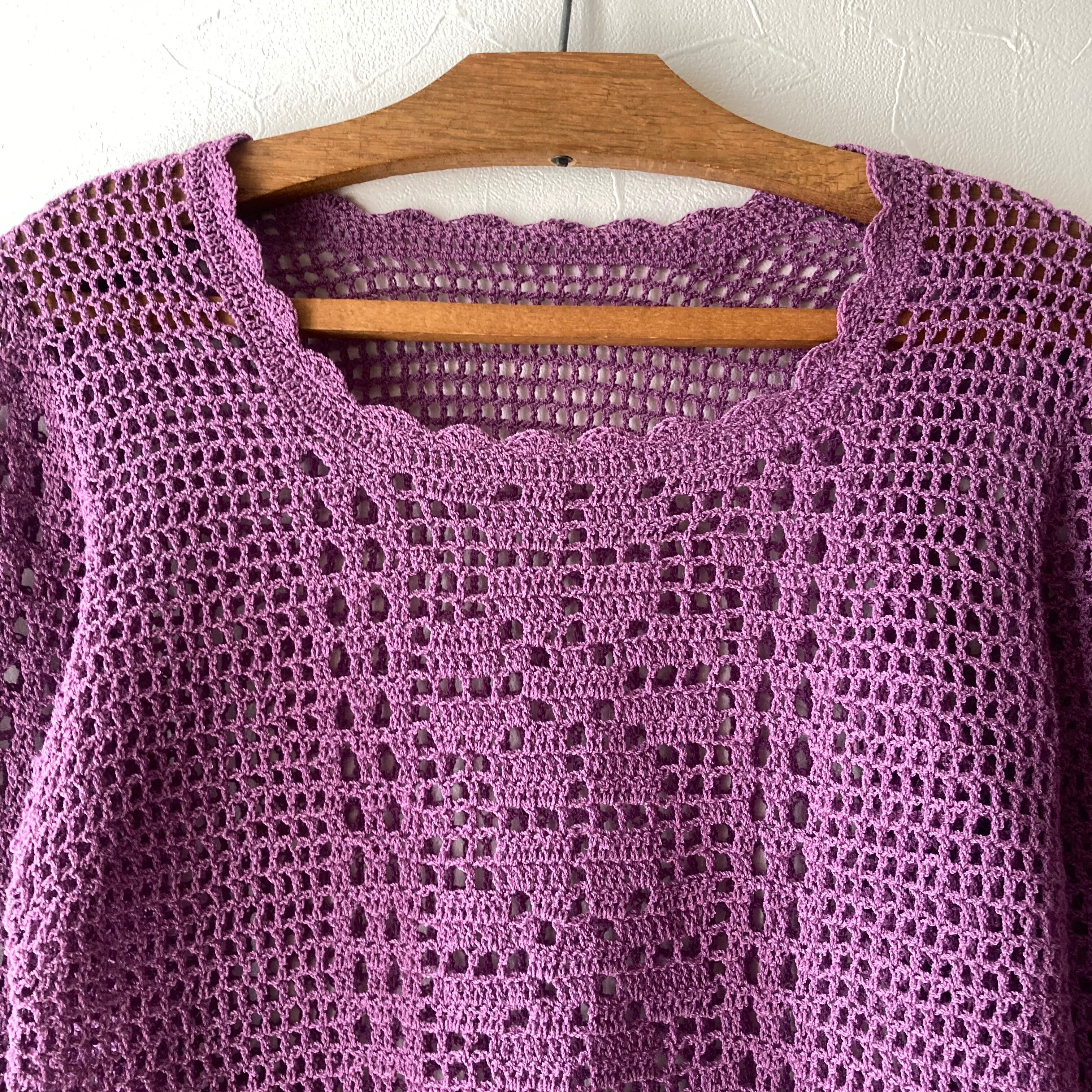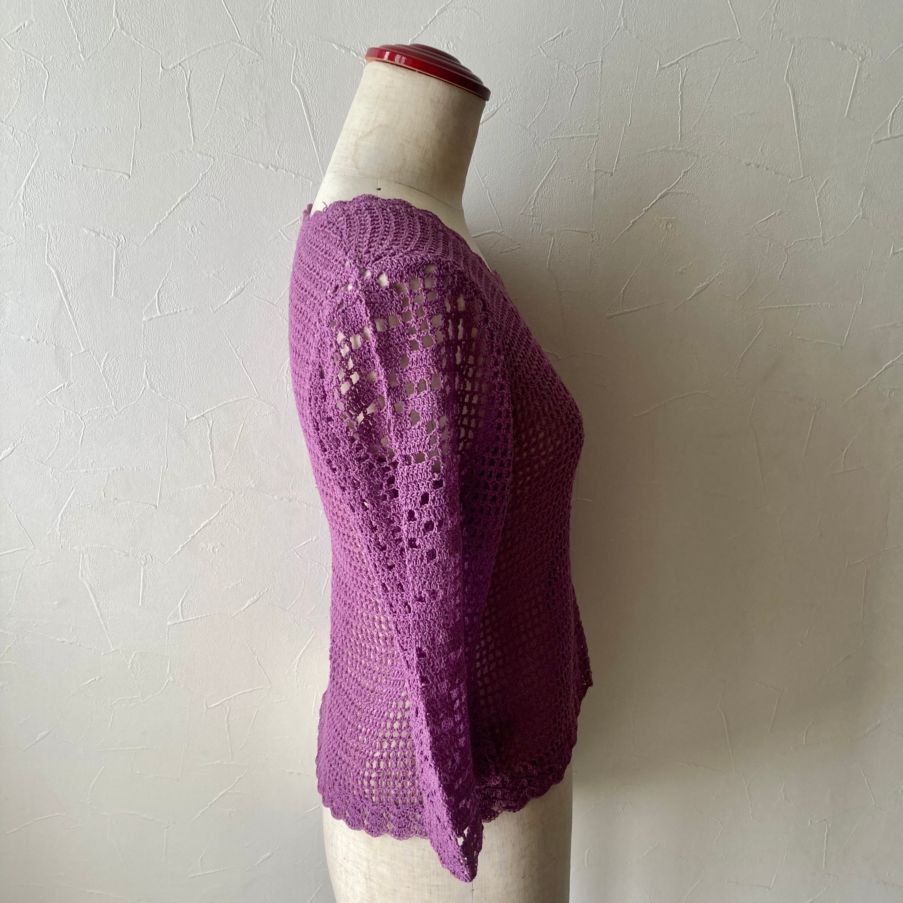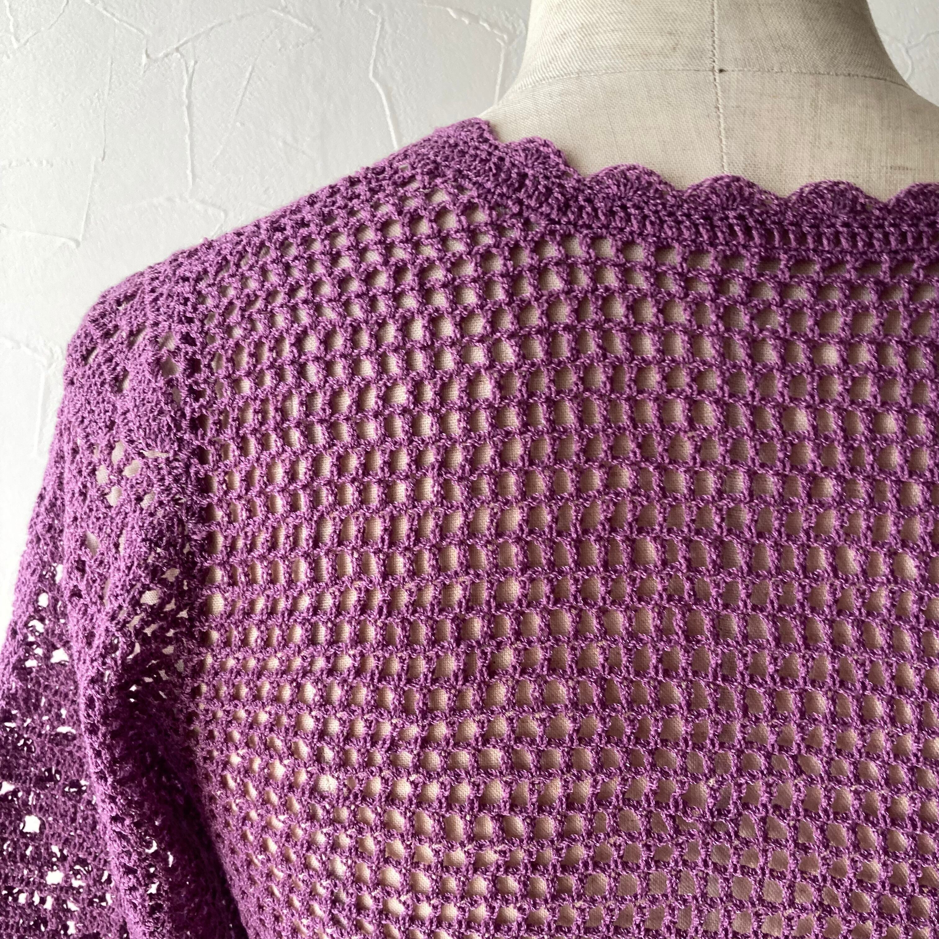 六分袖くらいの丈感で編み目も可愛く涼しげです。