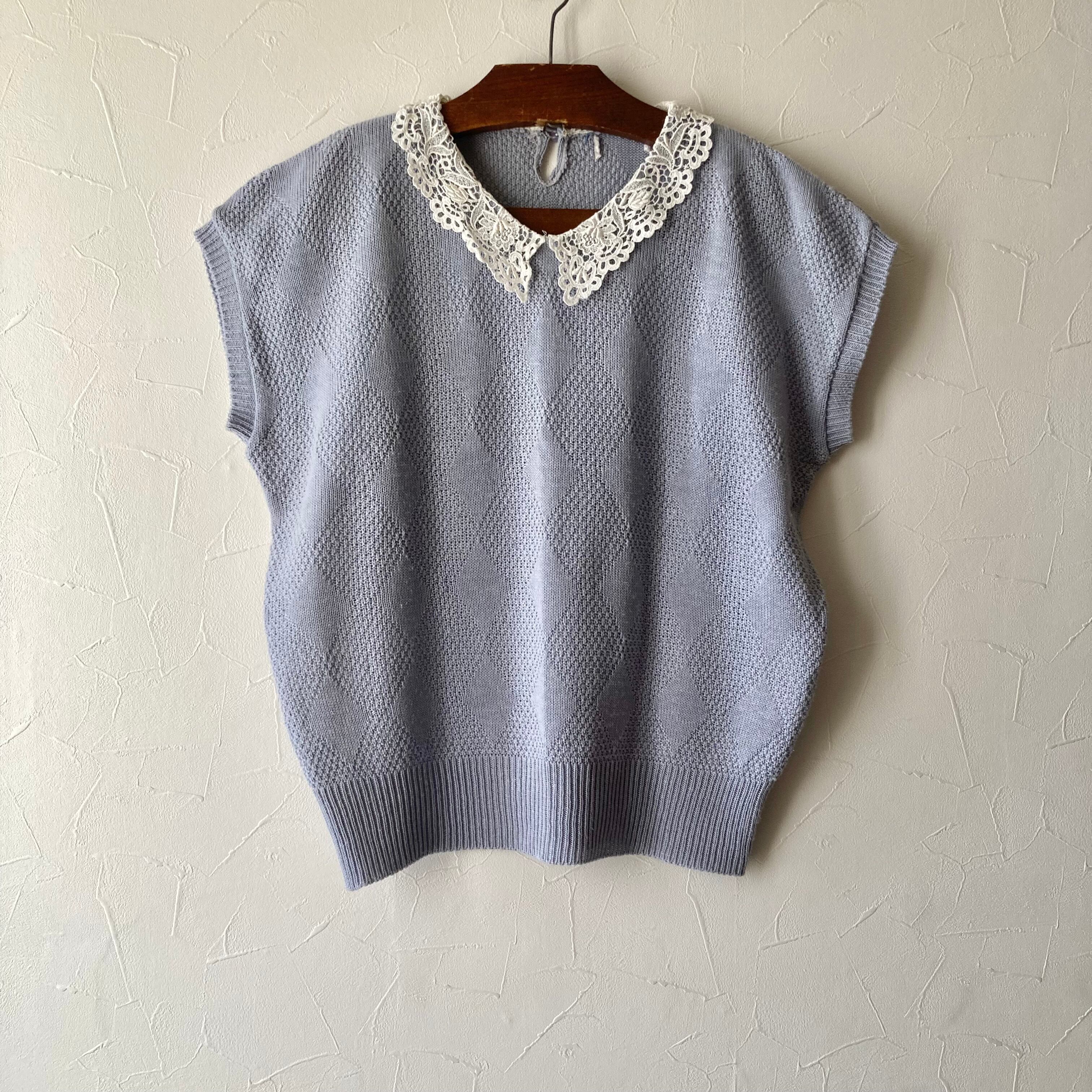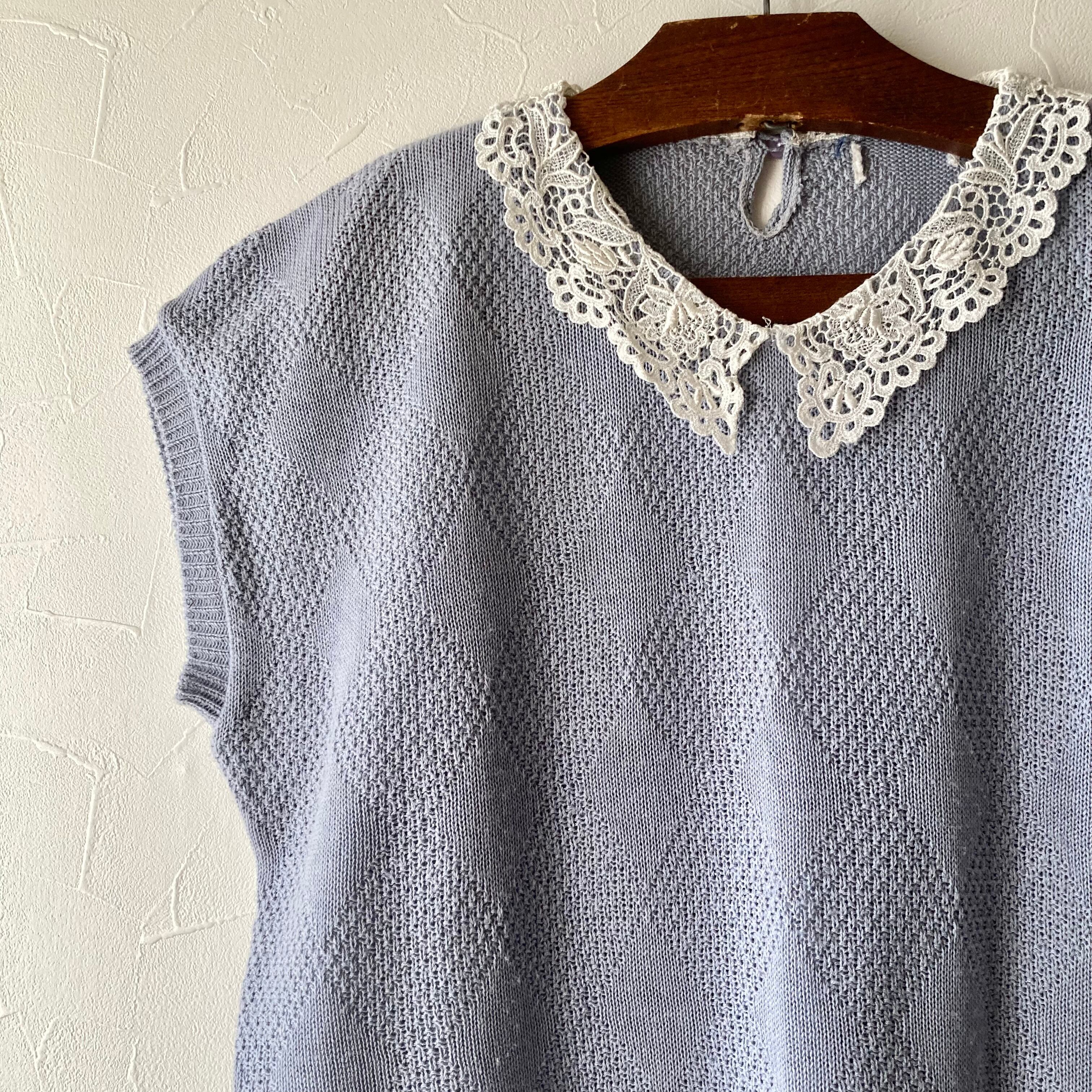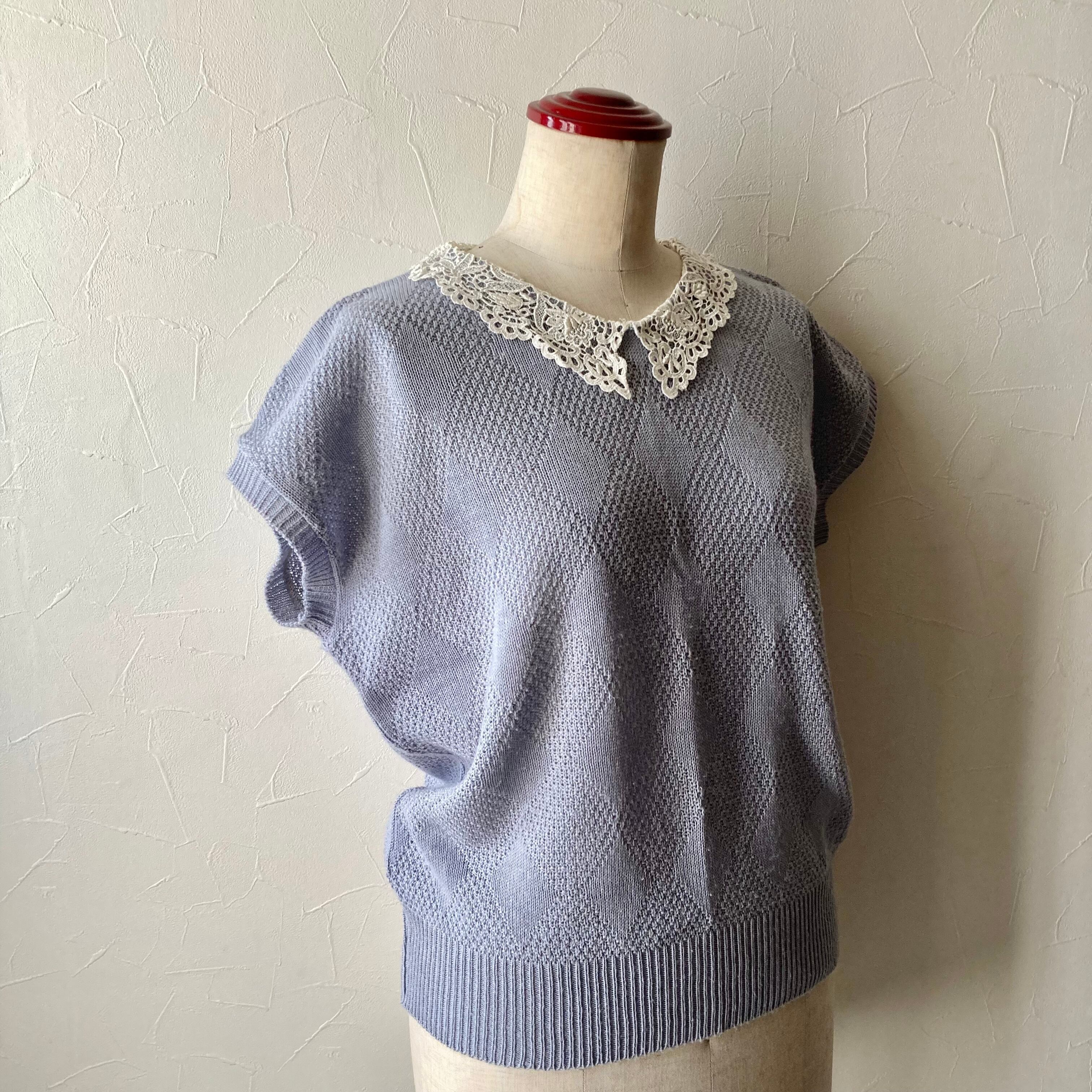 麻混レース襟サマーニット 古着 used vintage レトロ
