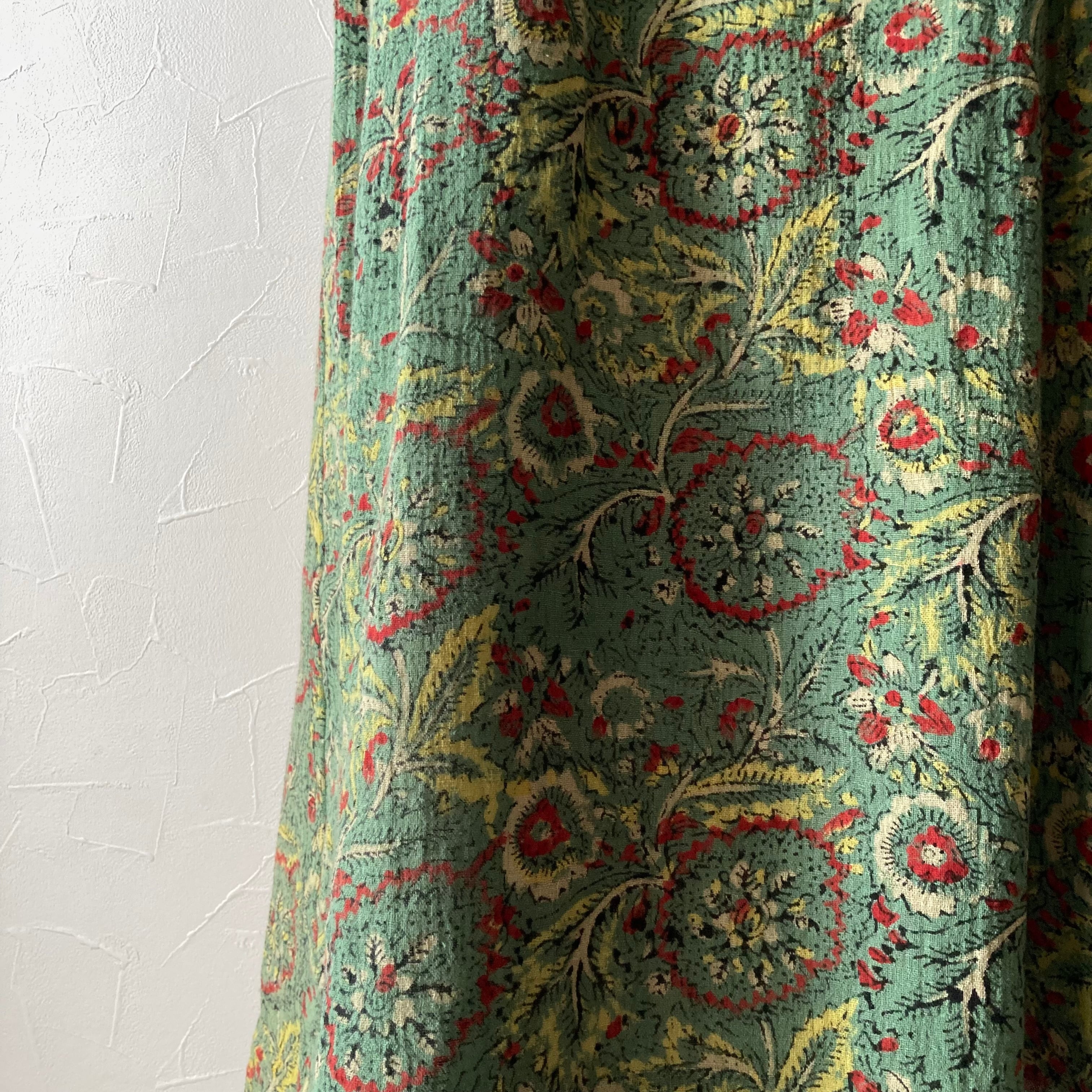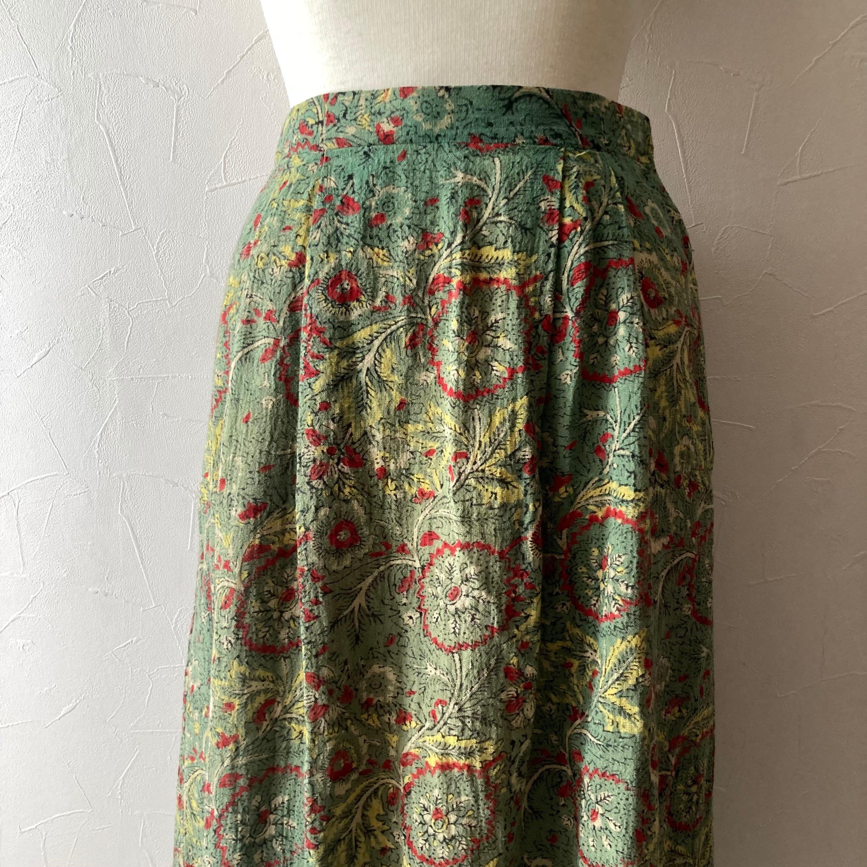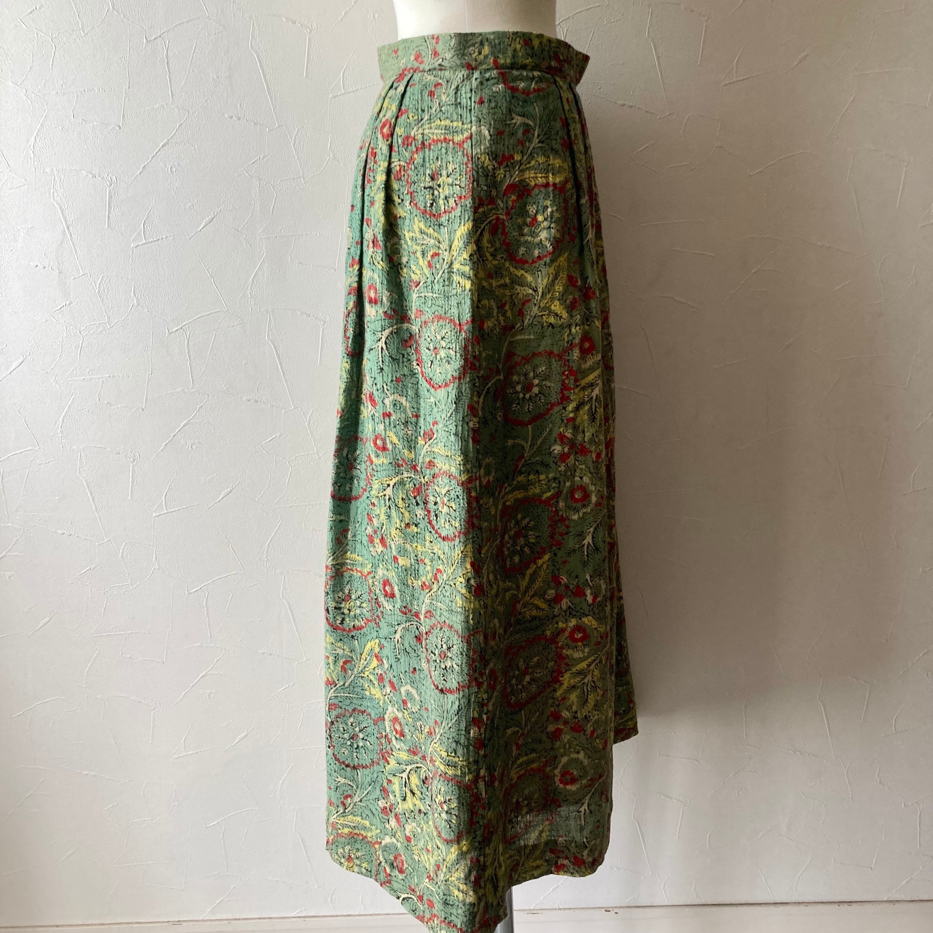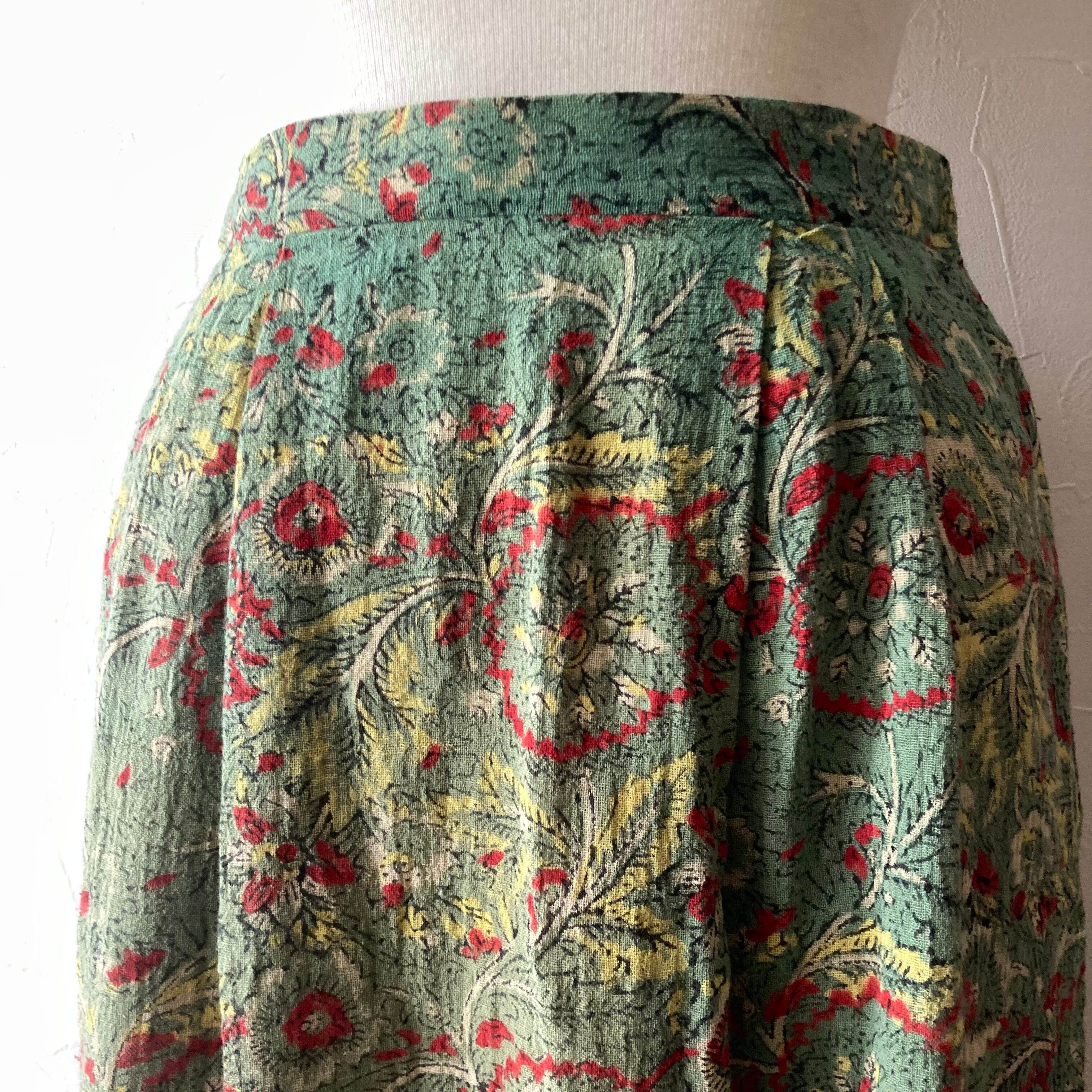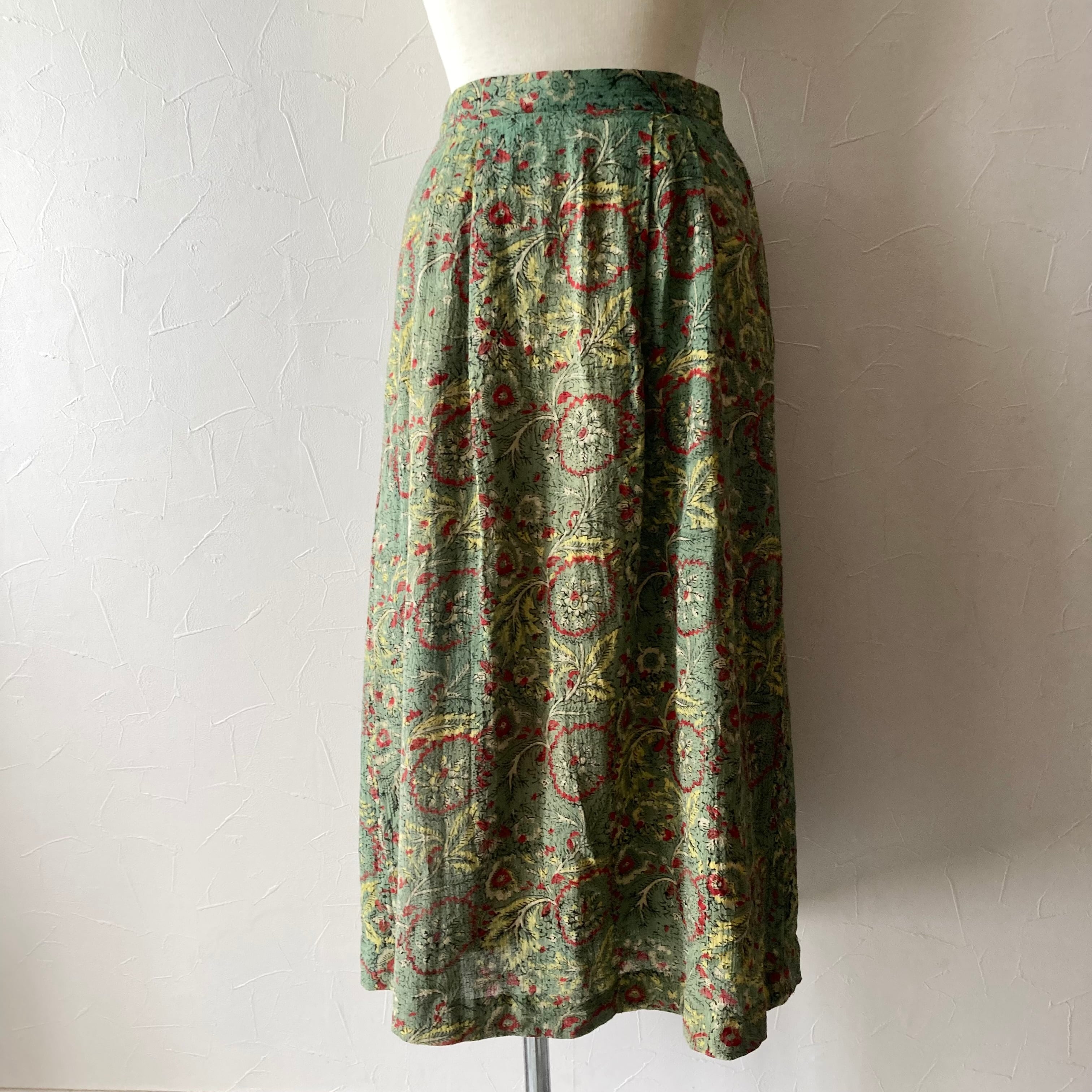 グリーンボタニカル柄スカート 古着 used vintage レトロ