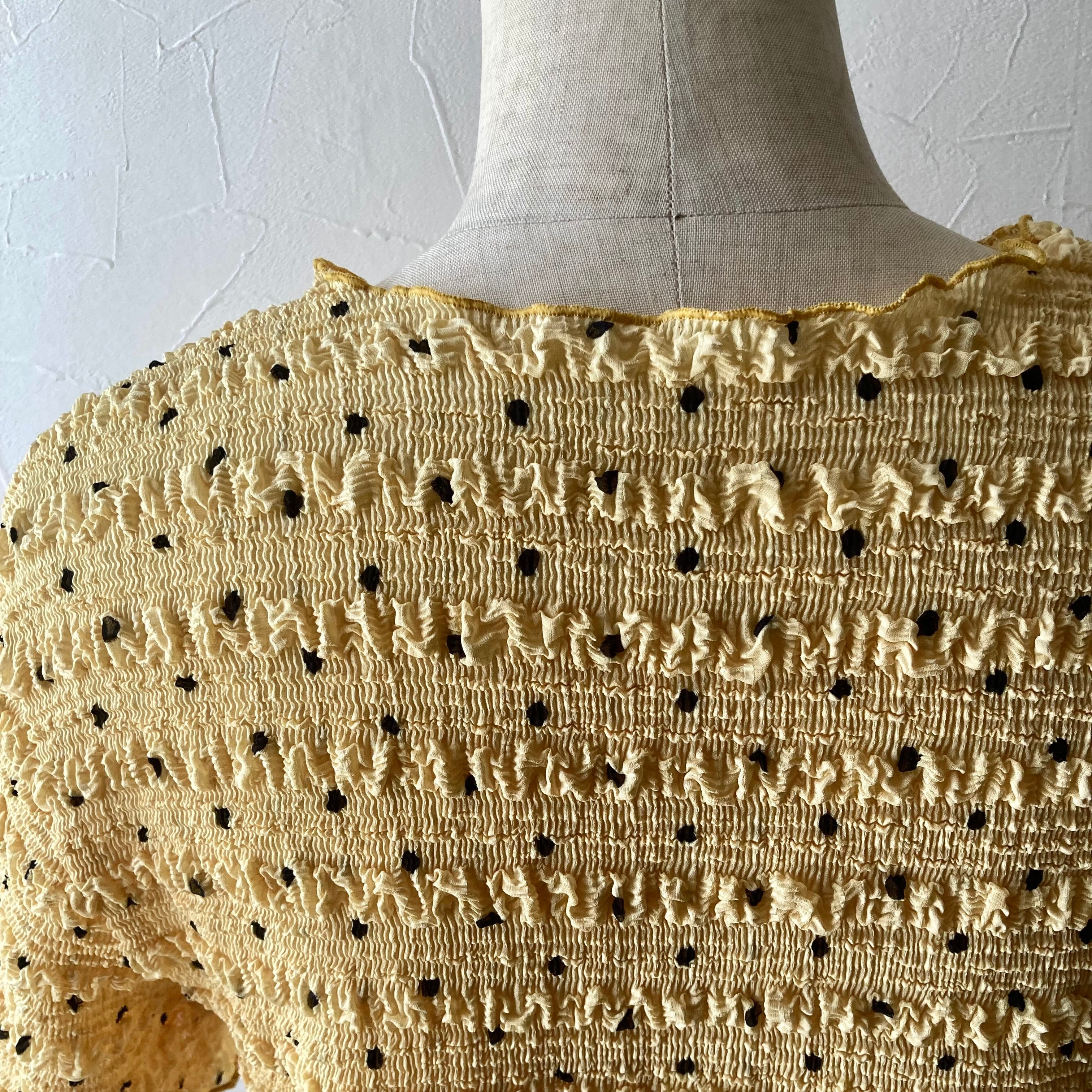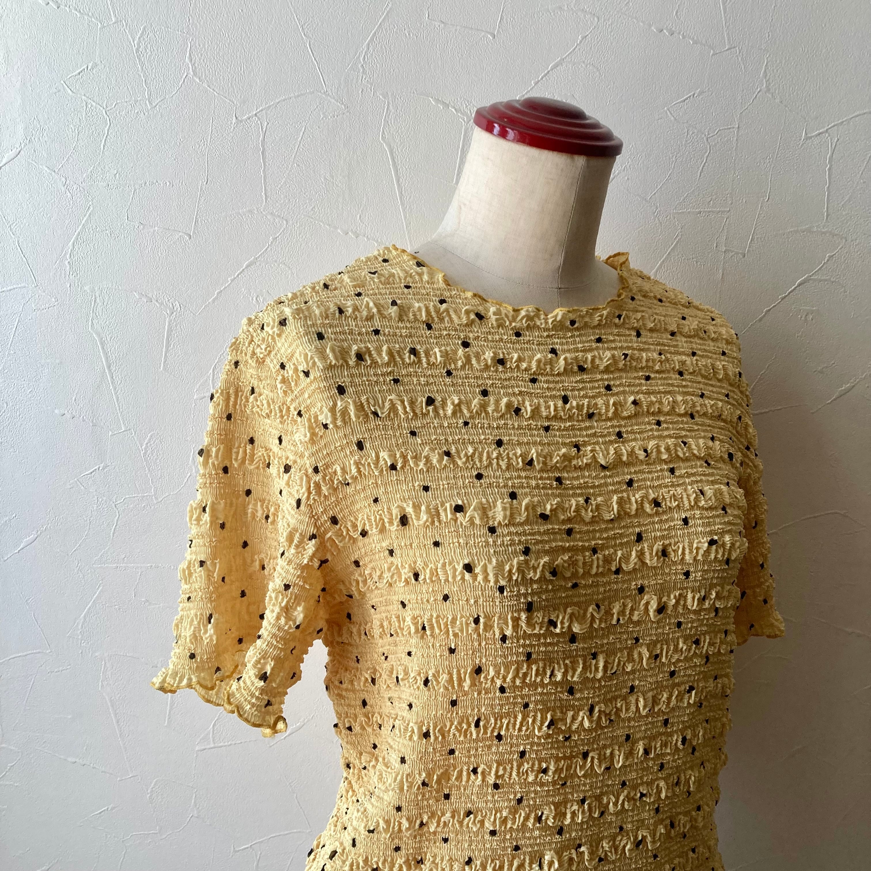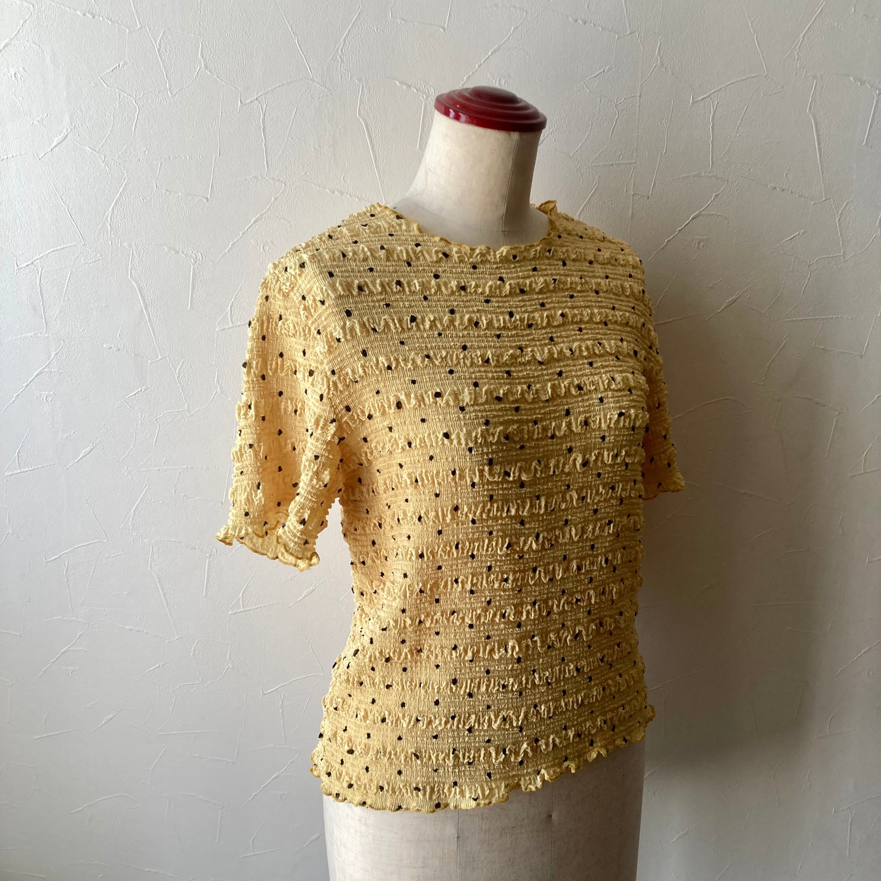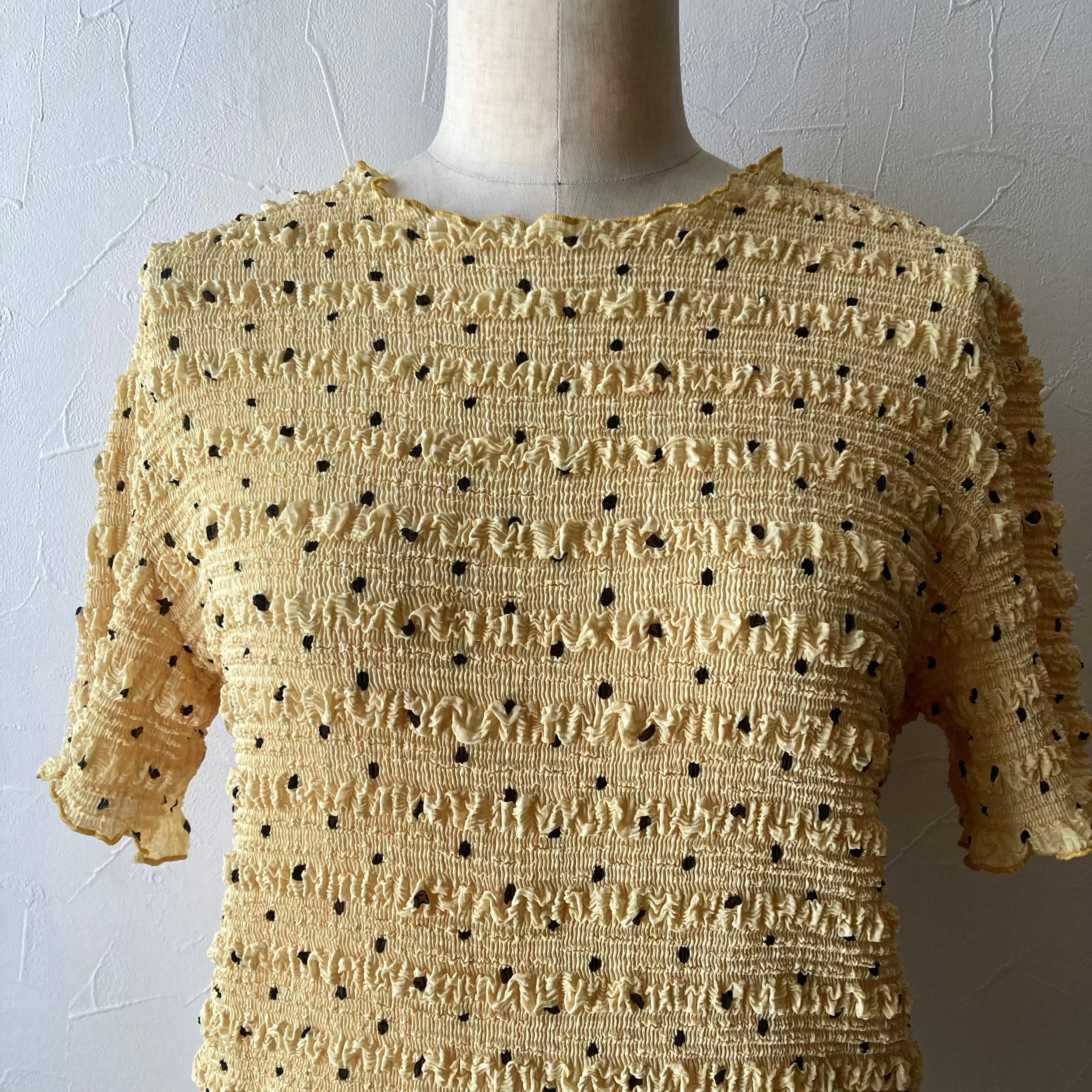 イエローに黒のドット柄が入ったクシュクシュトップス◯