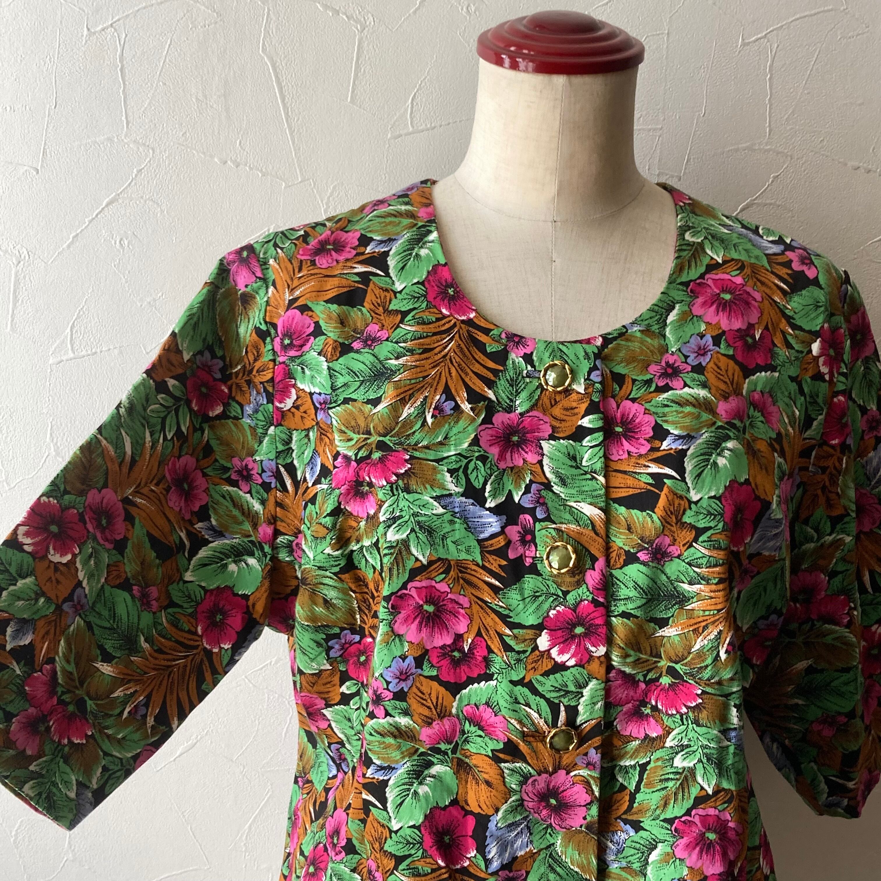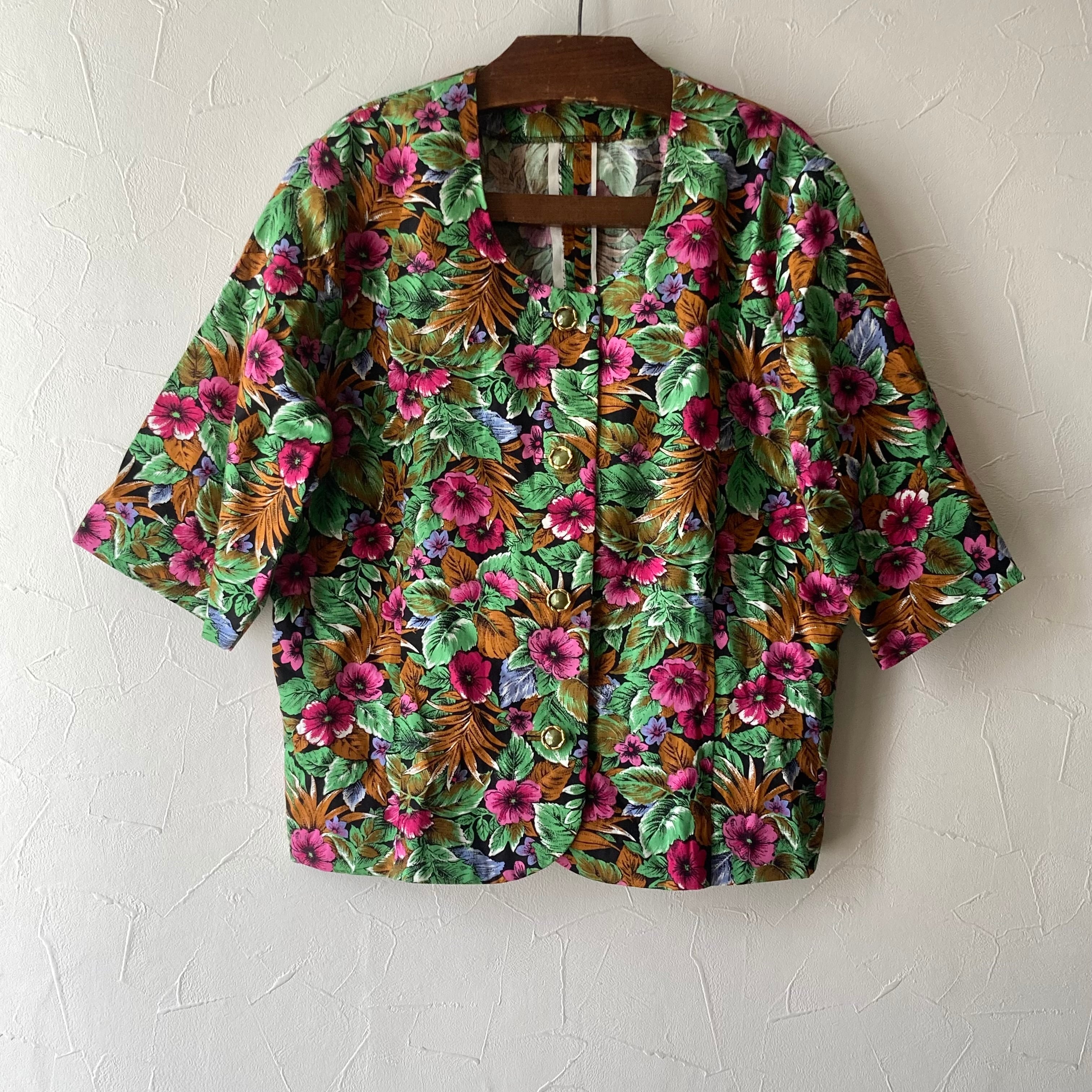 古着らしい花柄のノーカラーのハンドメイドのブラウス◯