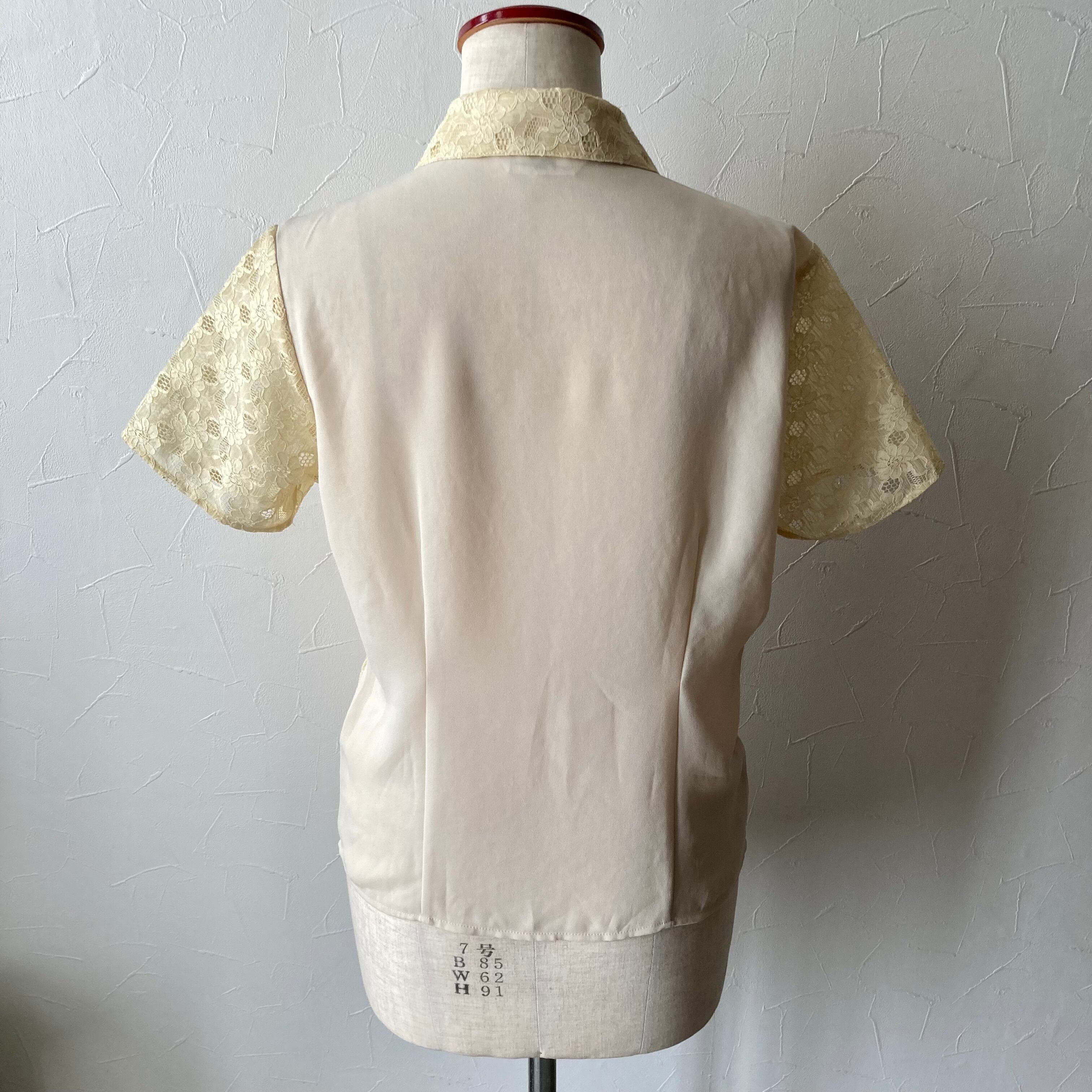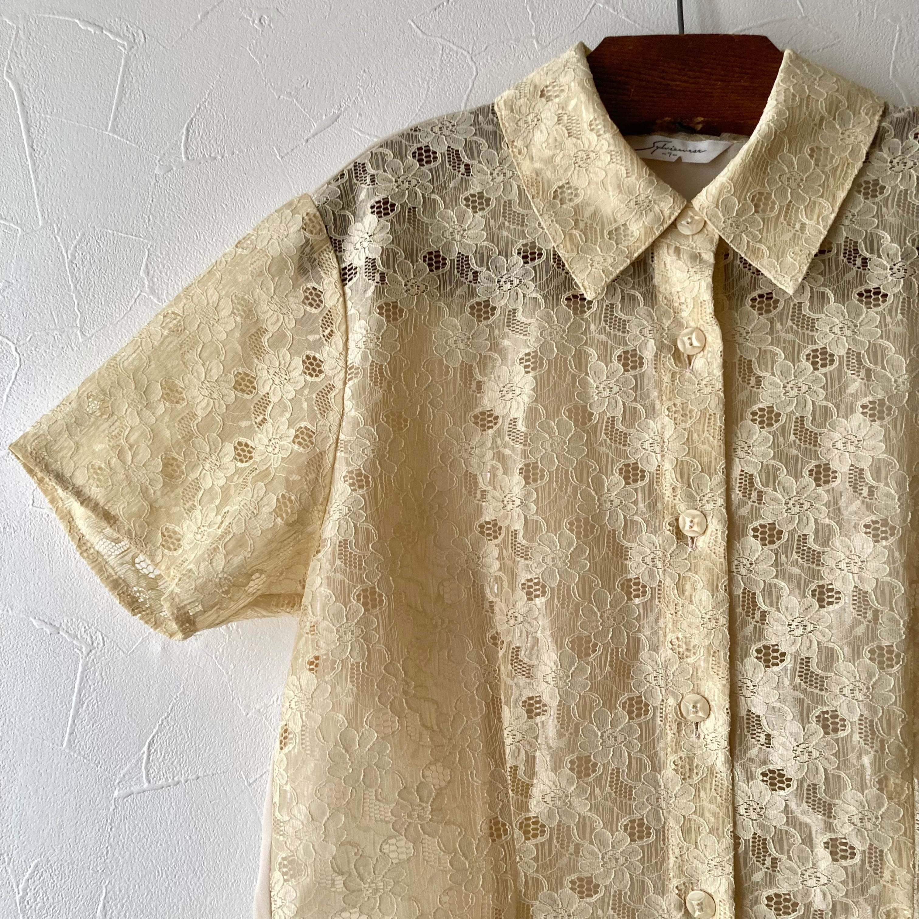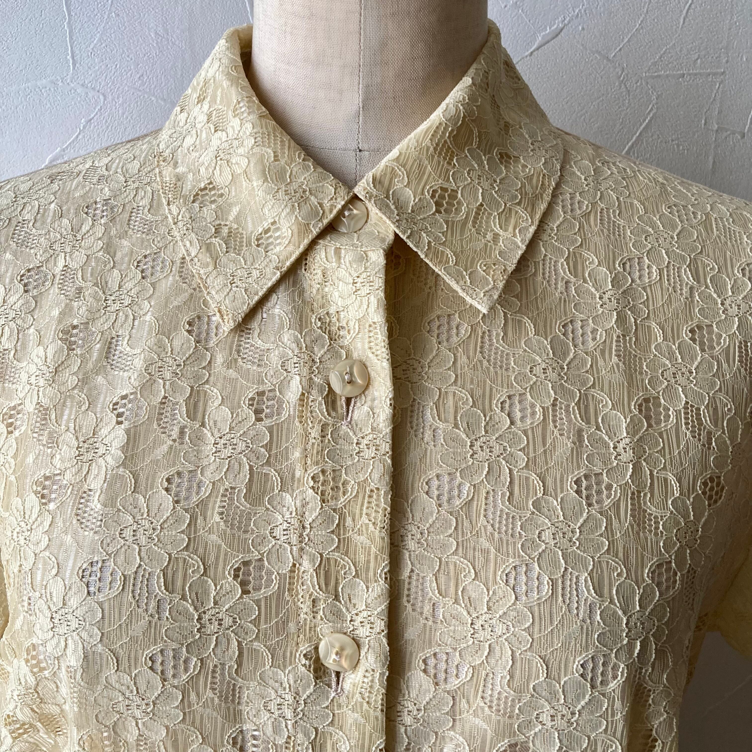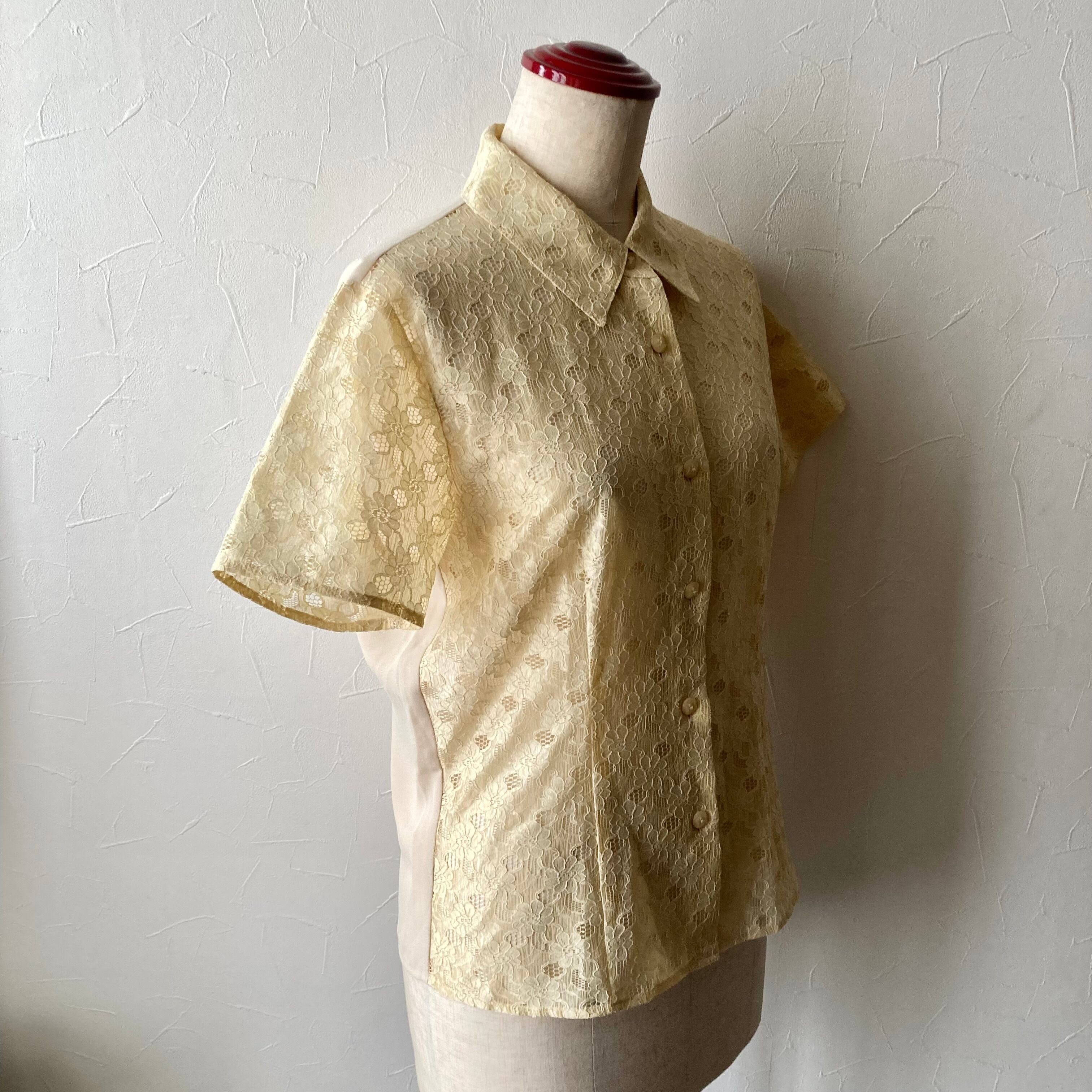 くすんだイエローとレースが可愛らしいレースシアーブラウス◯