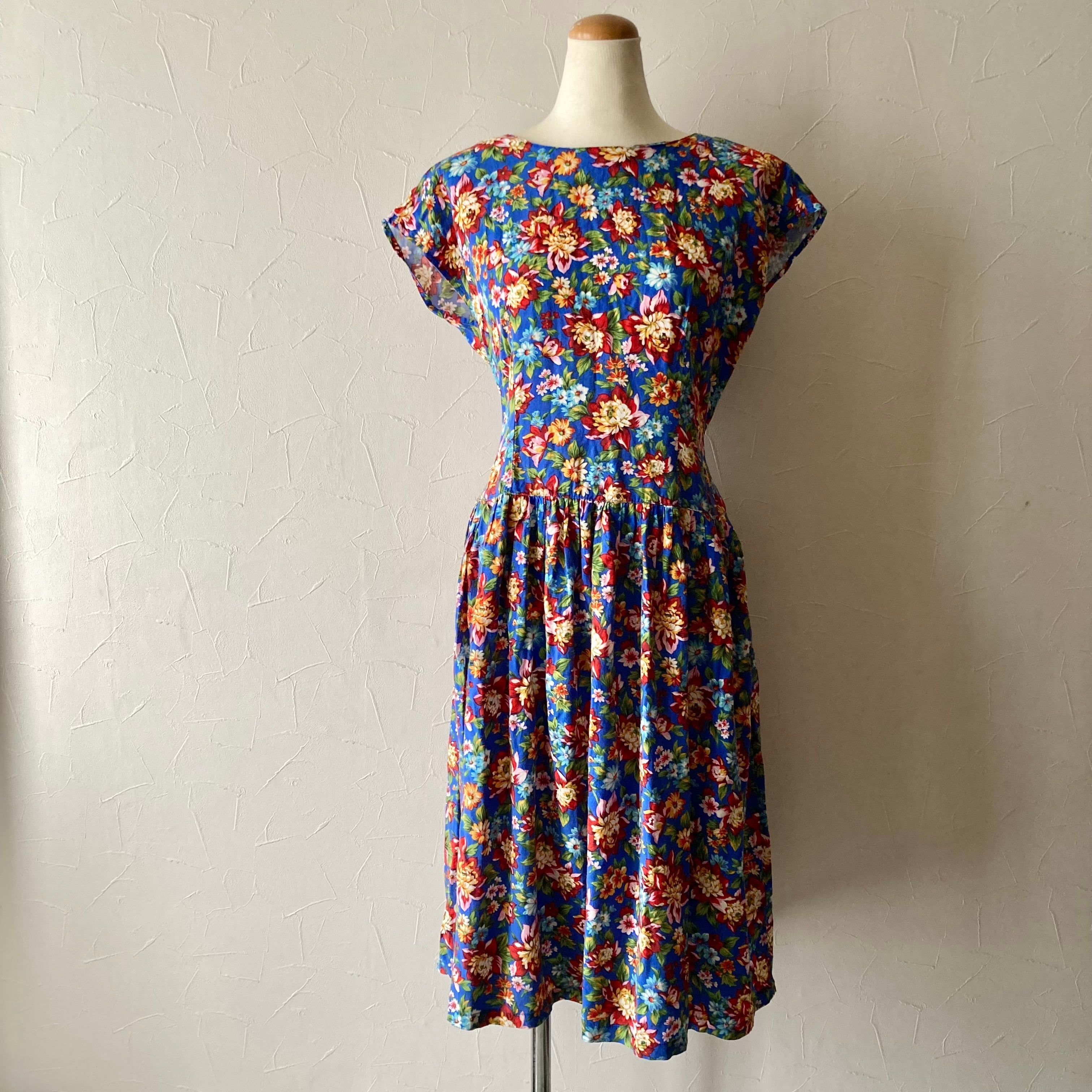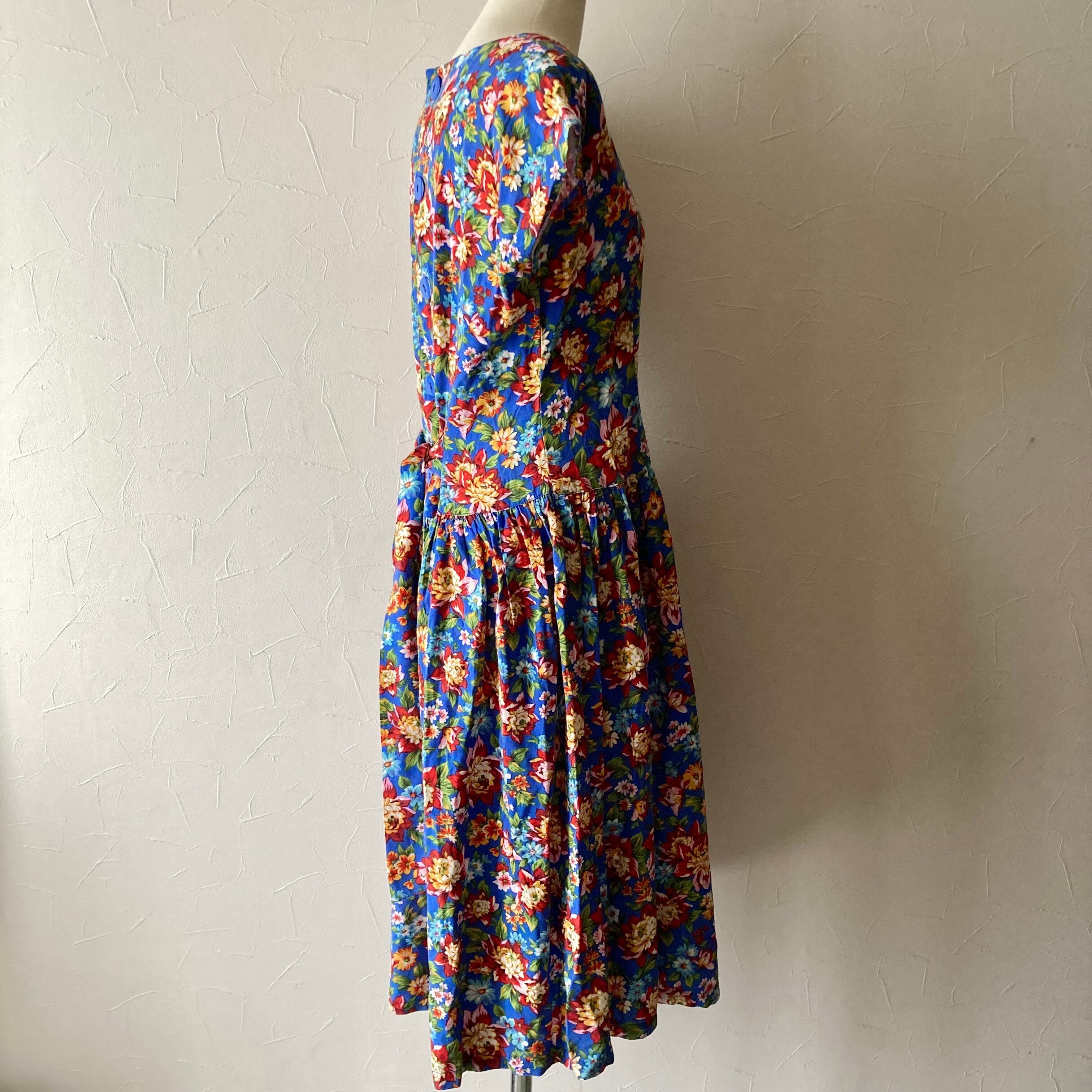 花柄後ろボタンワンピース 古着 used vintage レトロ