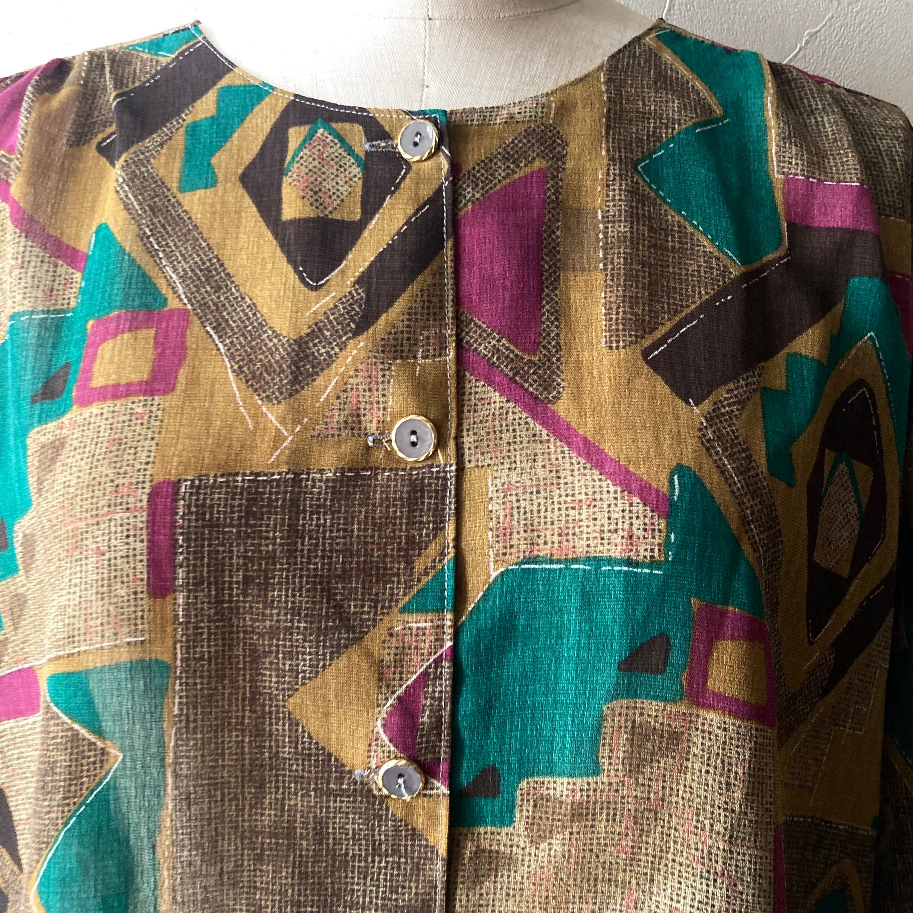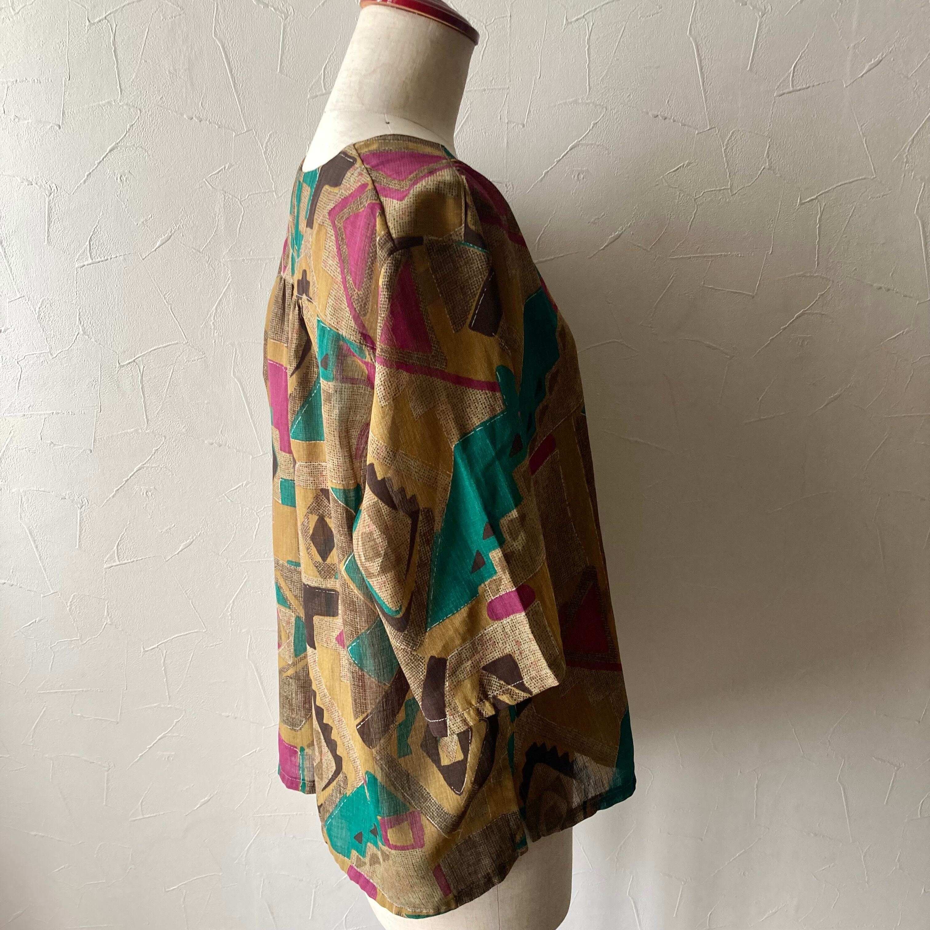 柄ノーカラーブラウス 古着 used vintage レトロ