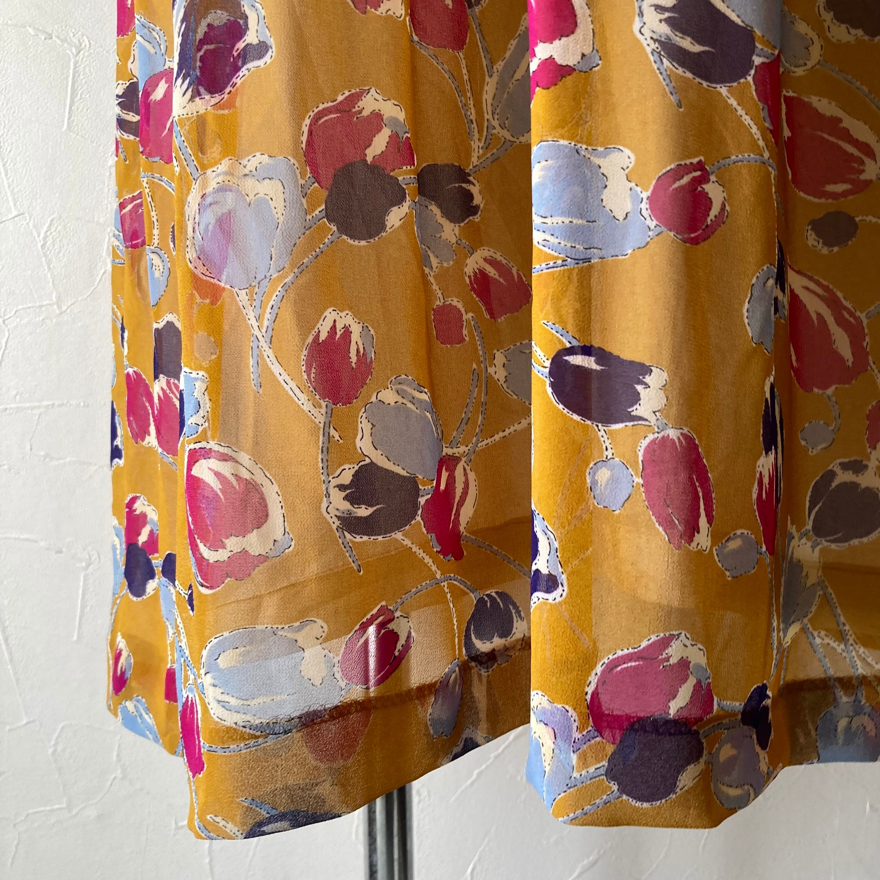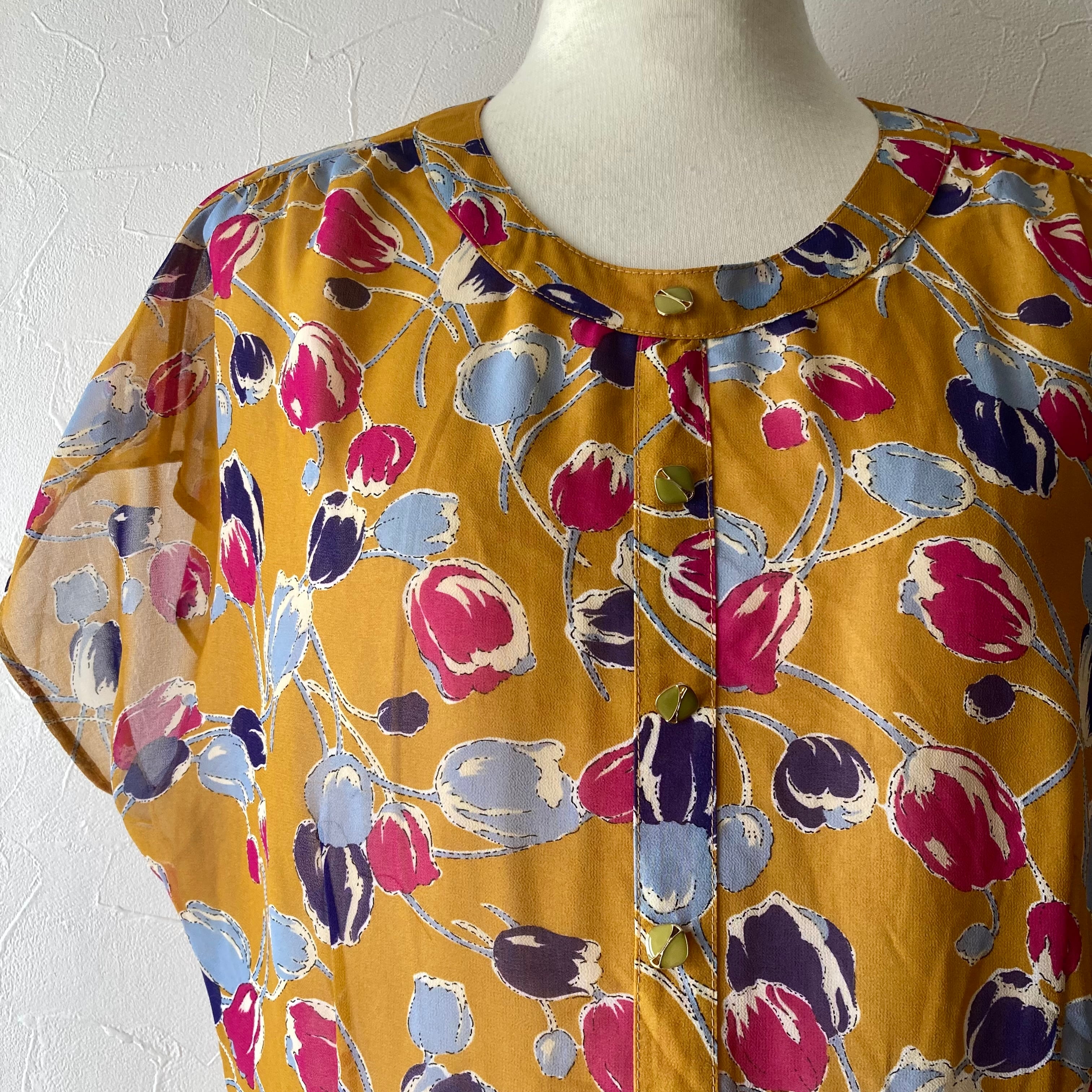花模様カラシ色ワンピース 古着 used vintage レトロ