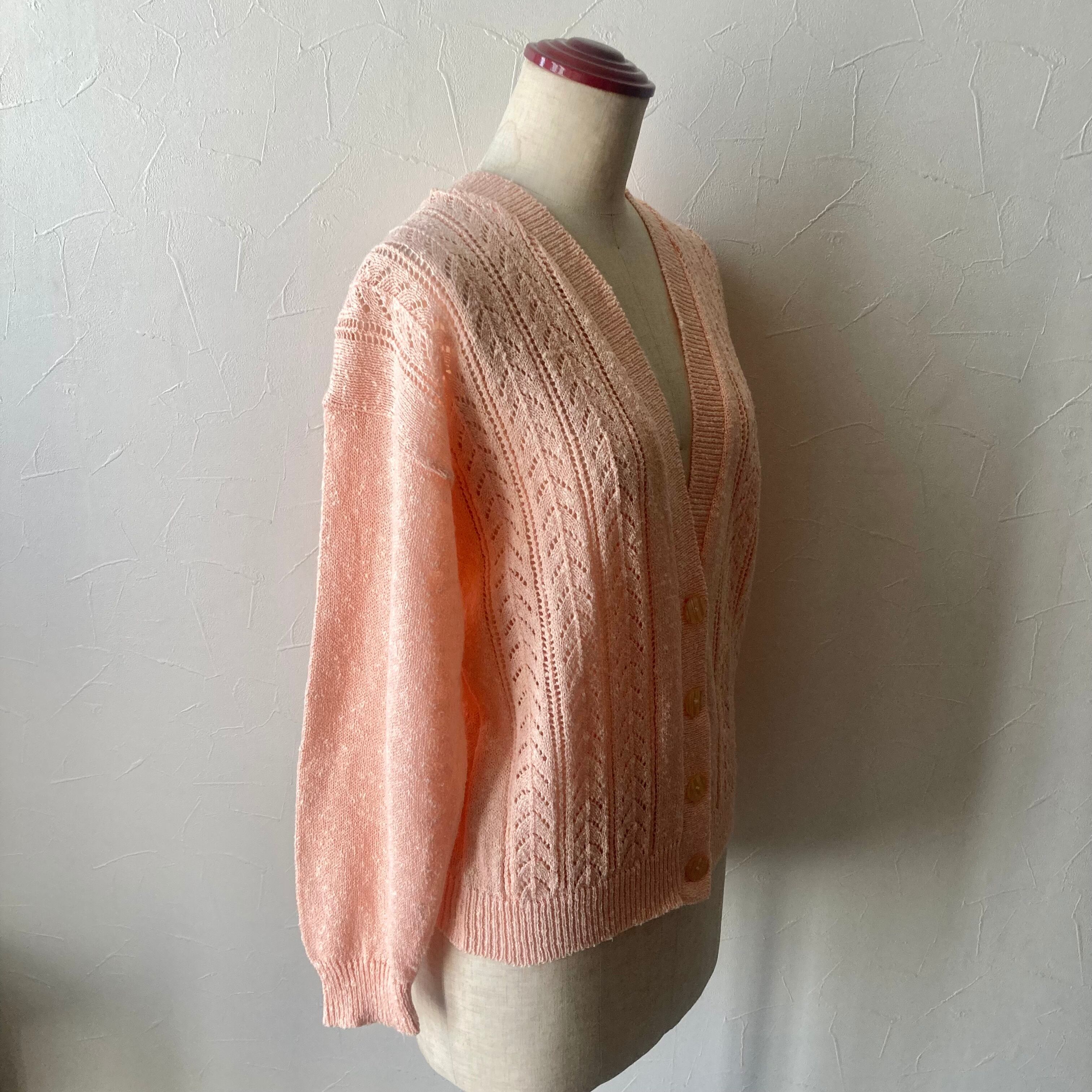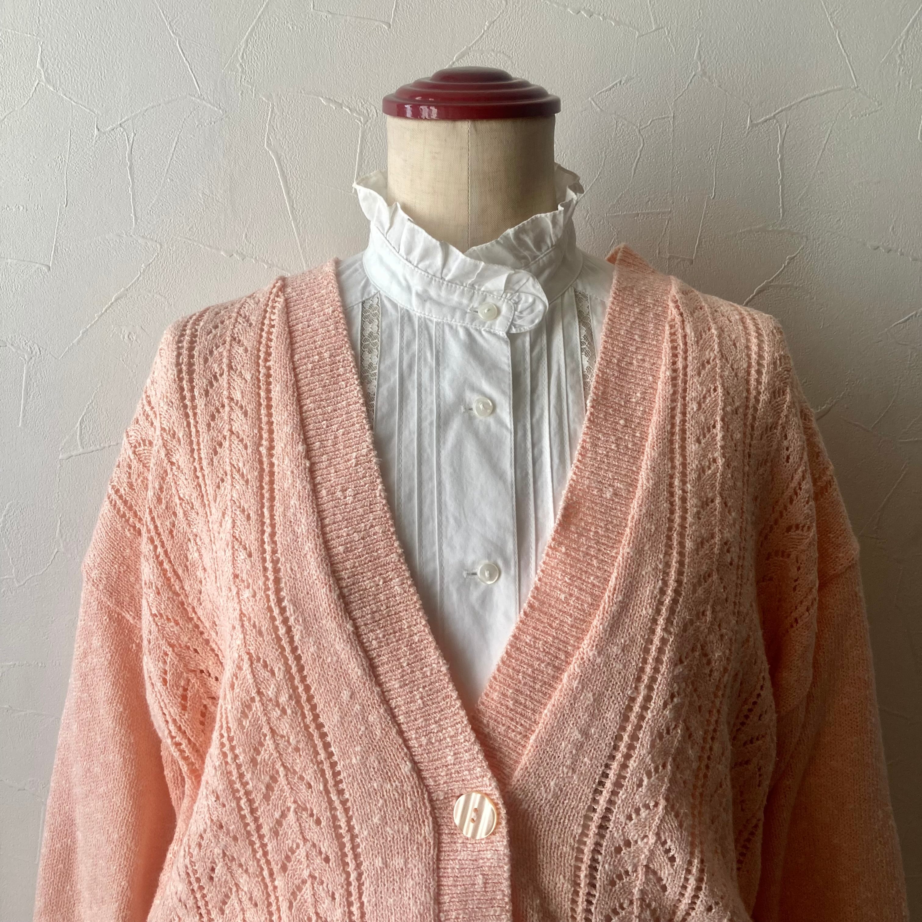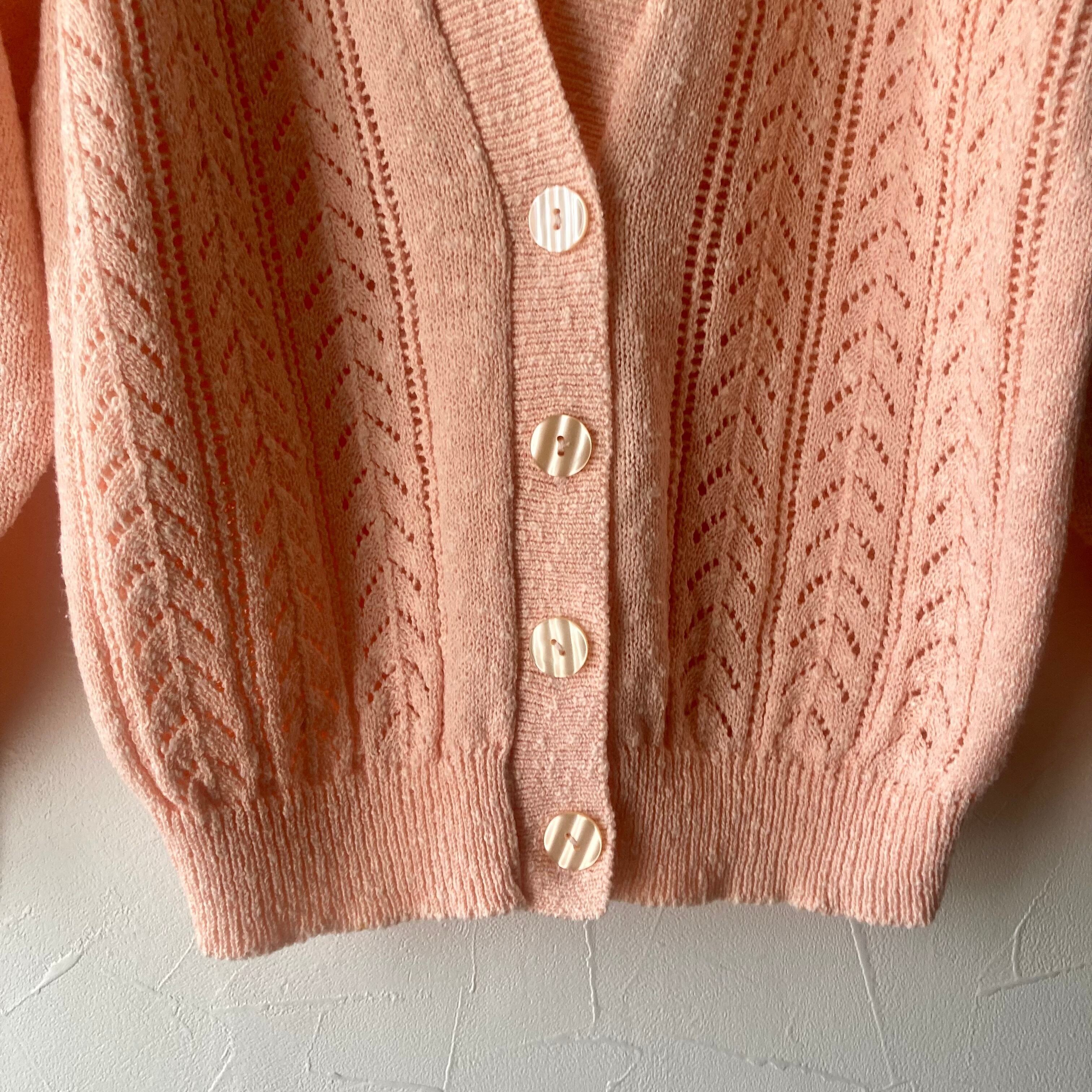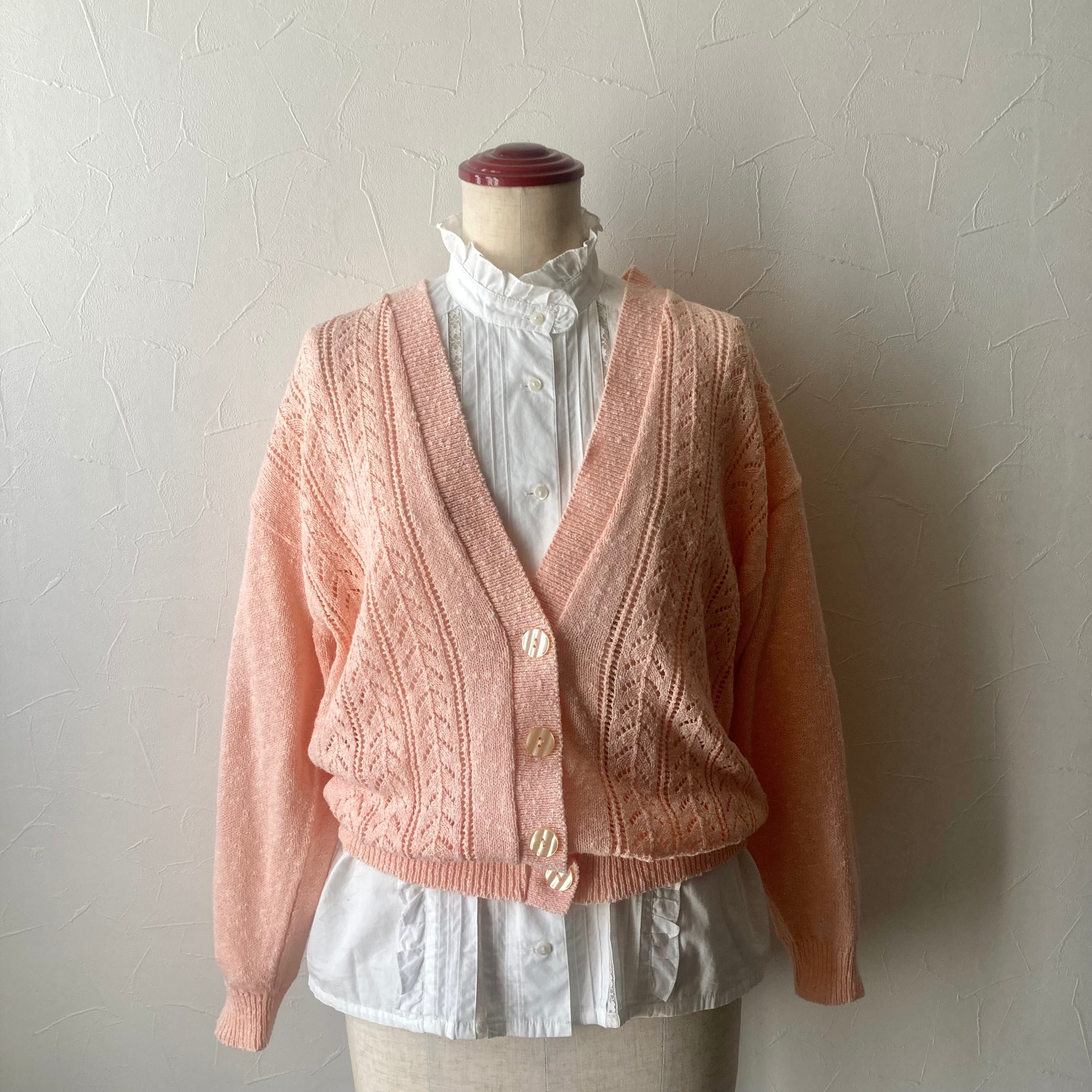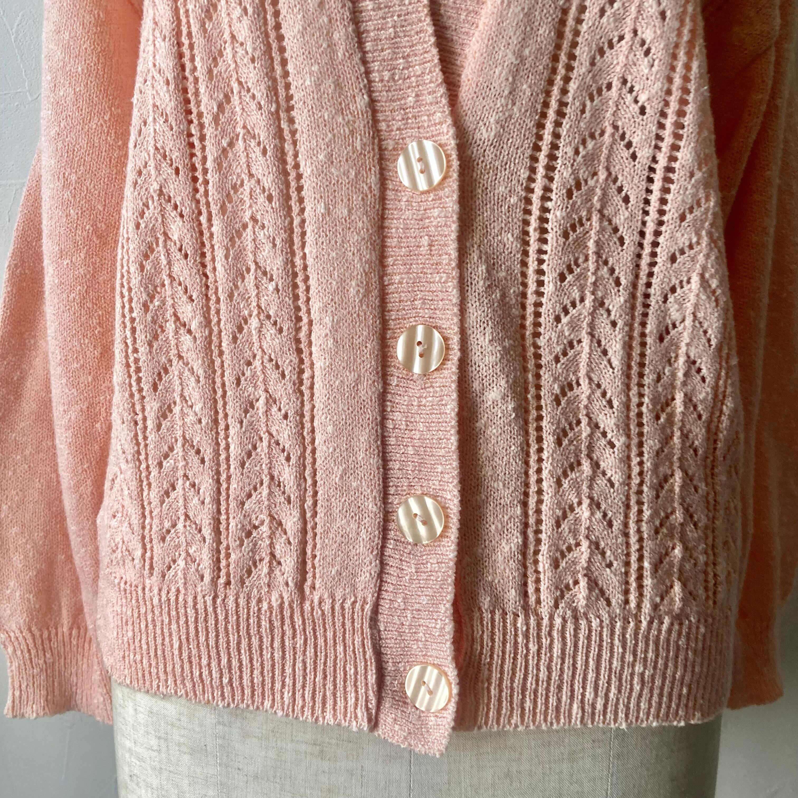 ピンク綿混カーディガン 古着 used vintage レトロ