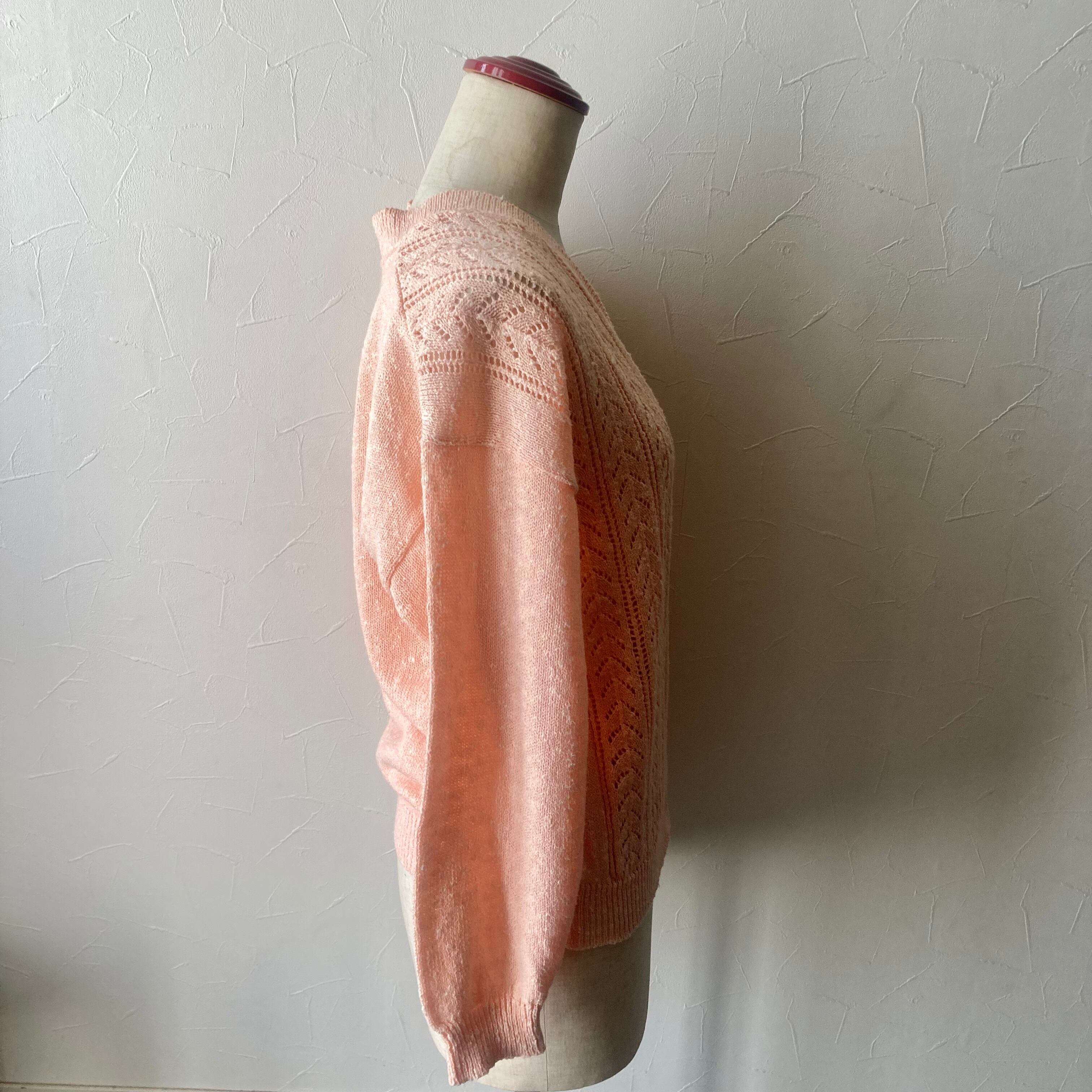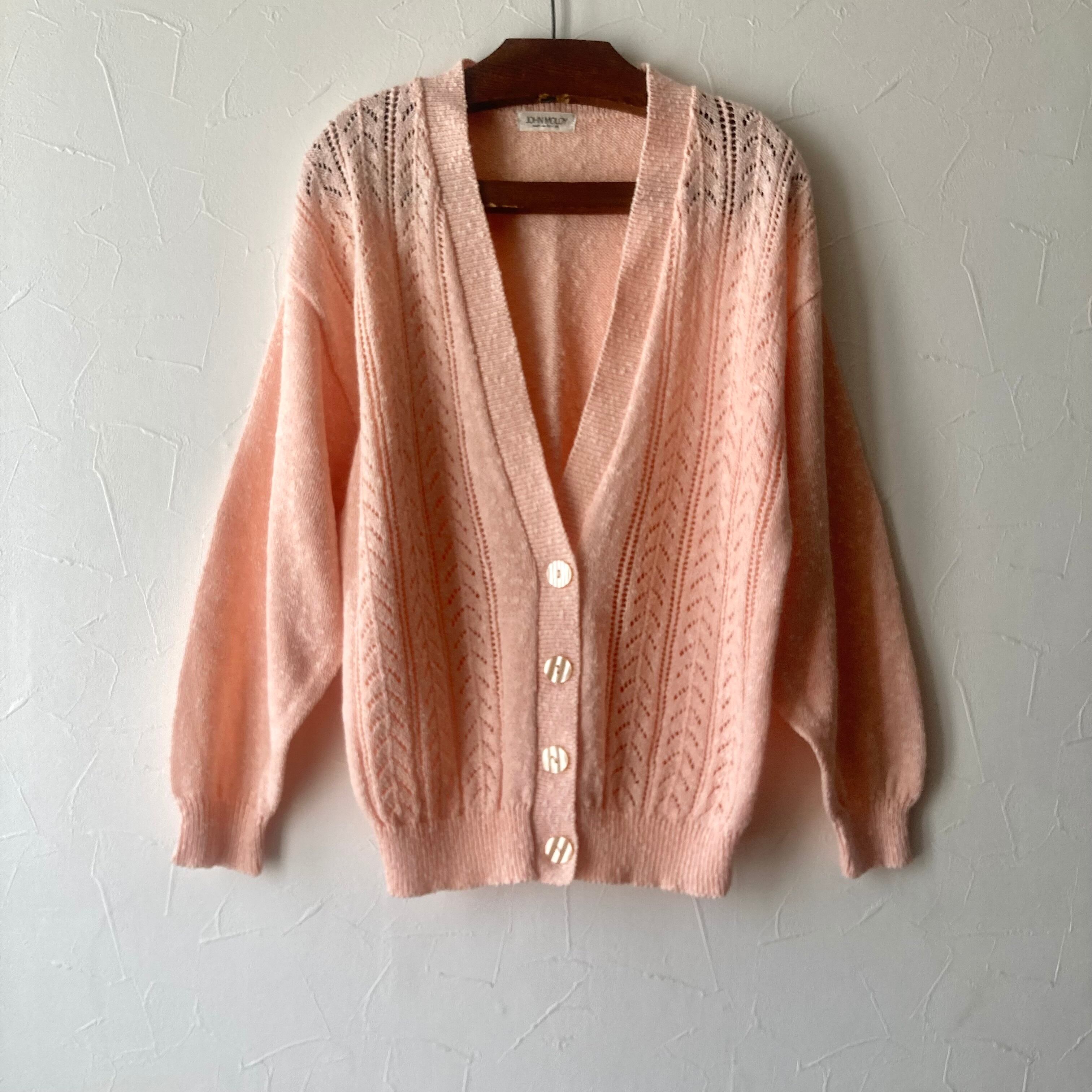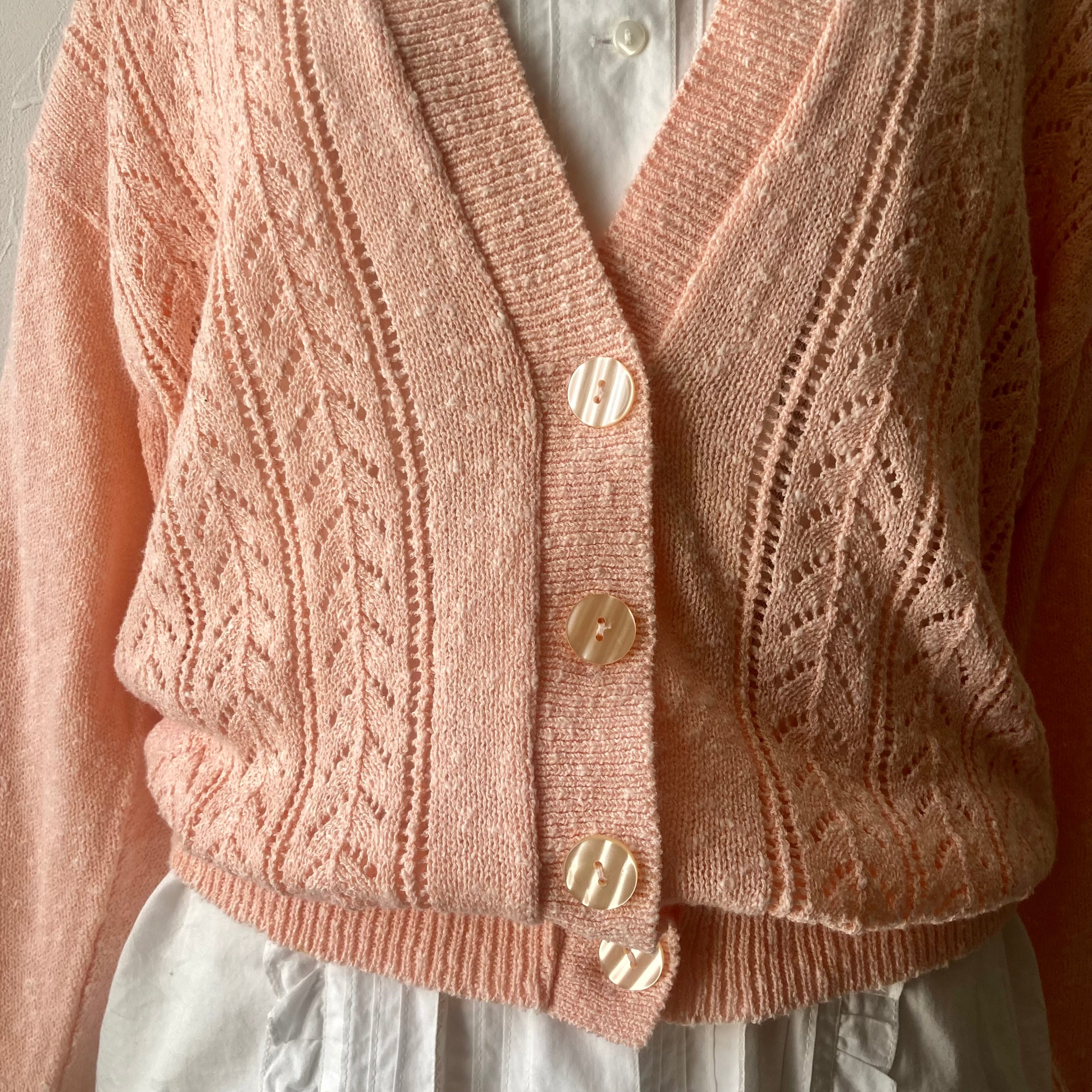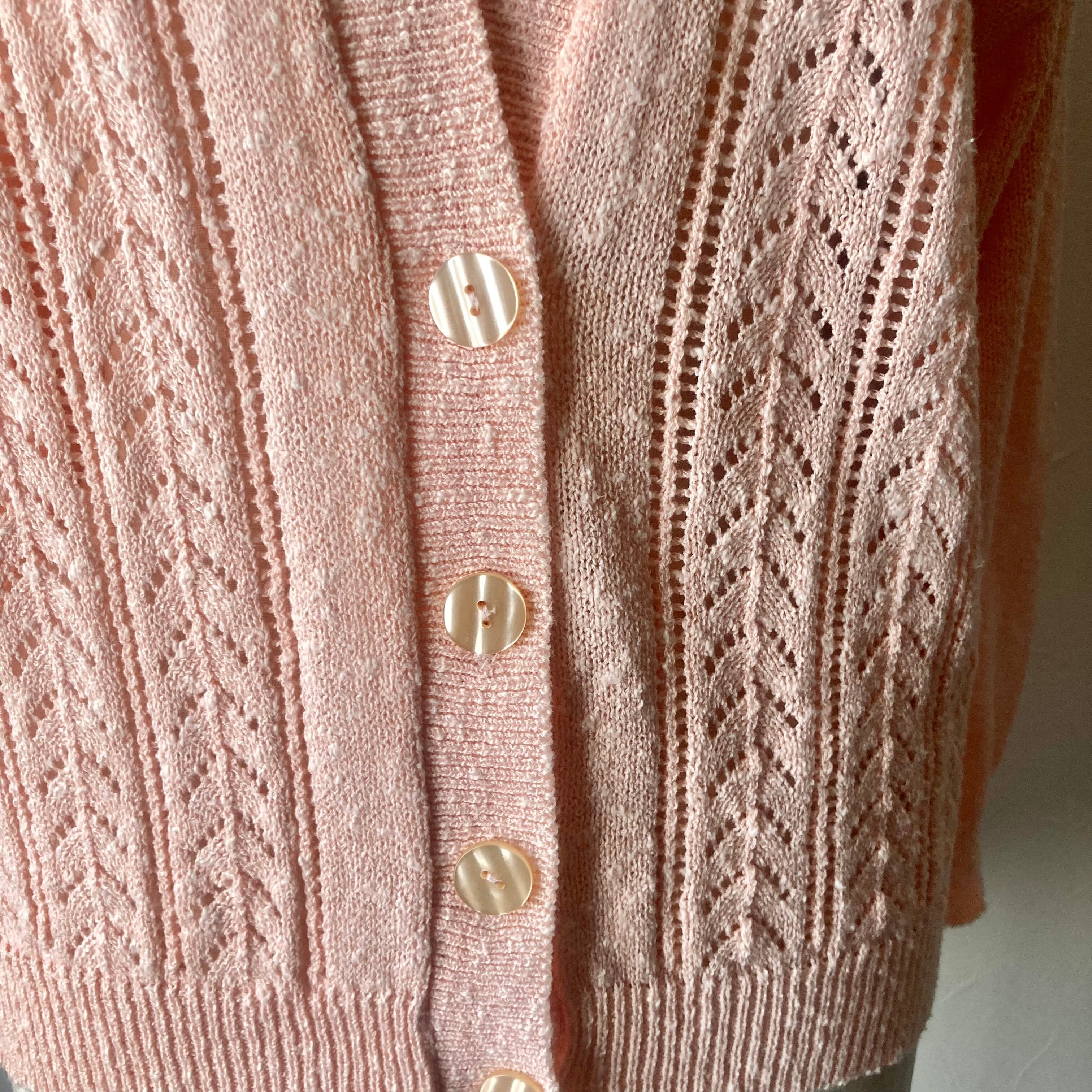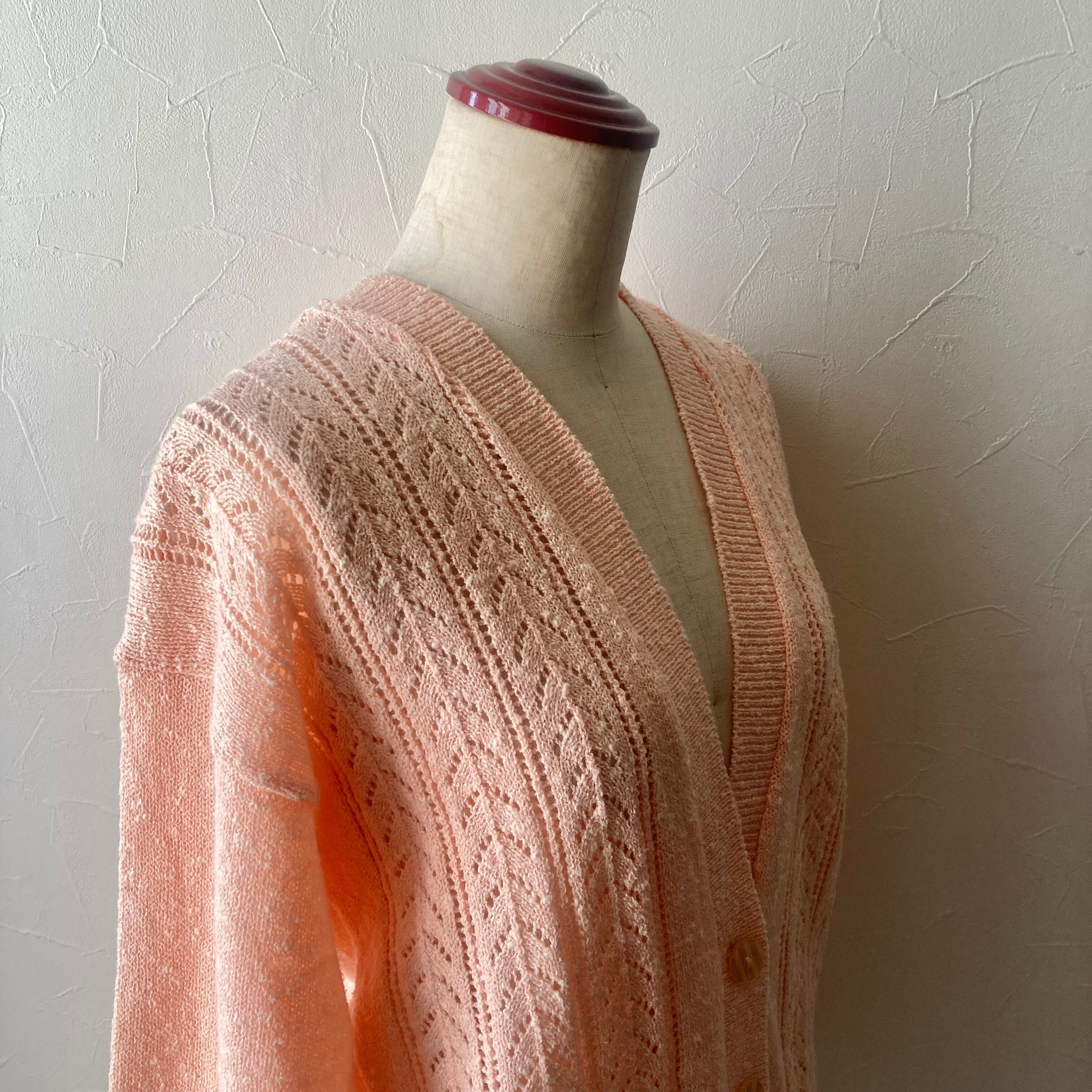 ピンク綿混カーディガン 古着 used vintage レトロ