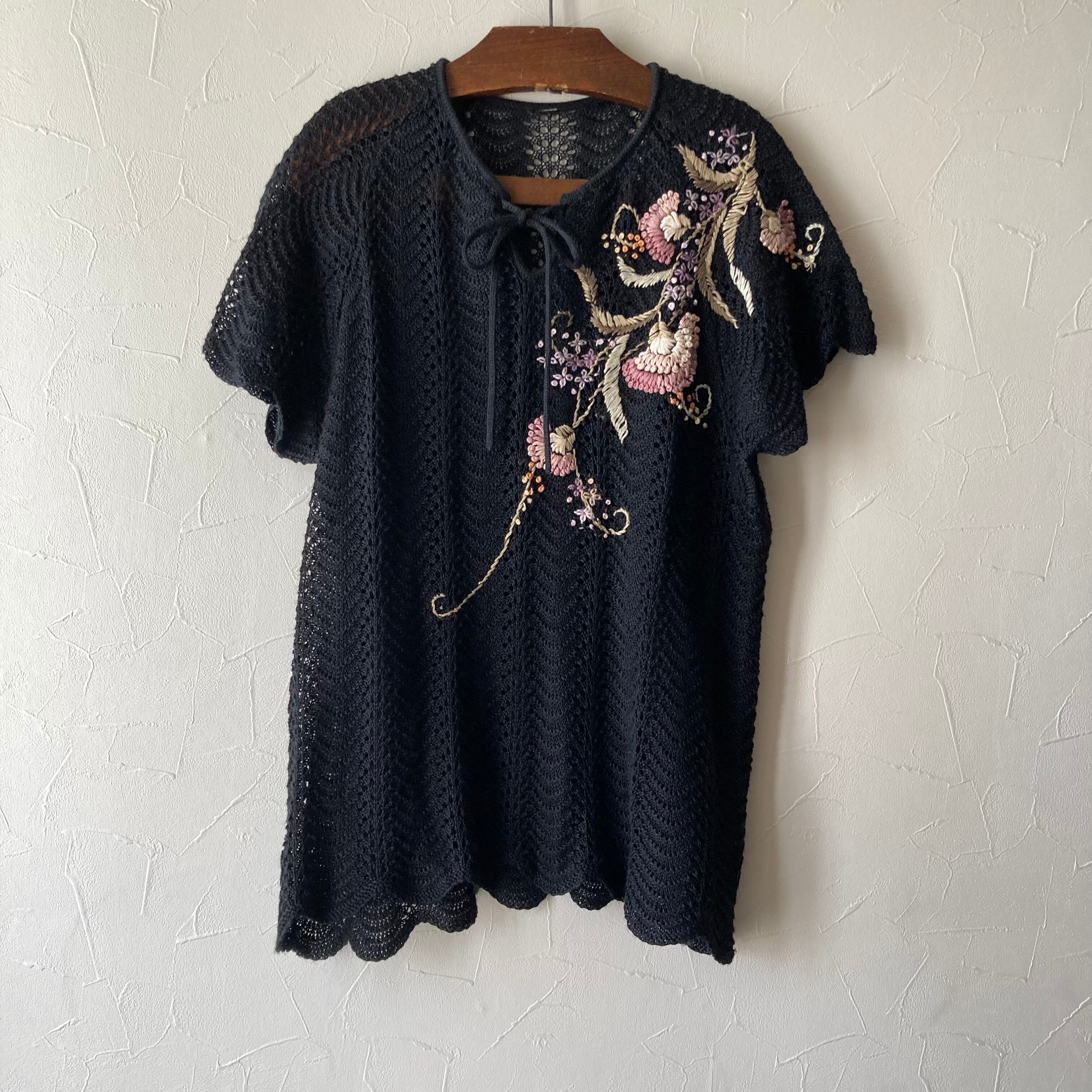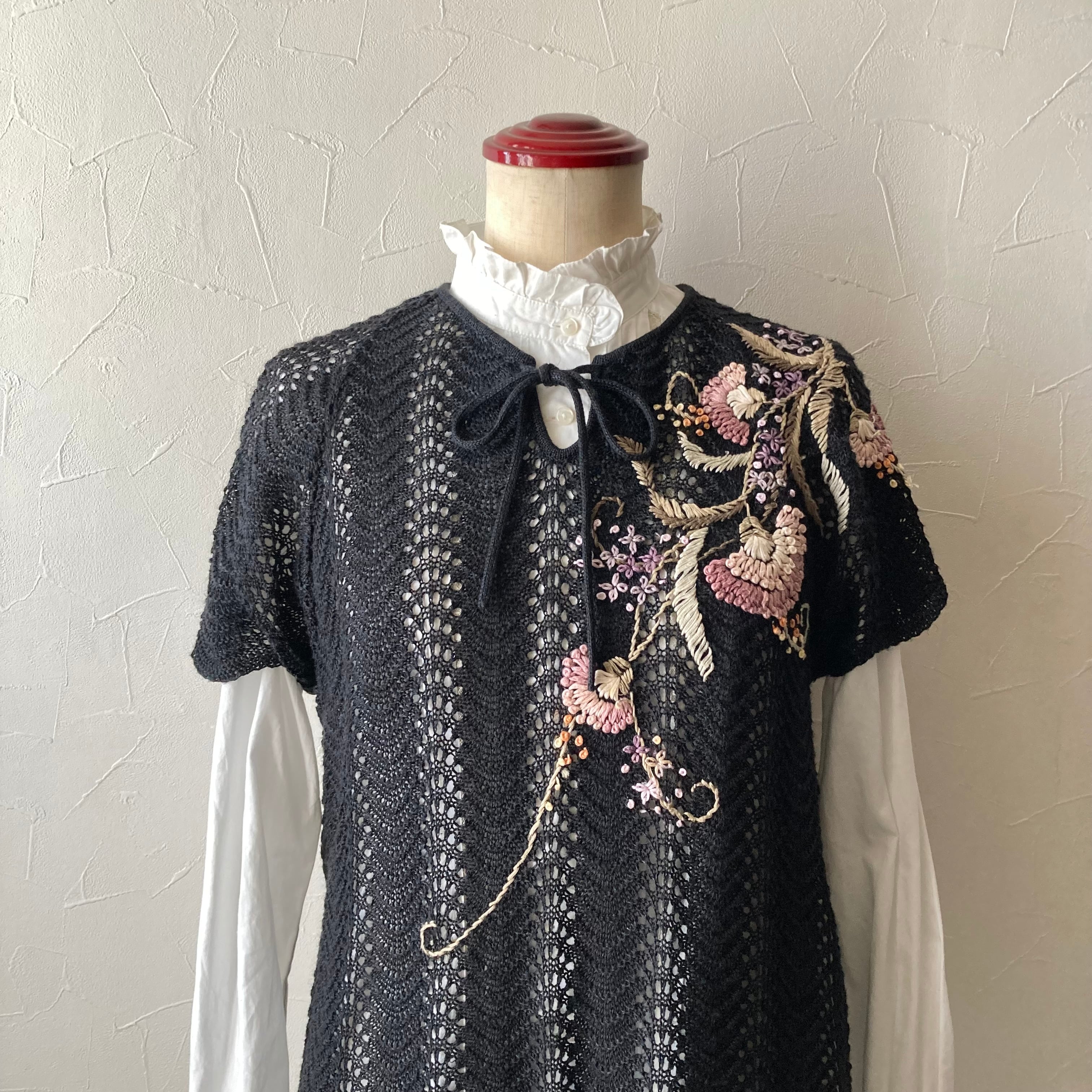 レトロな刺繍と形が可愛らしいニットトップス◯ 一枚でも重ね着しても可愛く着られます。