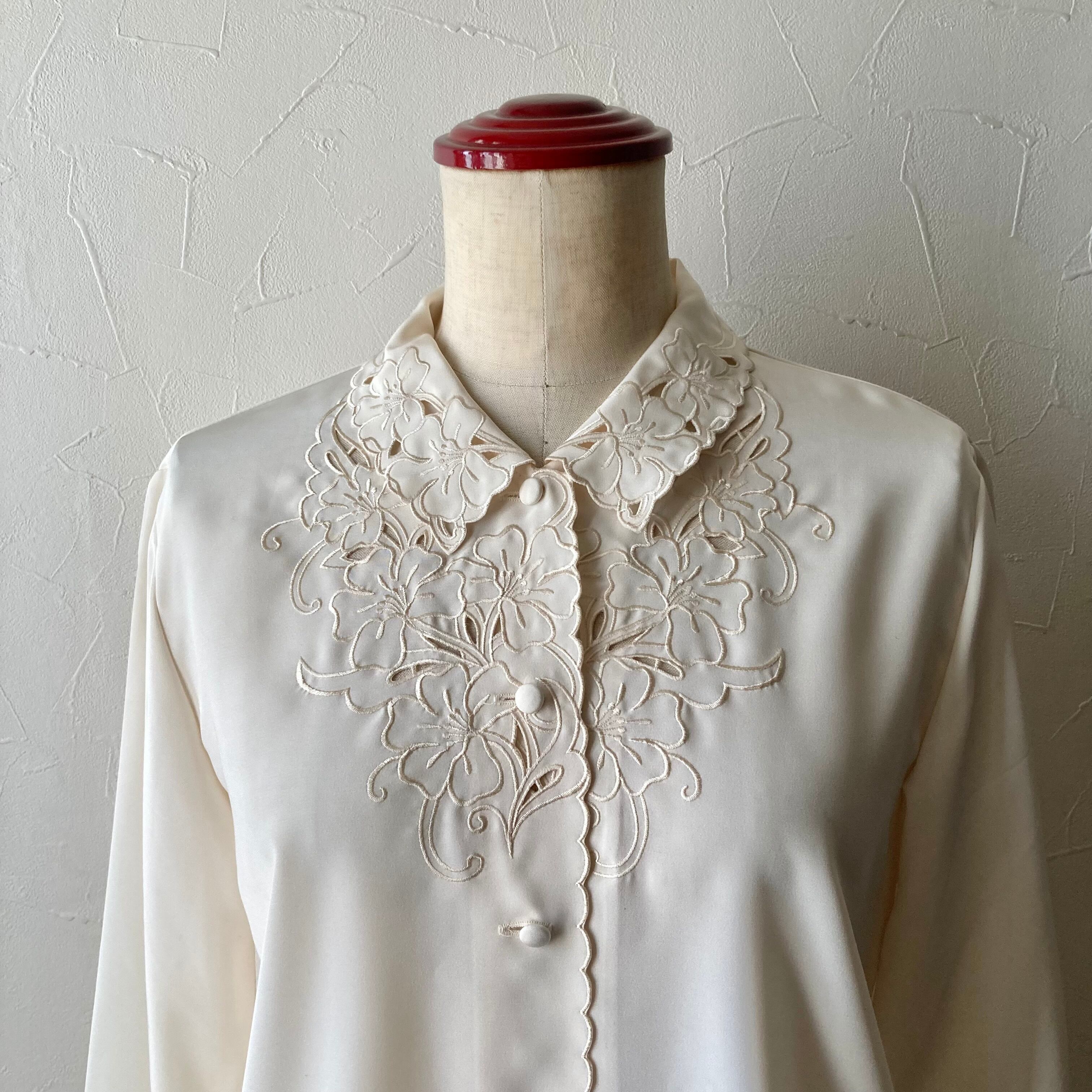 カットワーク花刺繍ブラウス 古着 used vintage レトロ