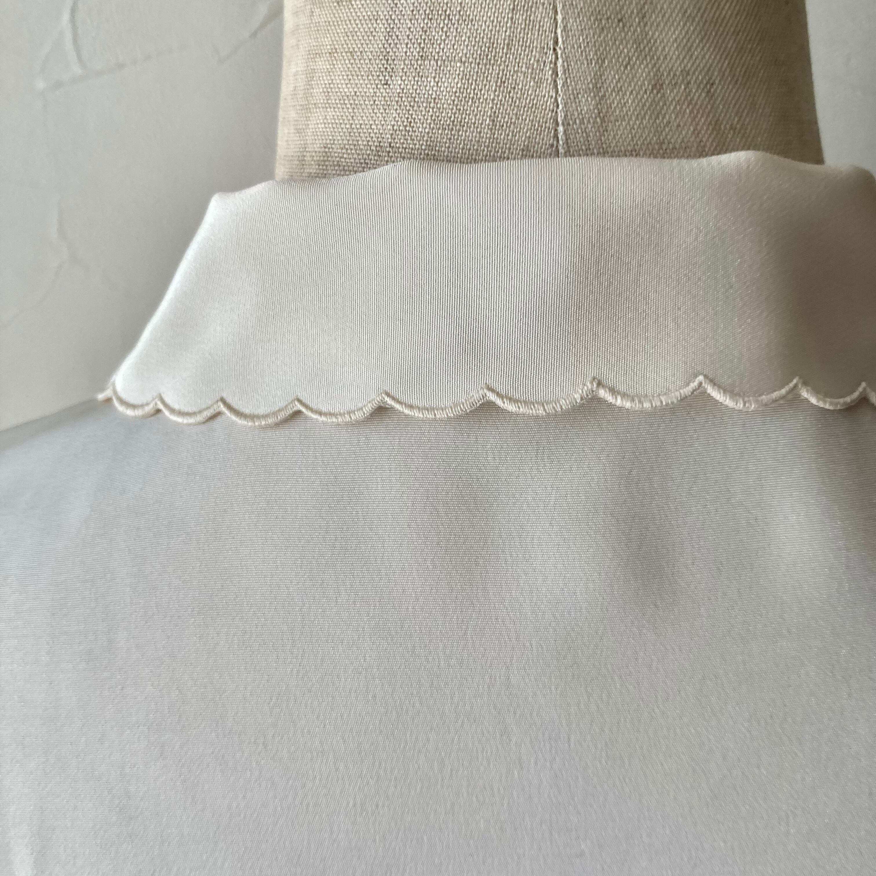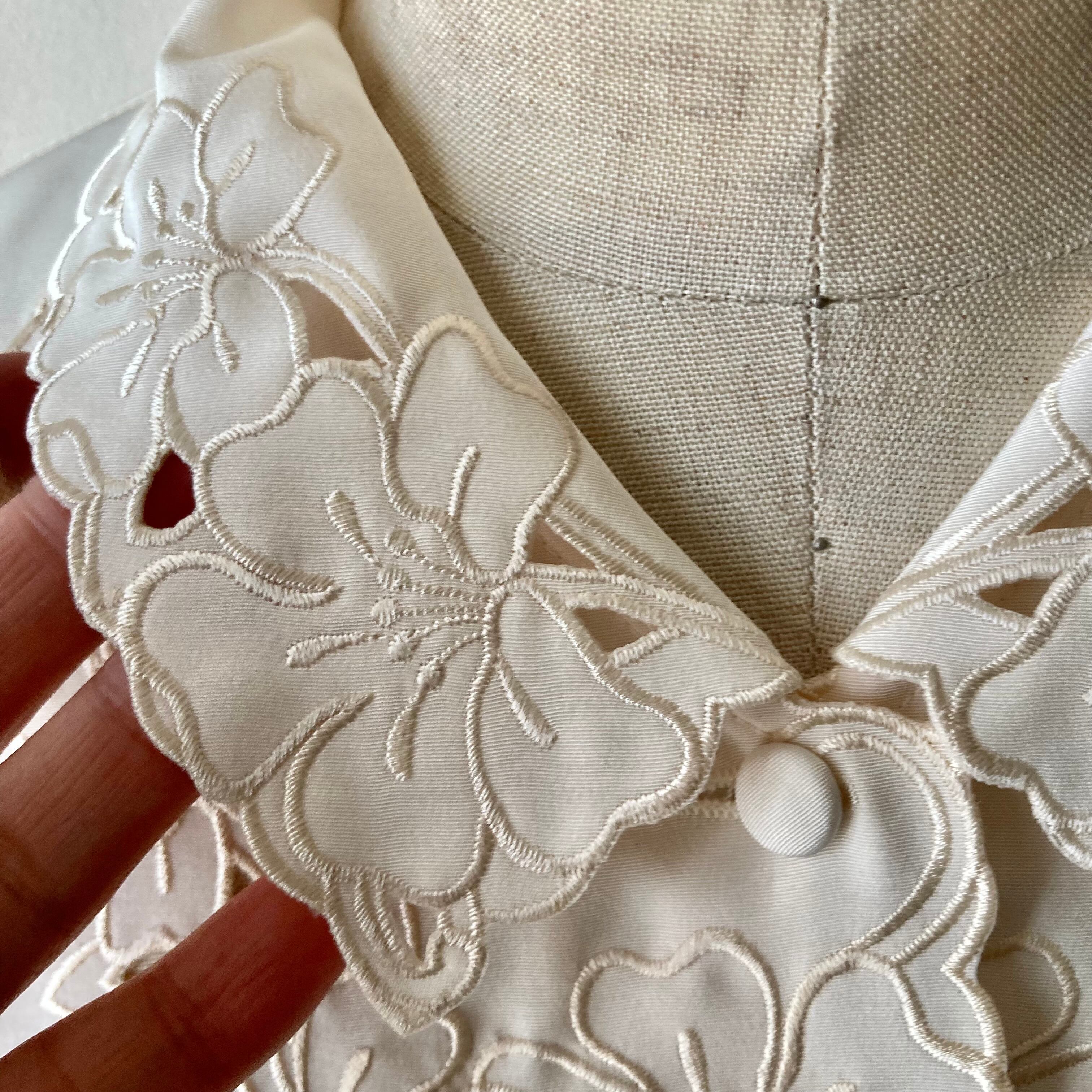 可愛らしいレトロなカットワーク花刺繍のブラウス◯ 丁寧な作りでくるみボタンも上品です。