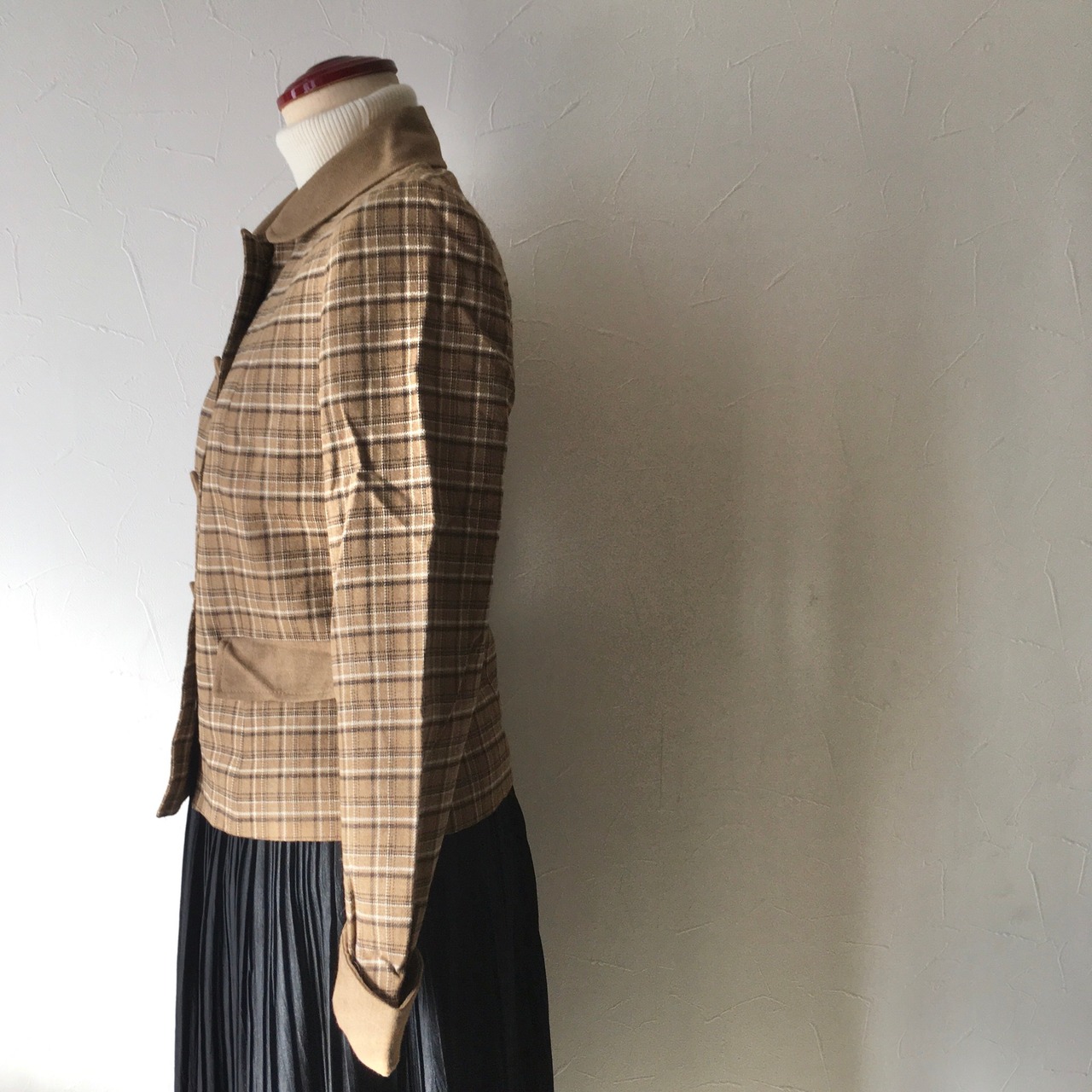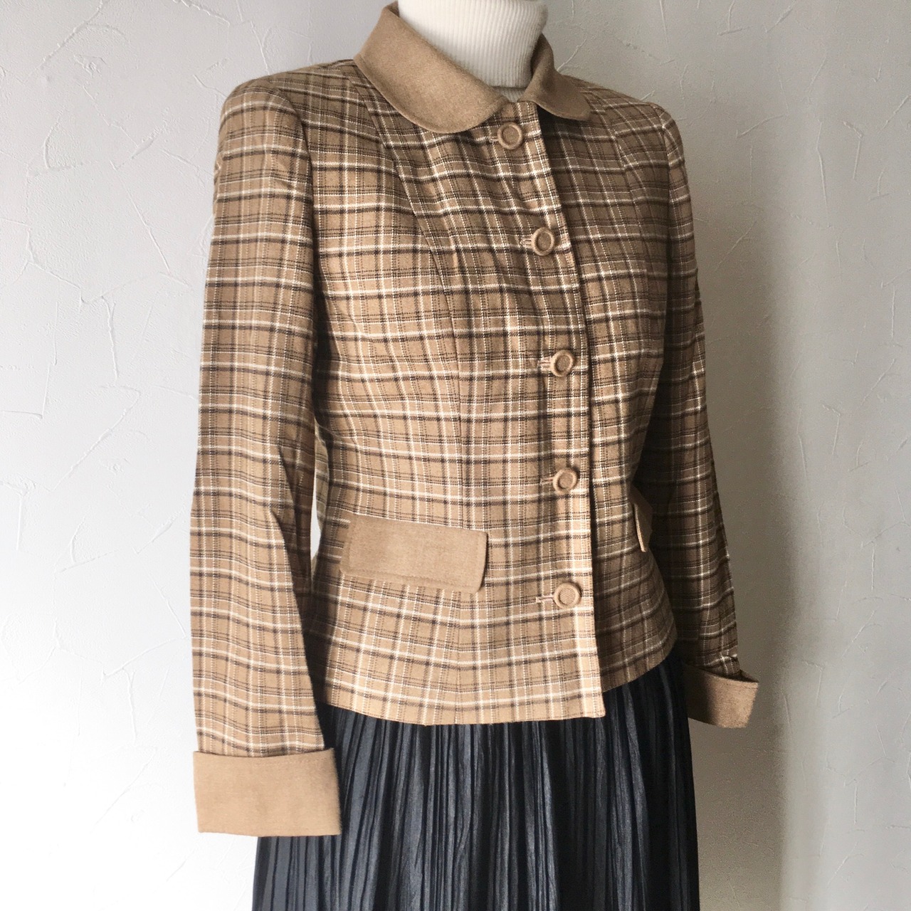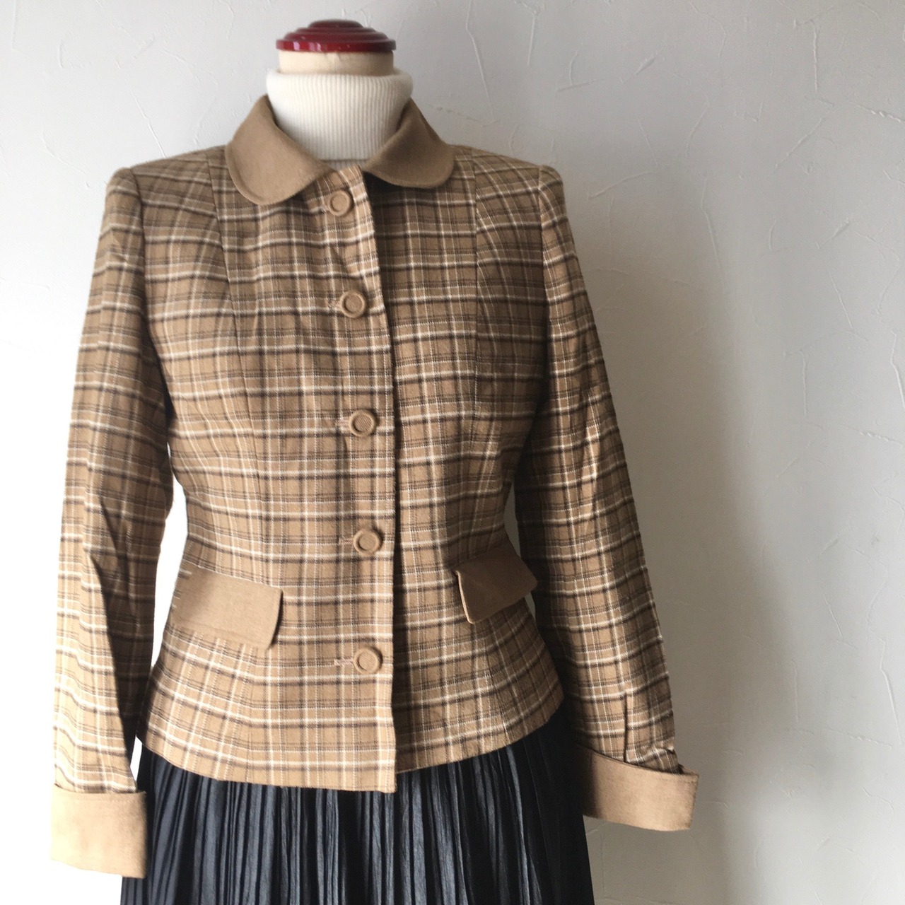 ベージュのチェックジャケット 昭和レトロ vintage 古着 used