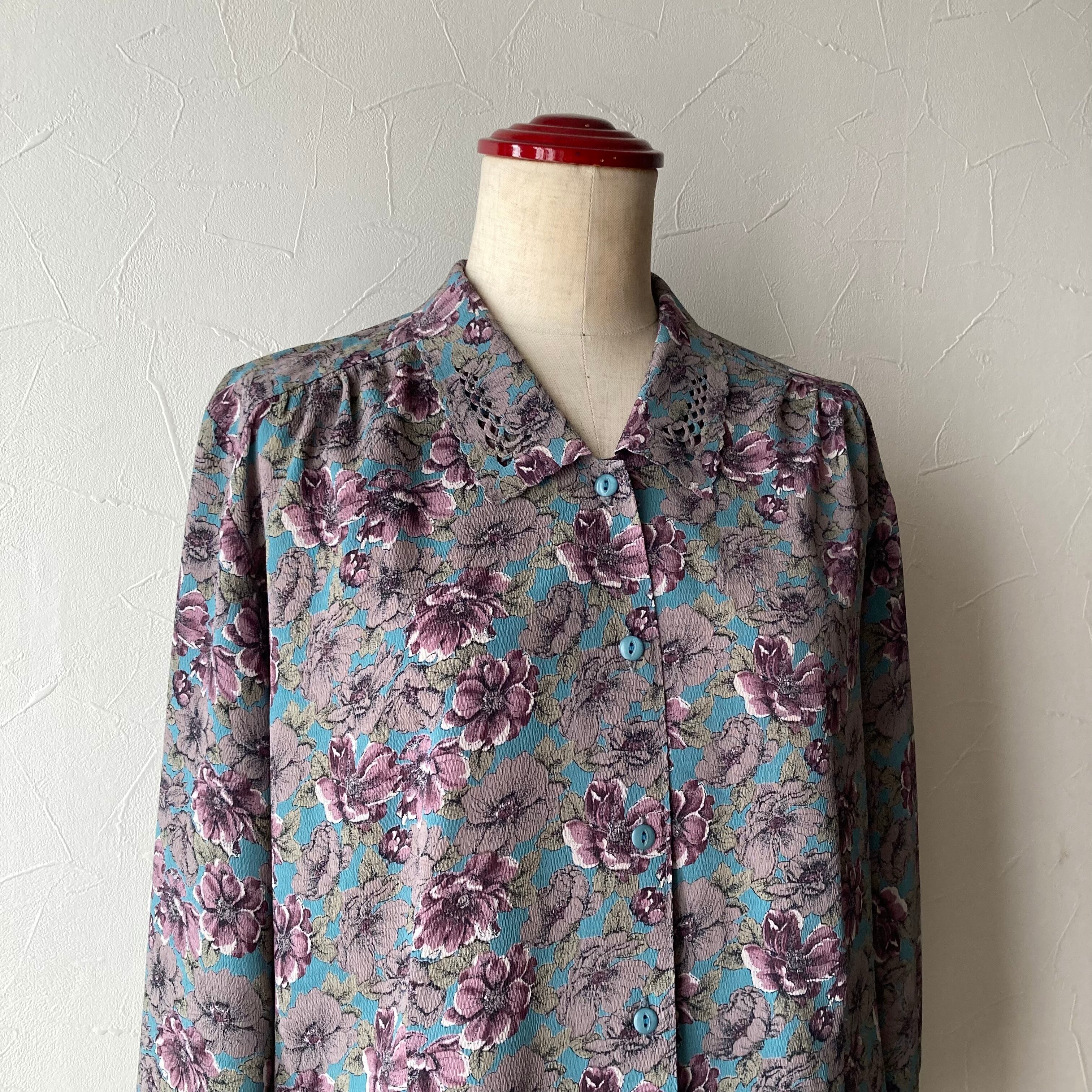 くすみ花柄ブラウス 昭和レトロ 古着 used vintage