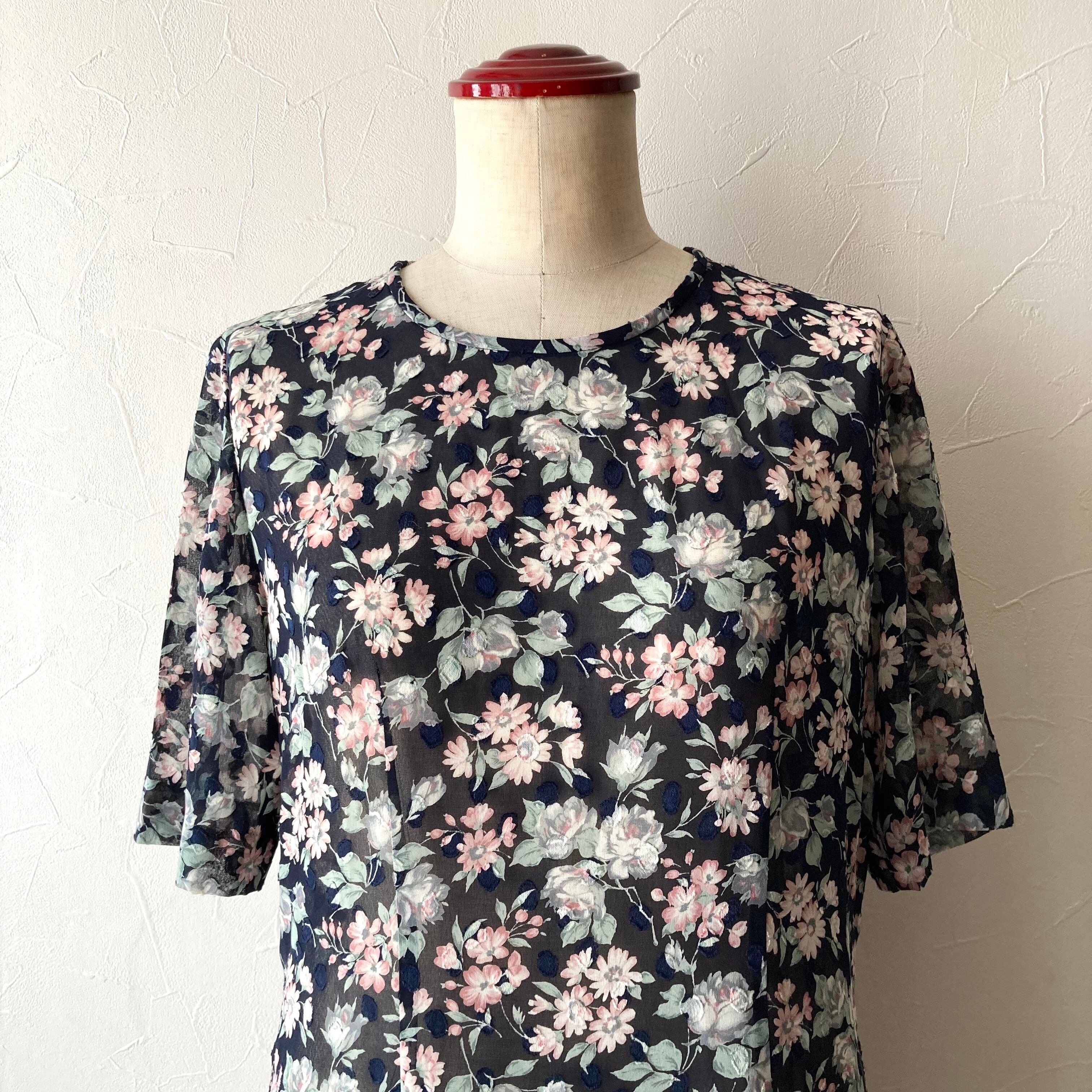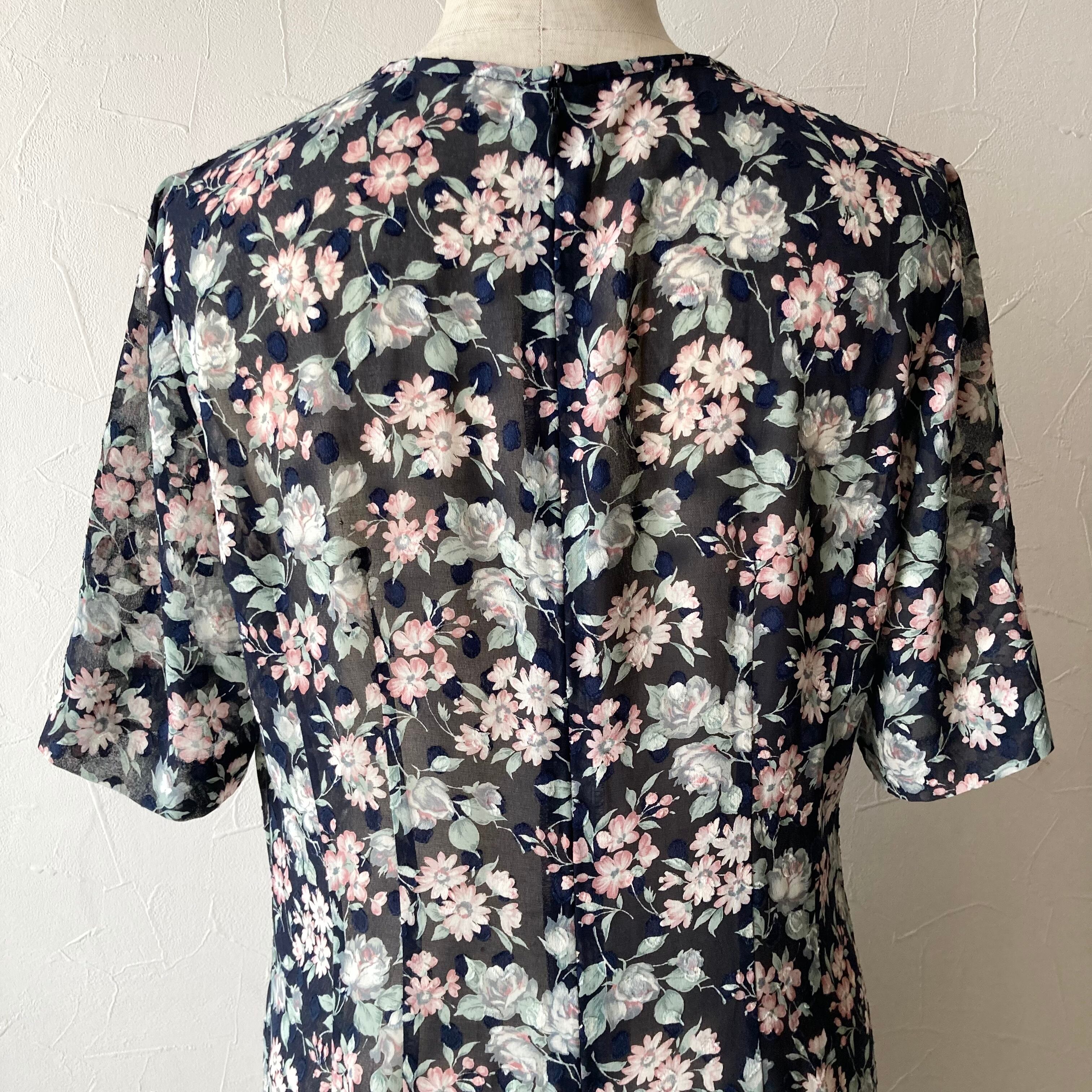 花柄×ドット刺繍スリットワンピース 昭和レトロ 古着 used vintage