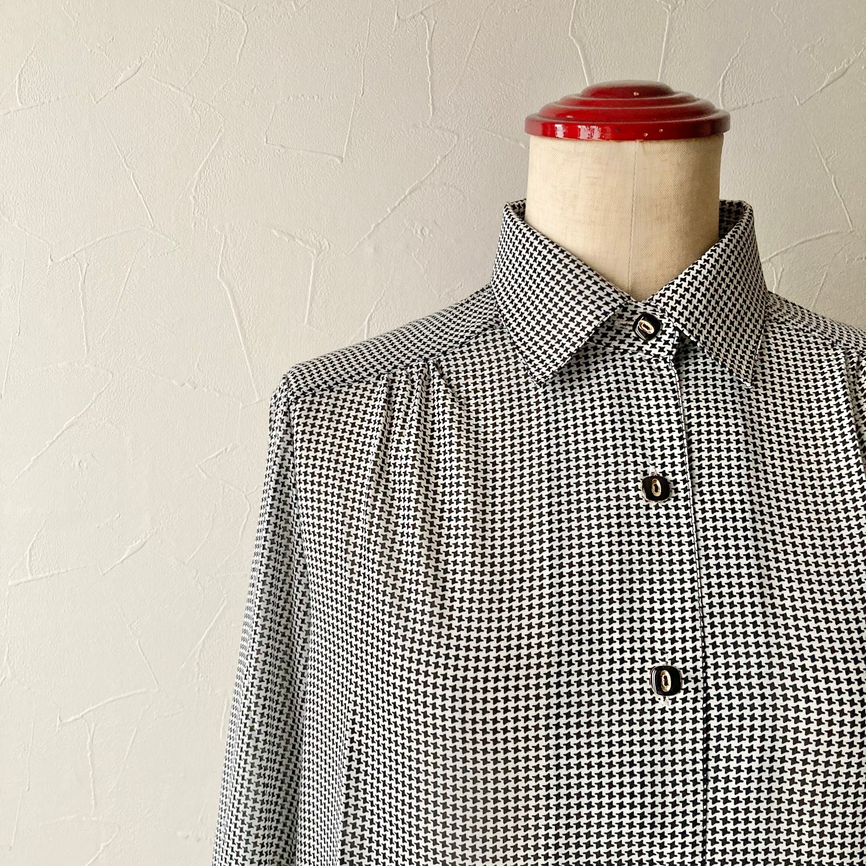 一見細かい千鳥格子のような柄がシンプルの中にもレトロを感じる素敵なブラウスです◯