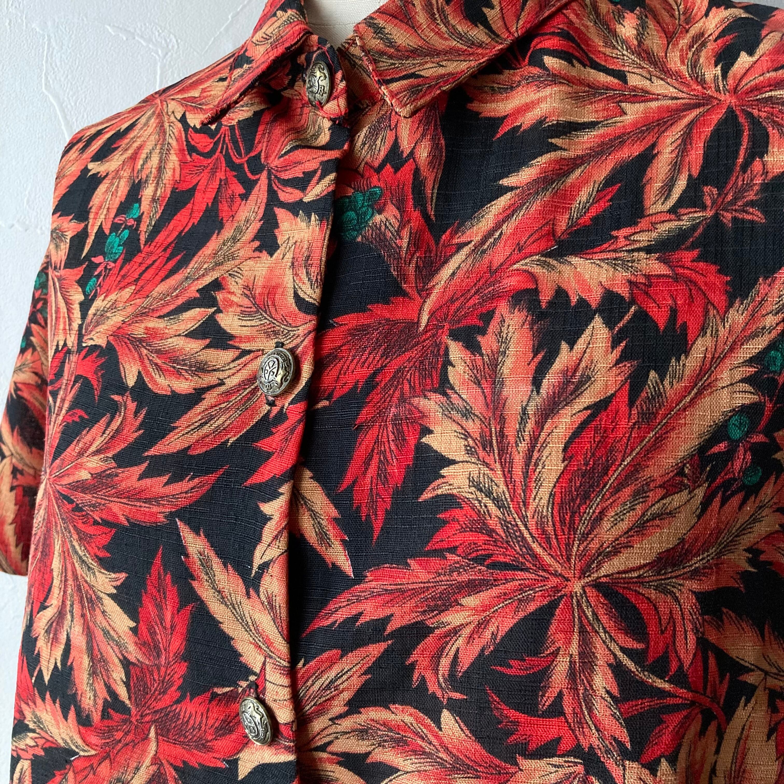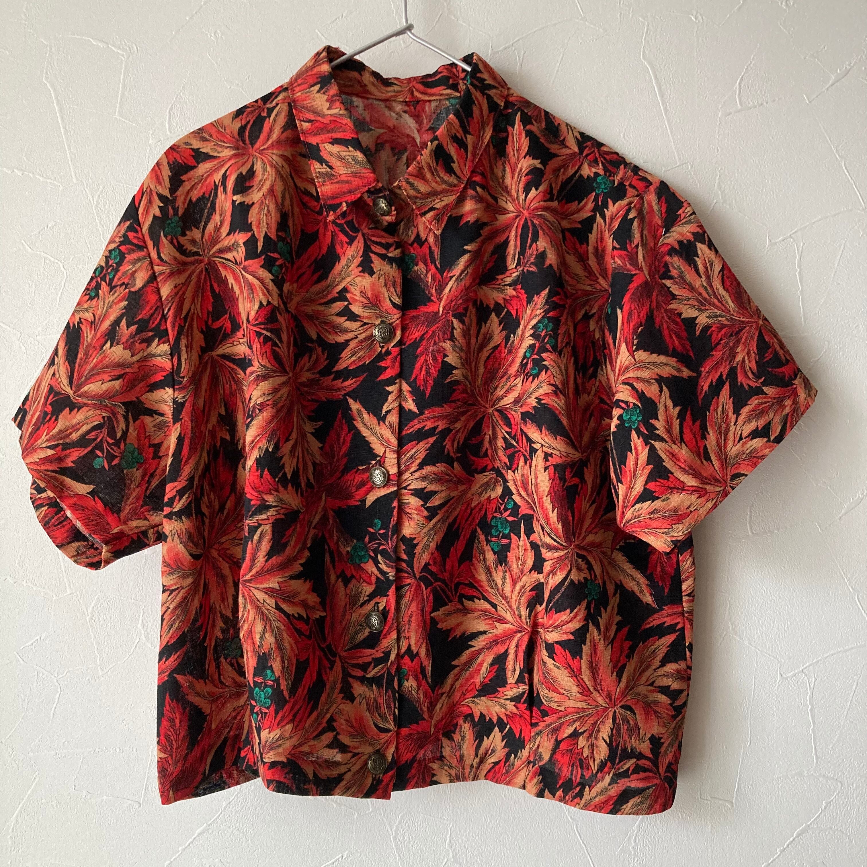 リーフ柄ブラウス 昭和レトロ 古着 used vintage