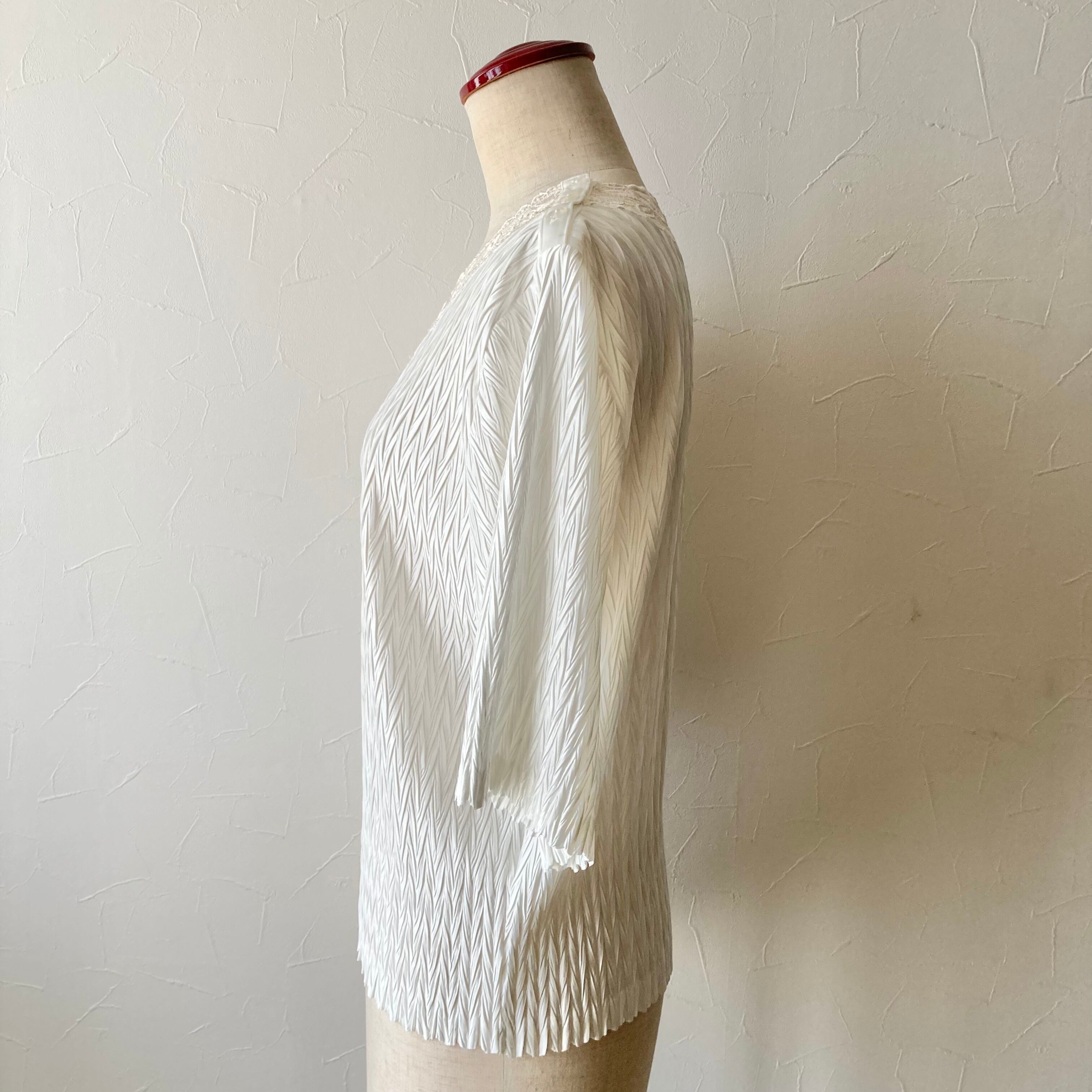 花刺繍ホワイトトップス 昭和レトロ 古着 used vintage