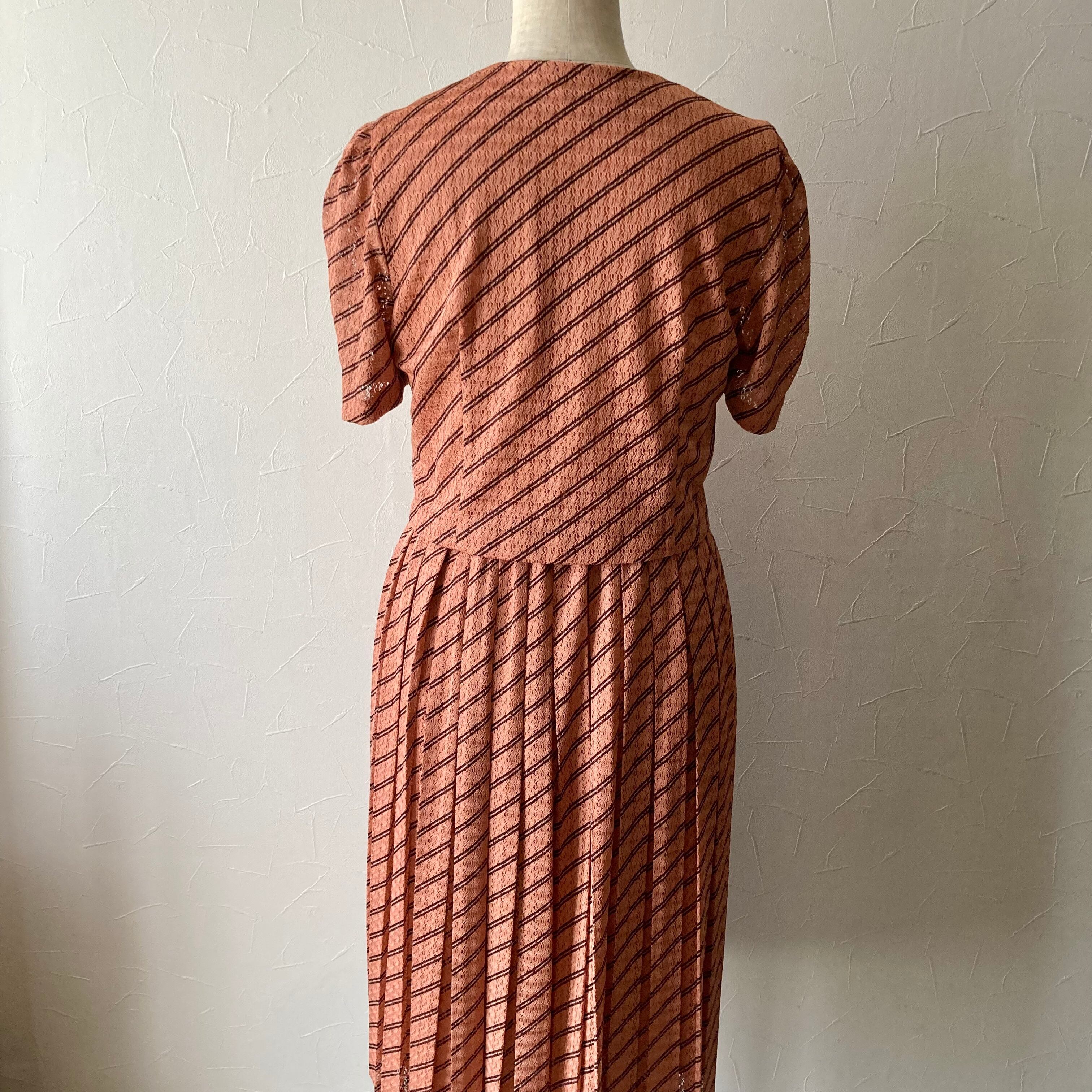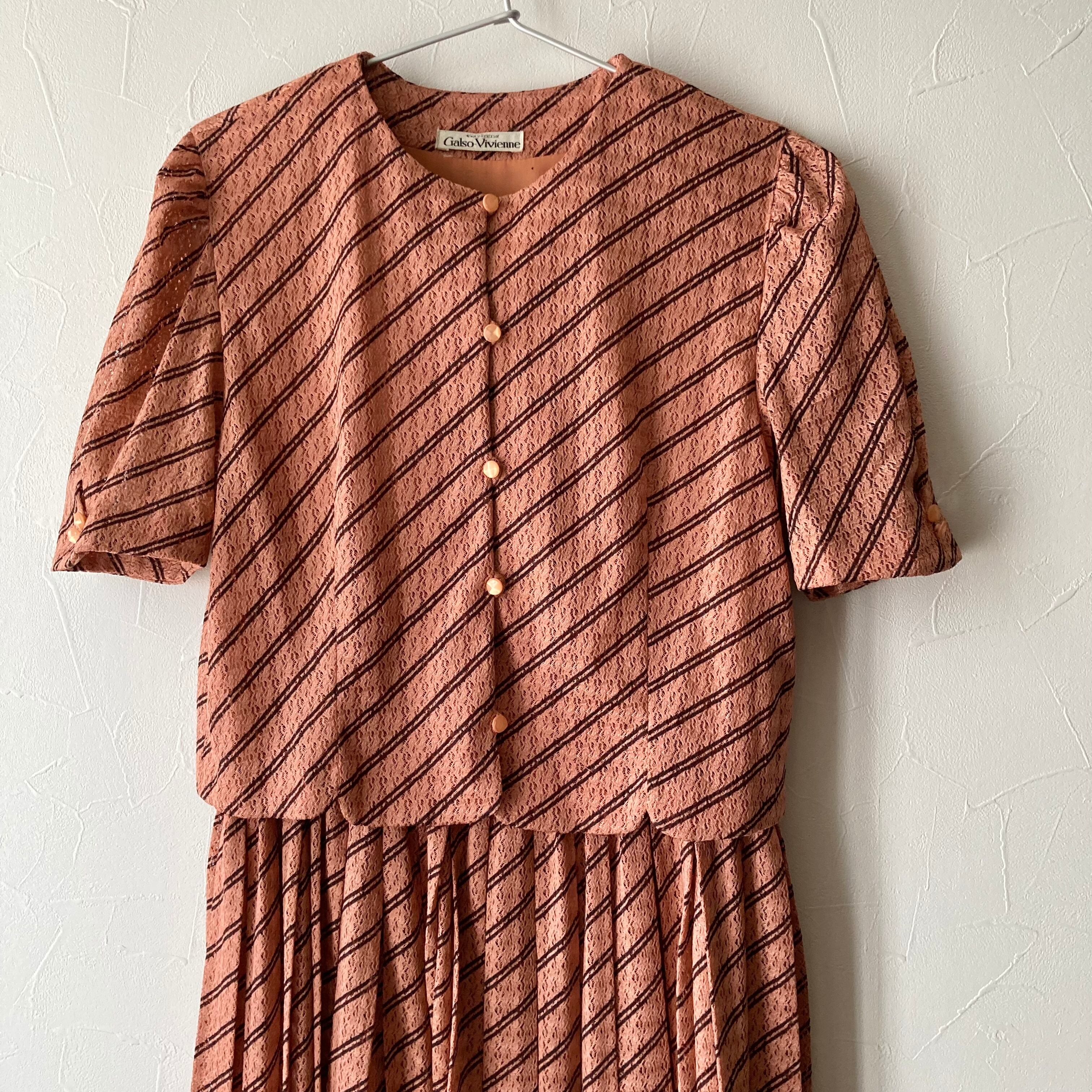 ななめストライププリーツワンピース 昭和レトロ 古着 used vintage