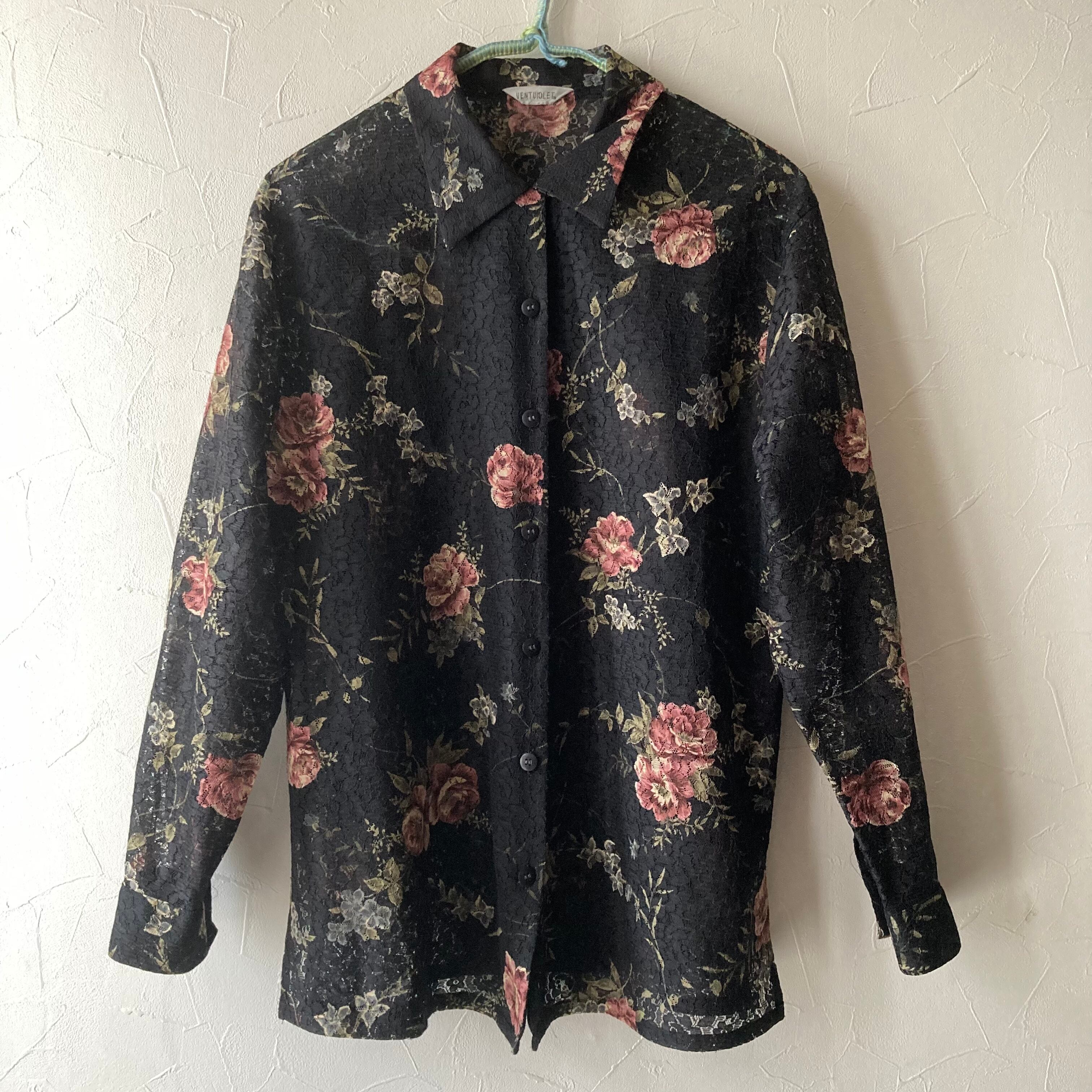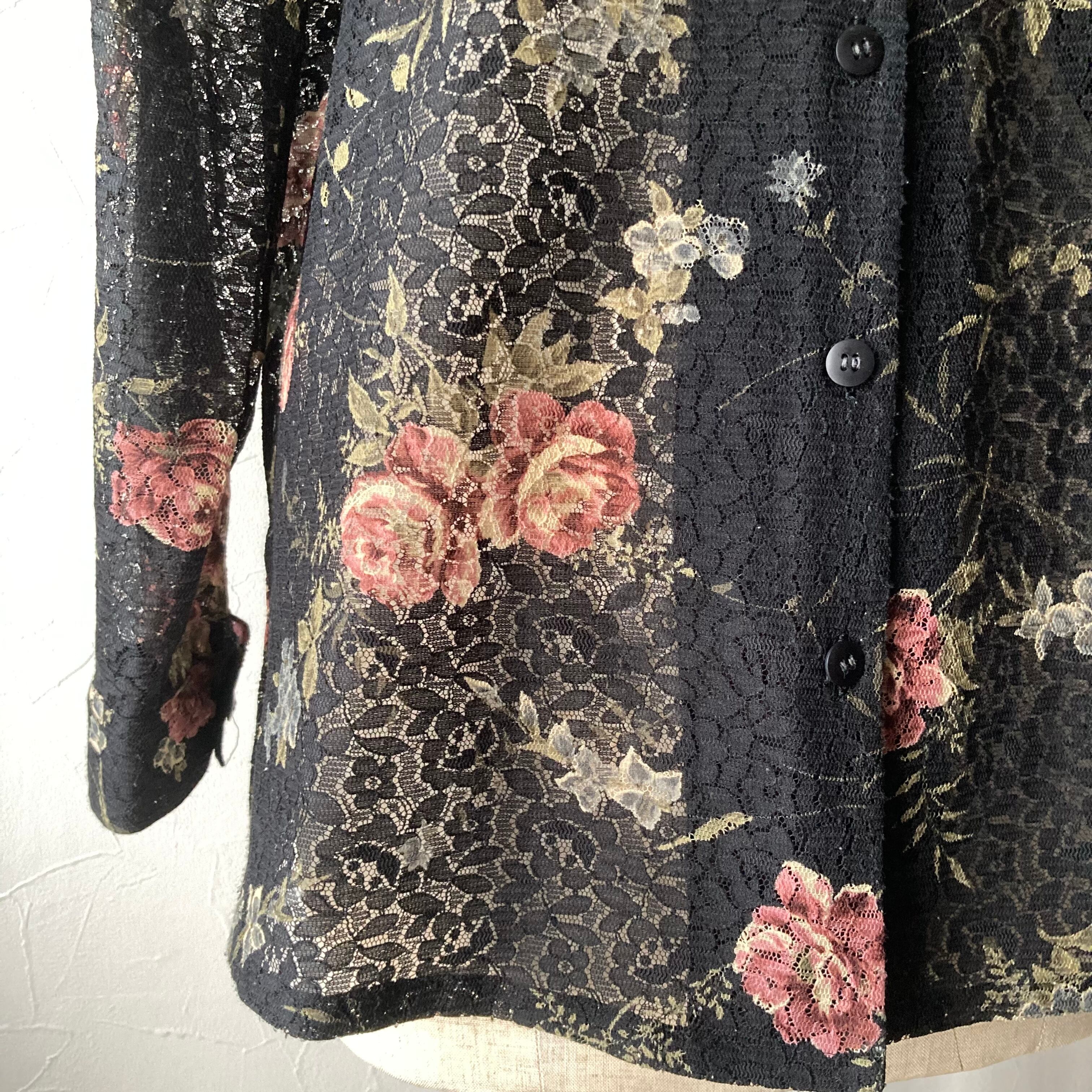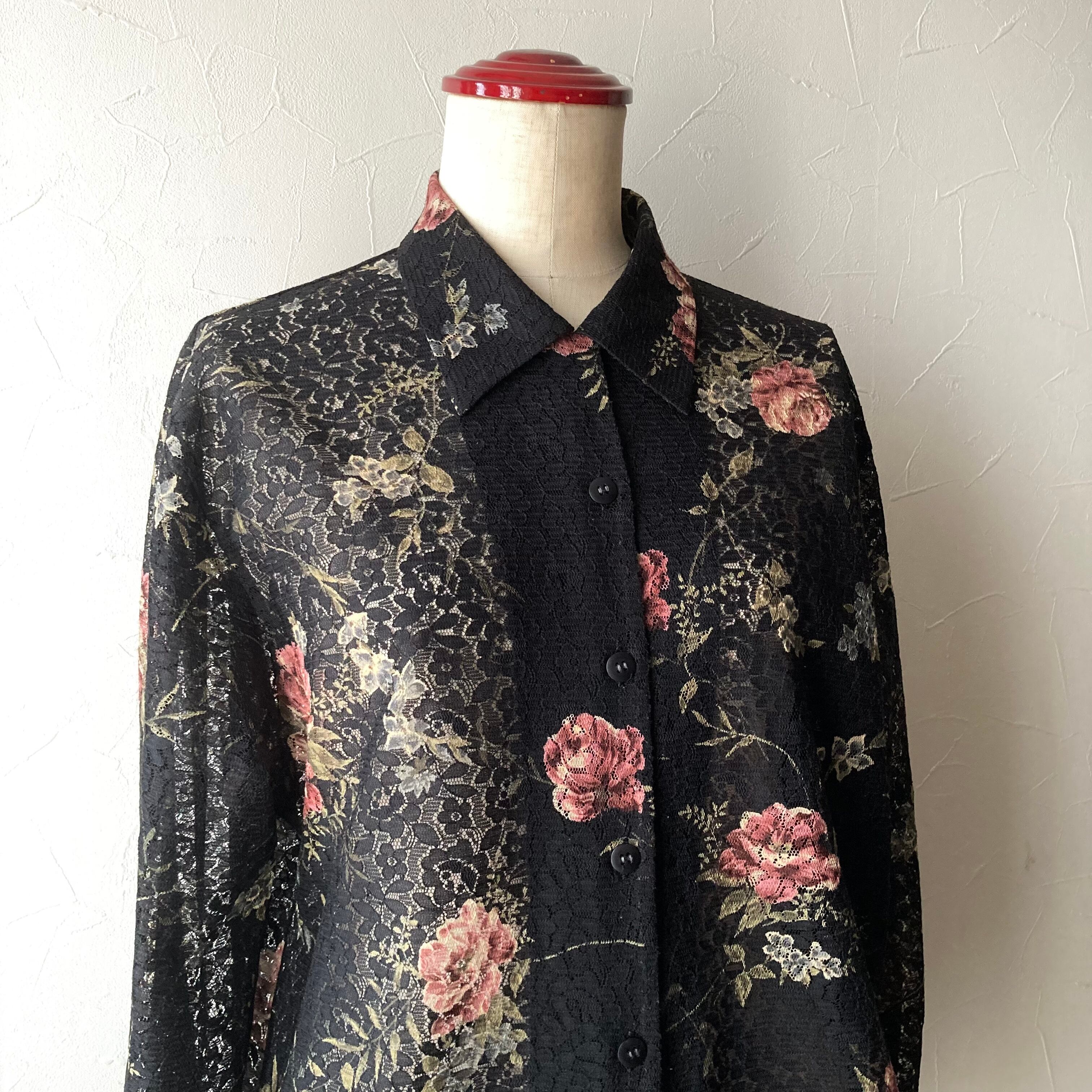 黒レース薔薇ブラウス 昭和レトロ 古着 used vintage