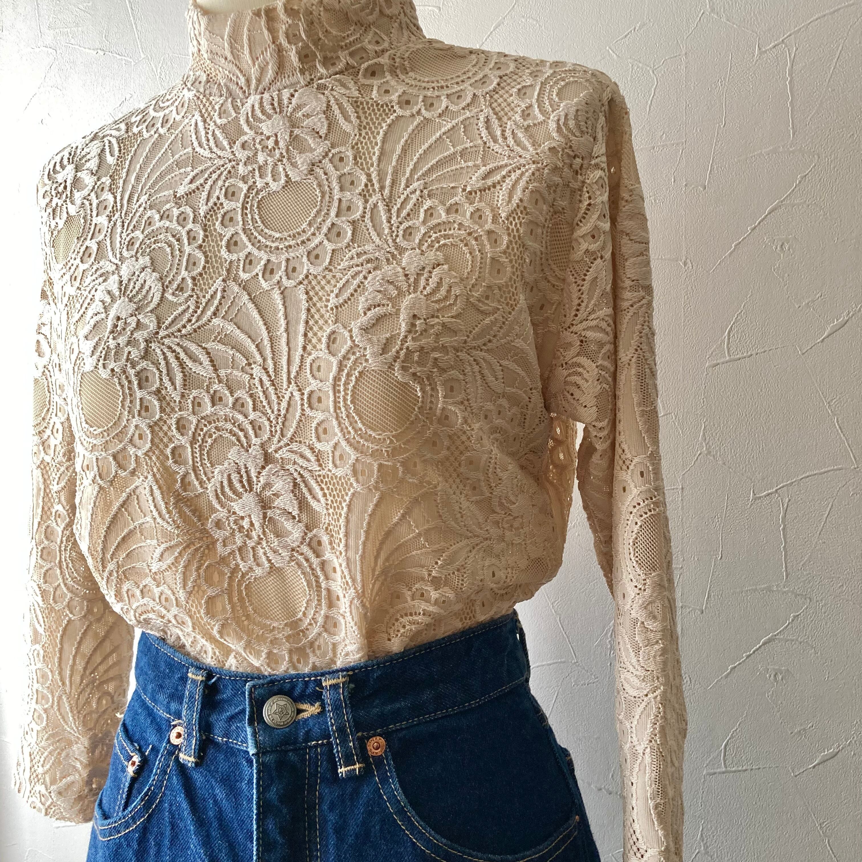 お花レース刺繍トップス 昭和レトロ 古着 used