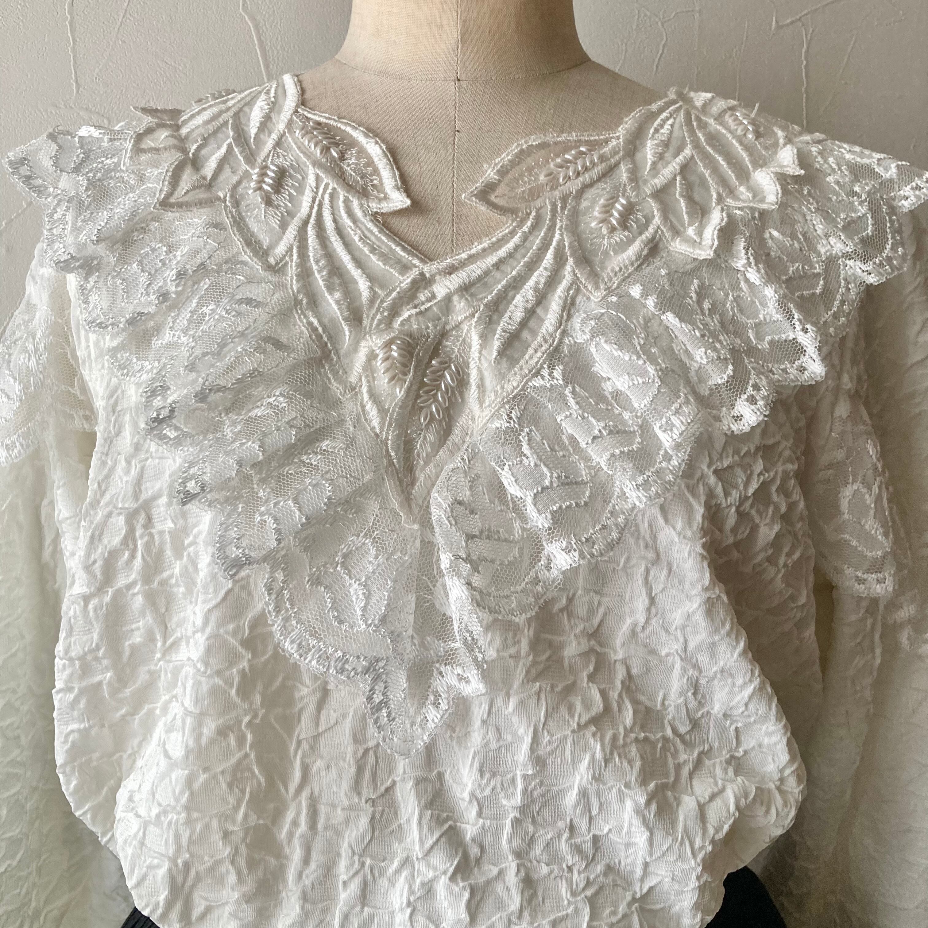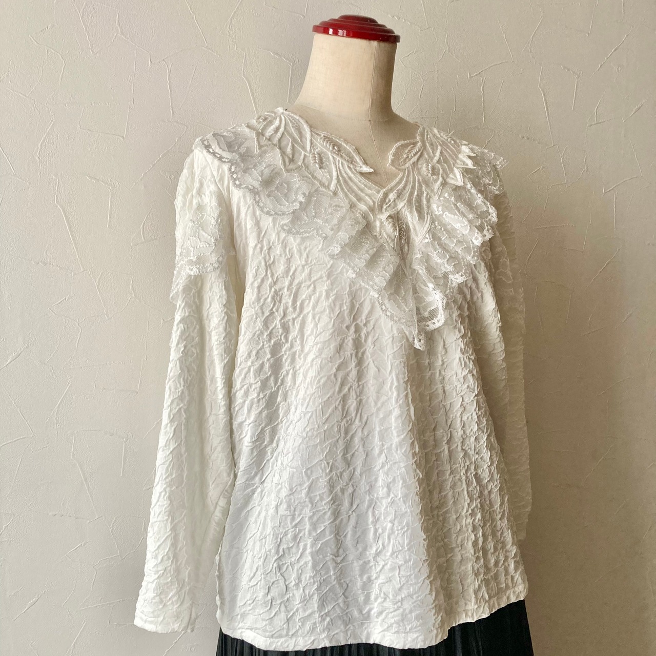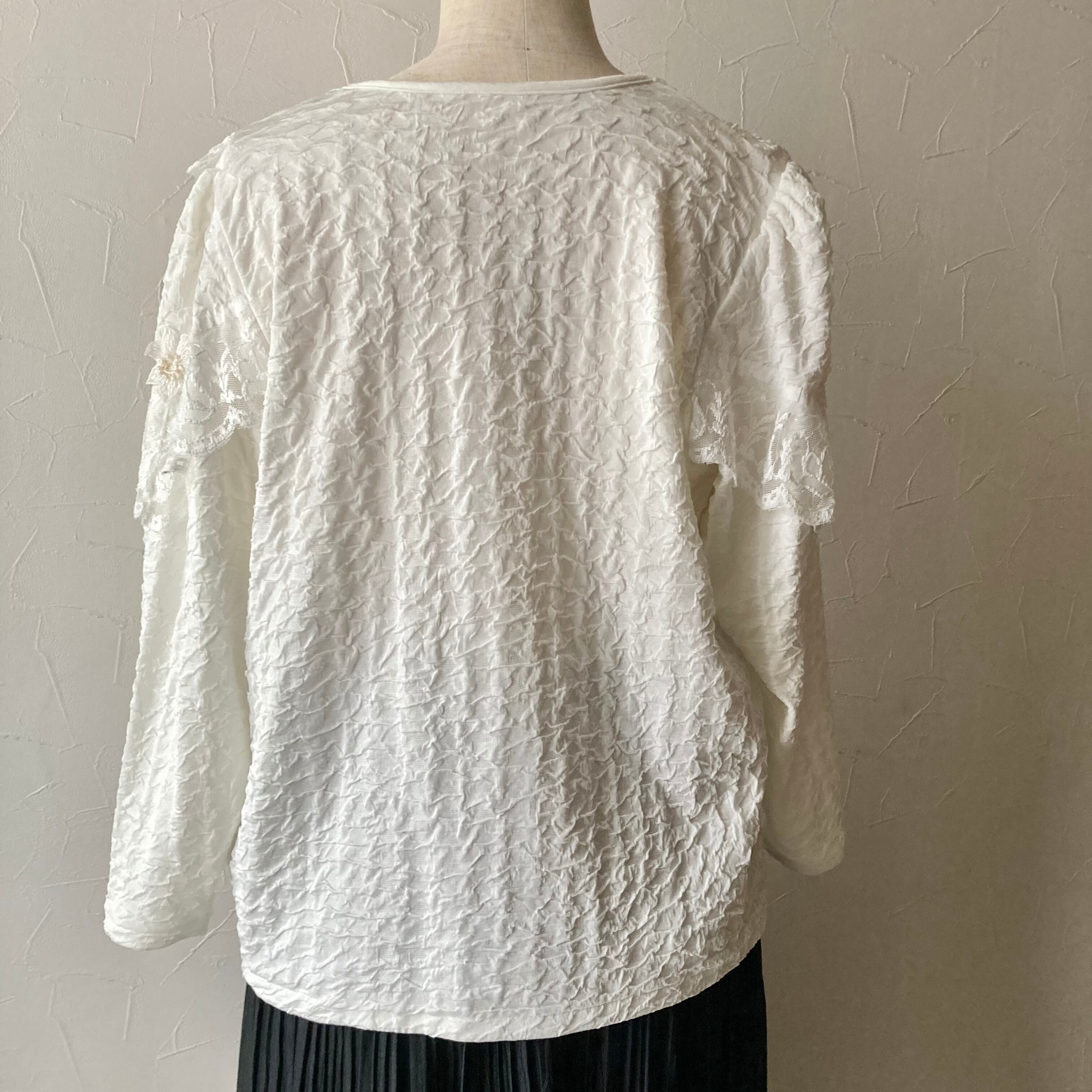 レースビーズ装飾しわしわトップス 昭和レトロ 古着 used