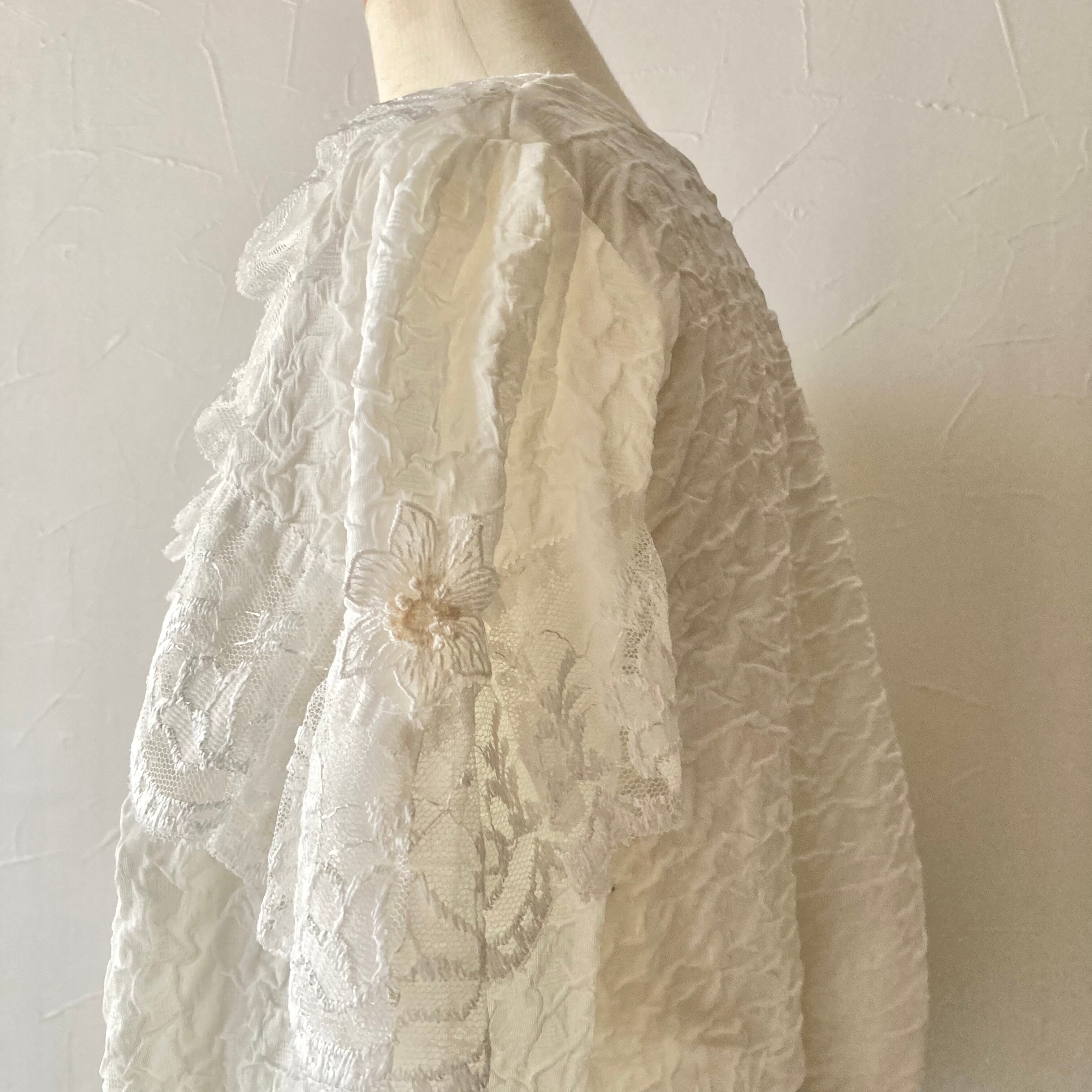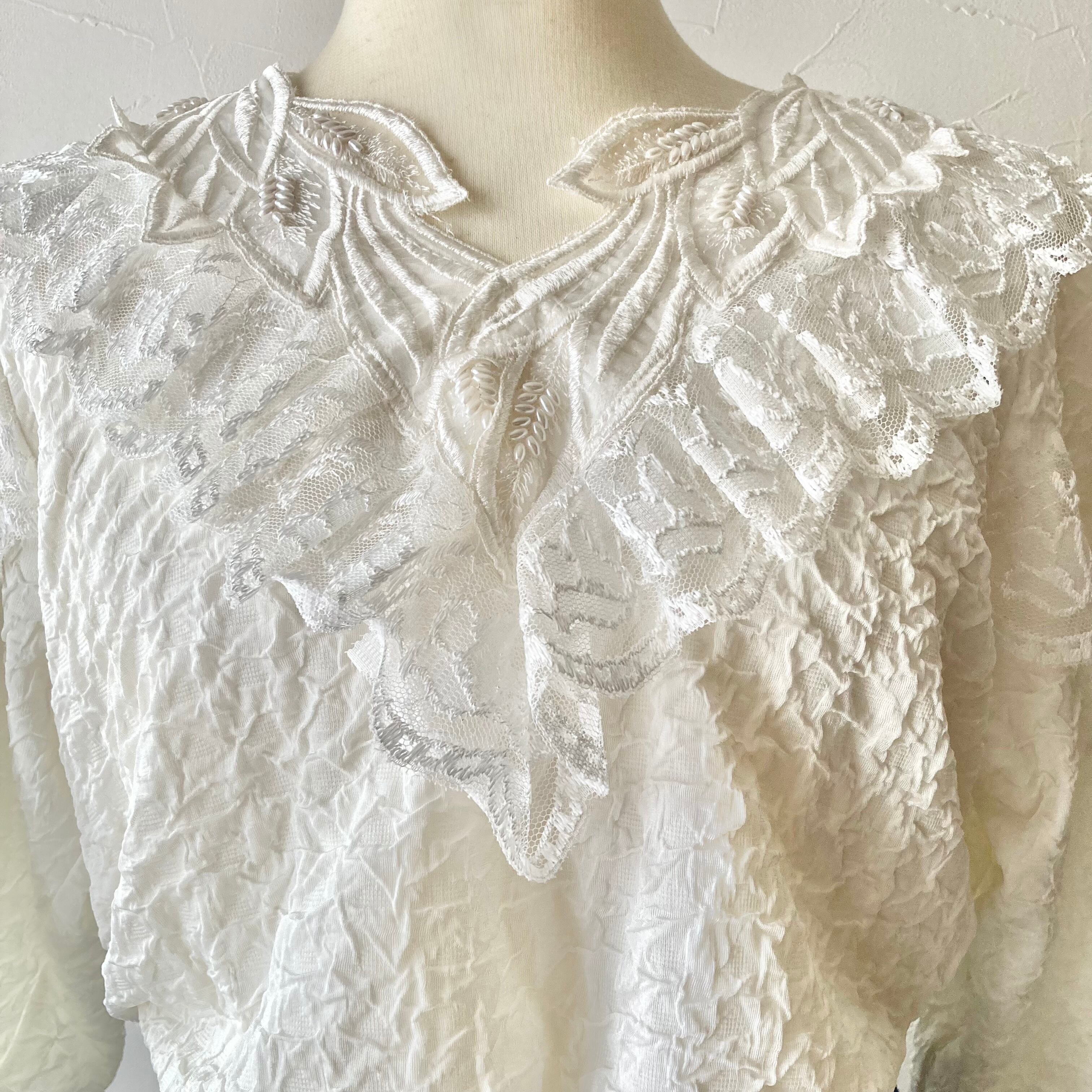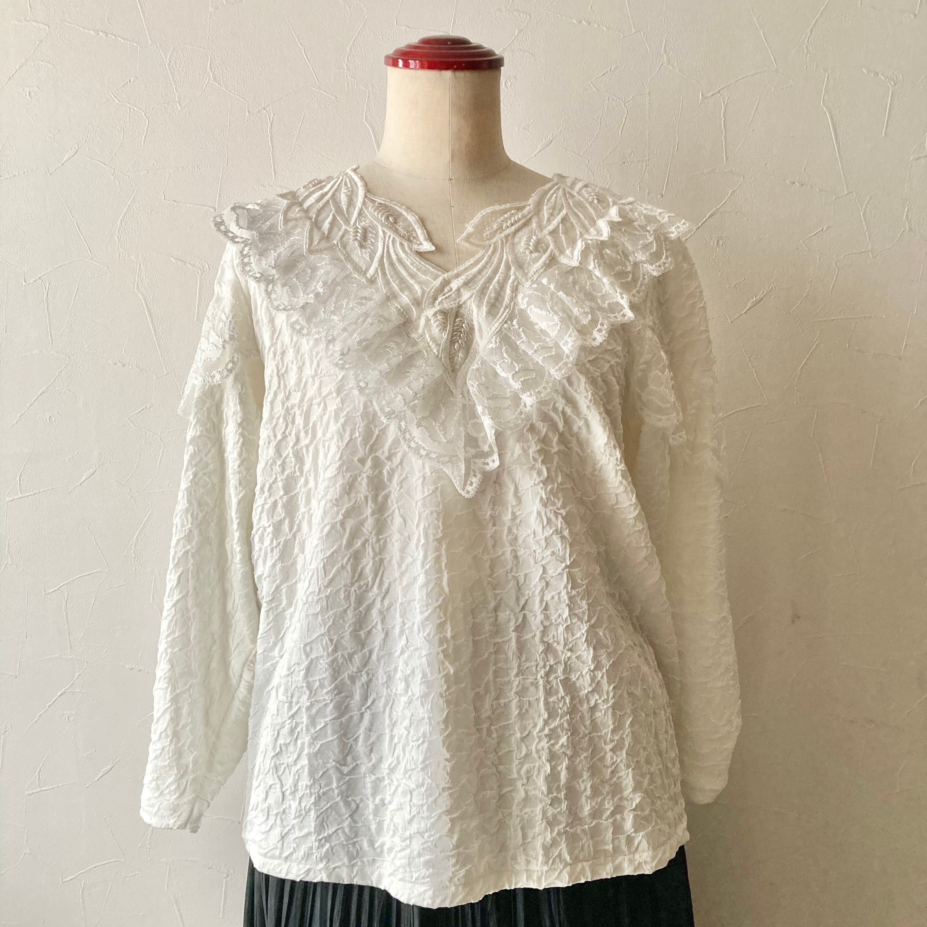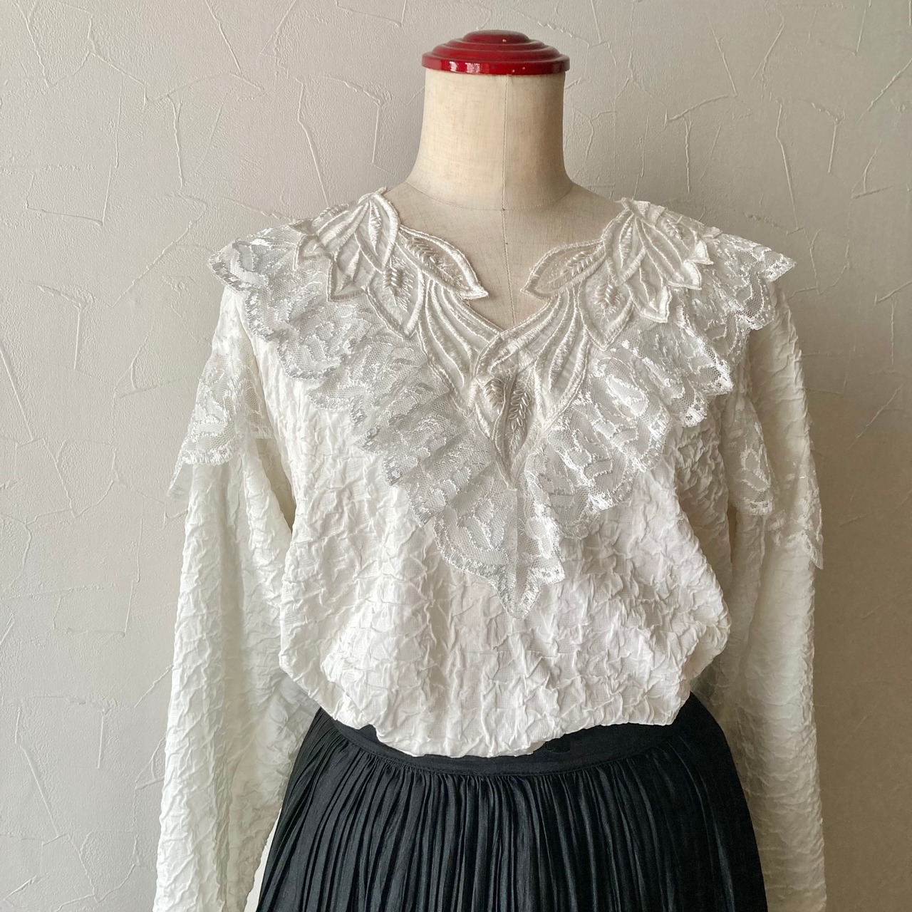 レースビーズ装飾しわしわトップス 昭和レトロ 古着 used