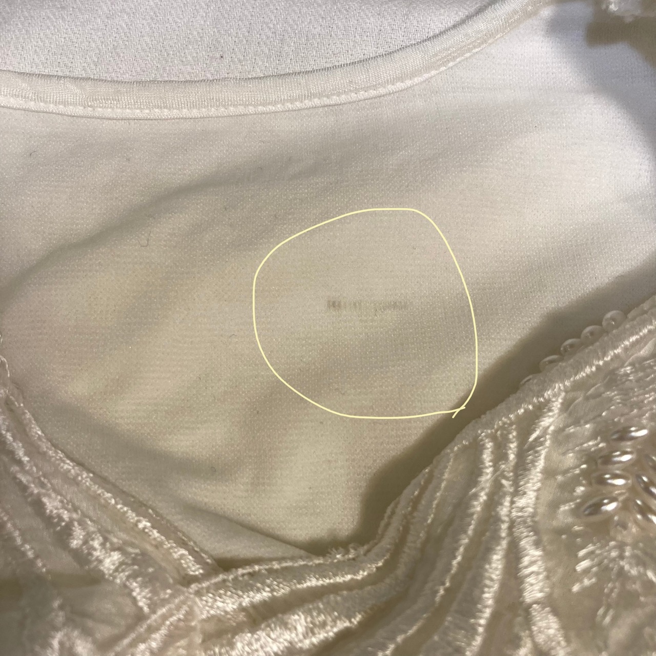 レースやビーズの装飾が華やかで可愛らしいしわしわ加工のトップスです◯