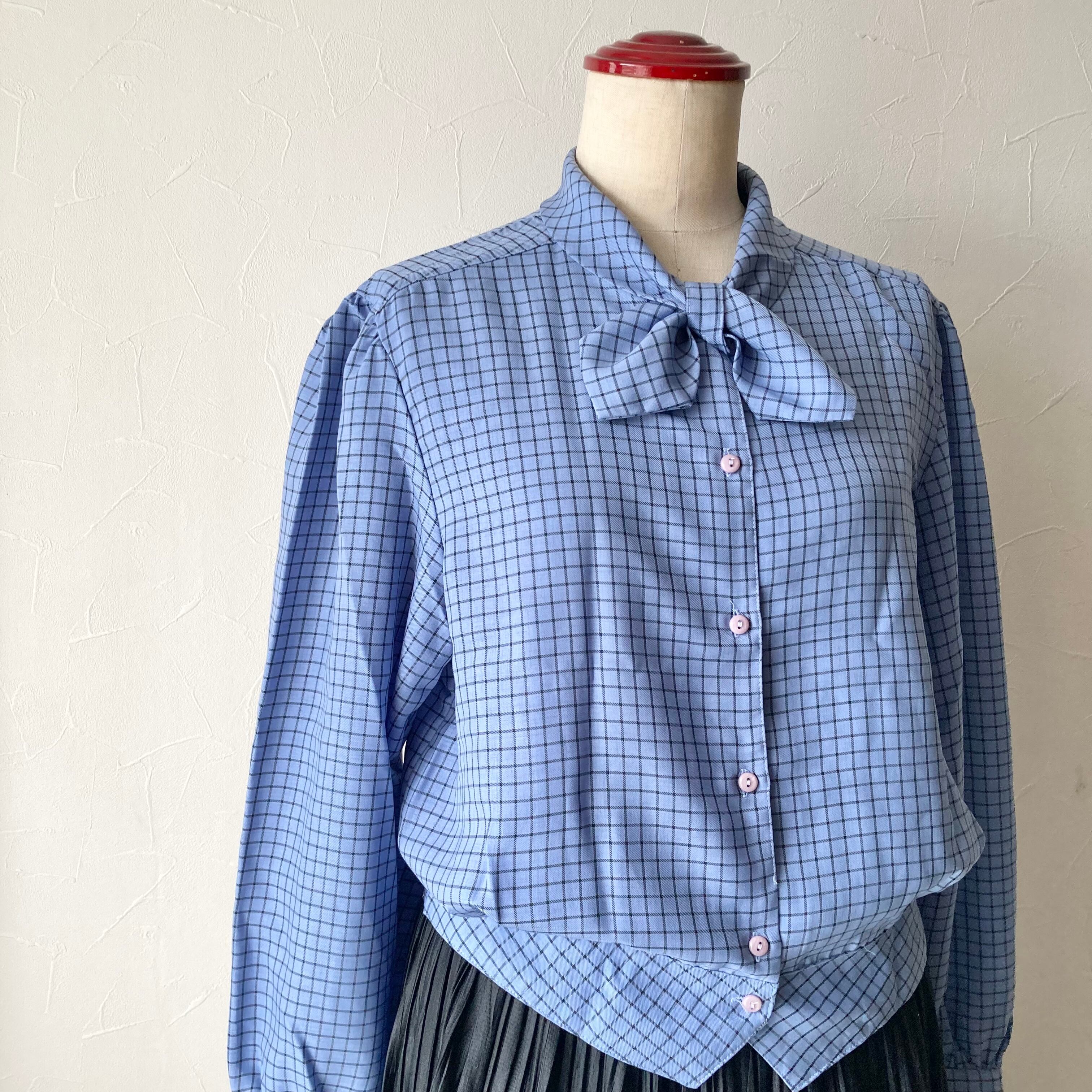 チェックリボンブラウス 昭和レトロ 古着 used vintage