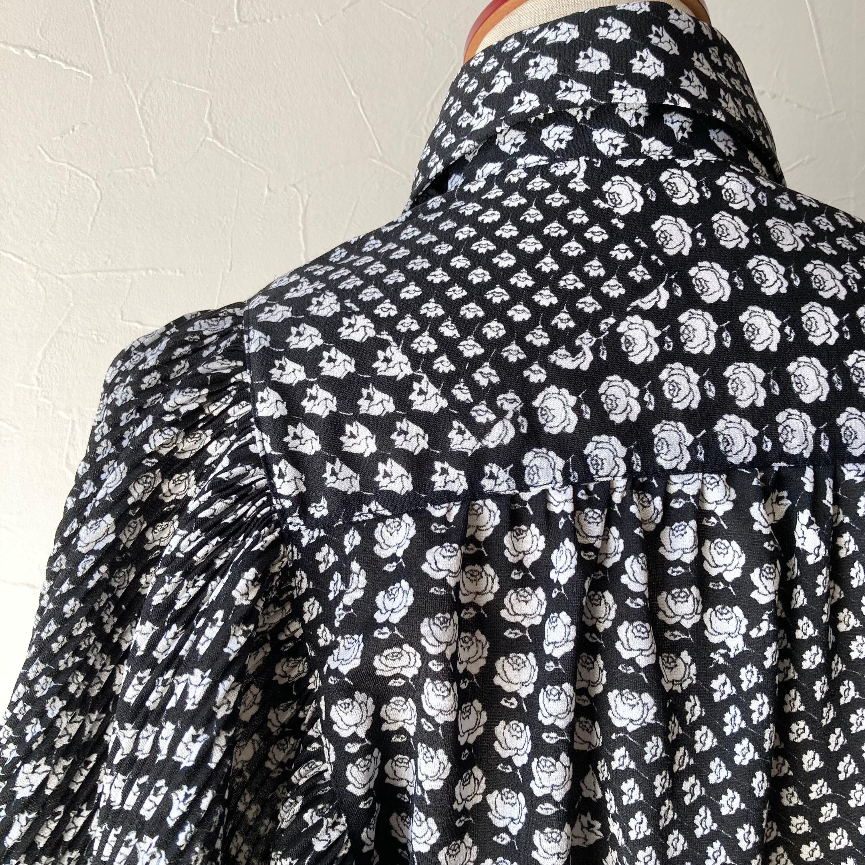 バタフライスリーブ薔薇柄ブラウス 昭和レトロ 古着 used vintage