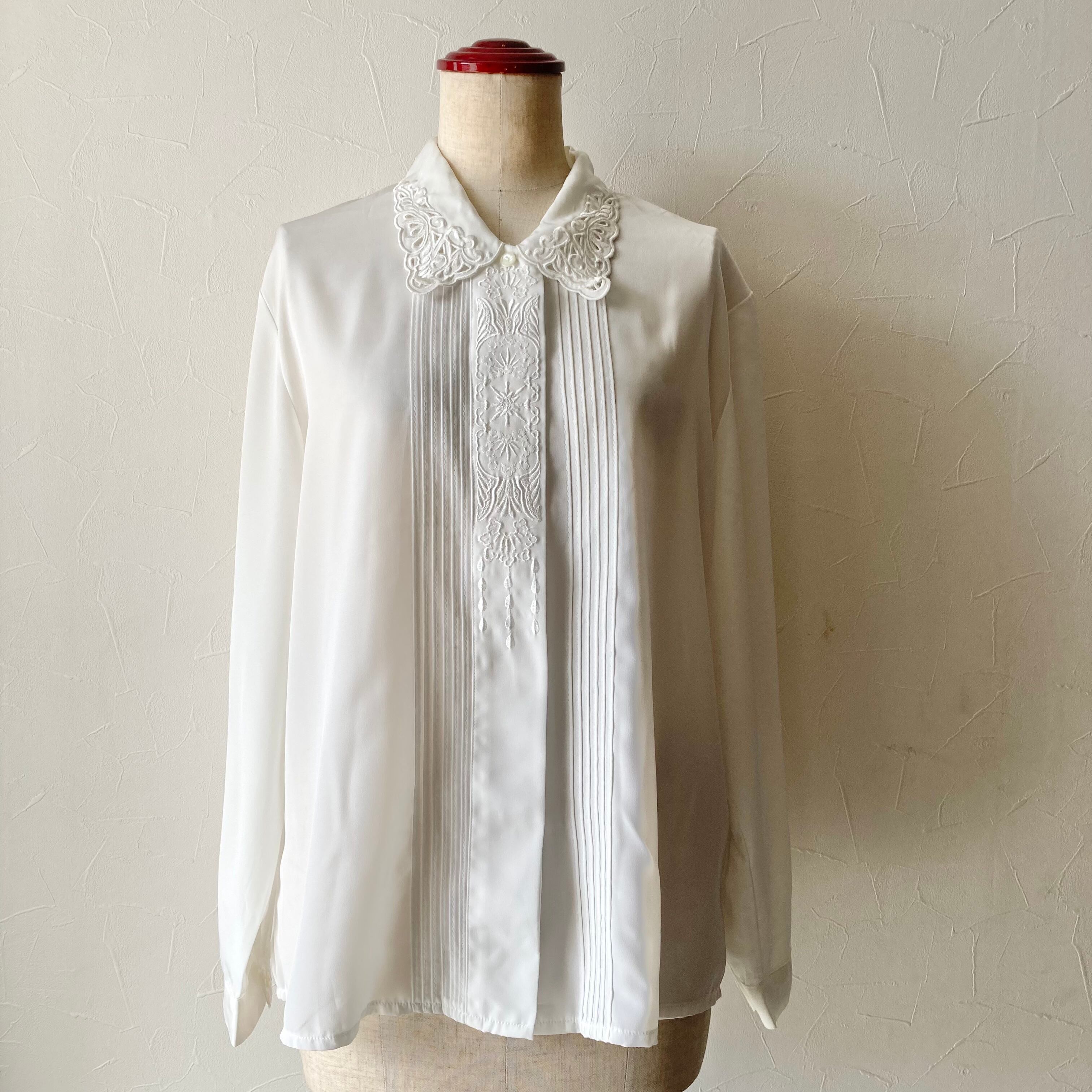 襟カットワーク刺繍ブラウス 昭和レトロ 古着