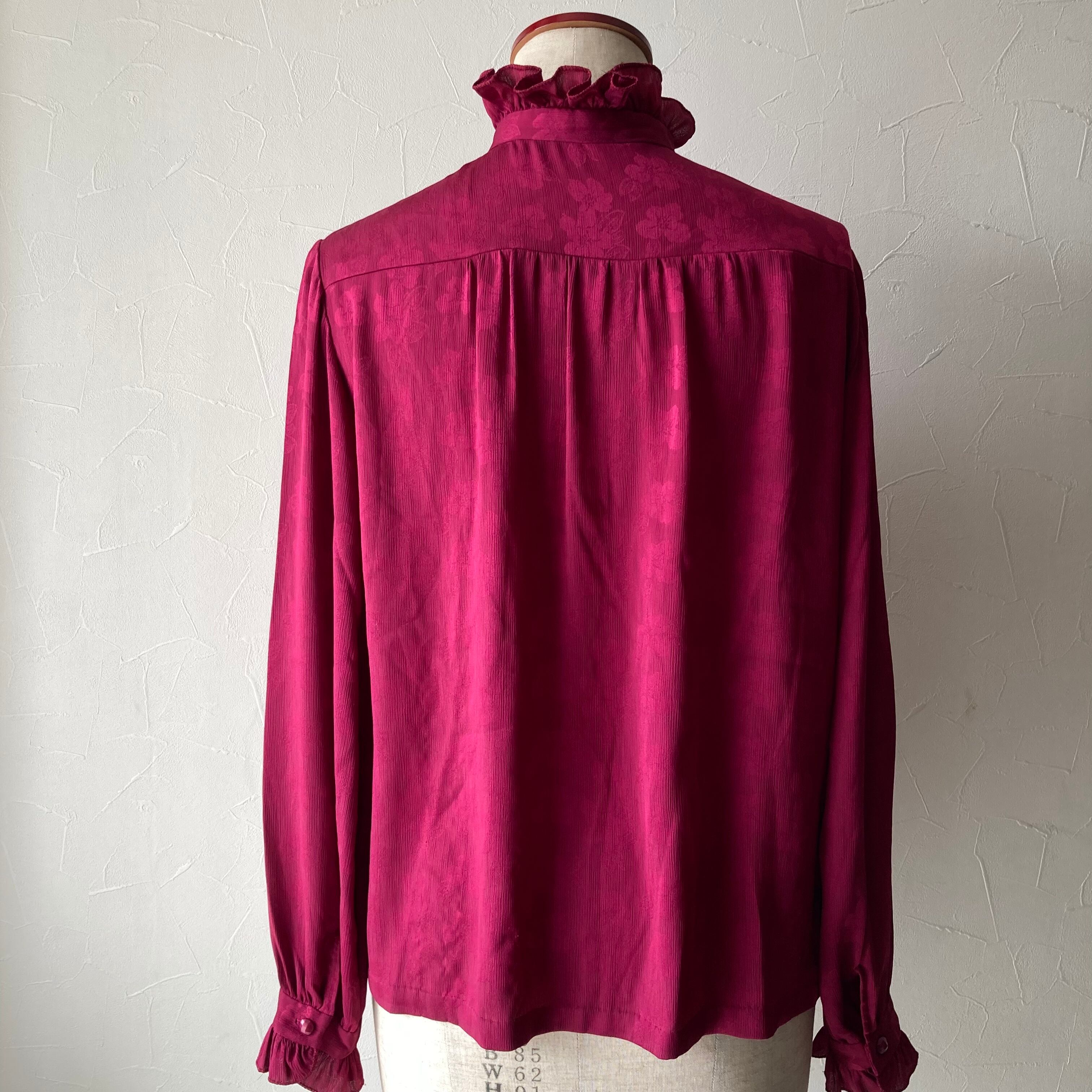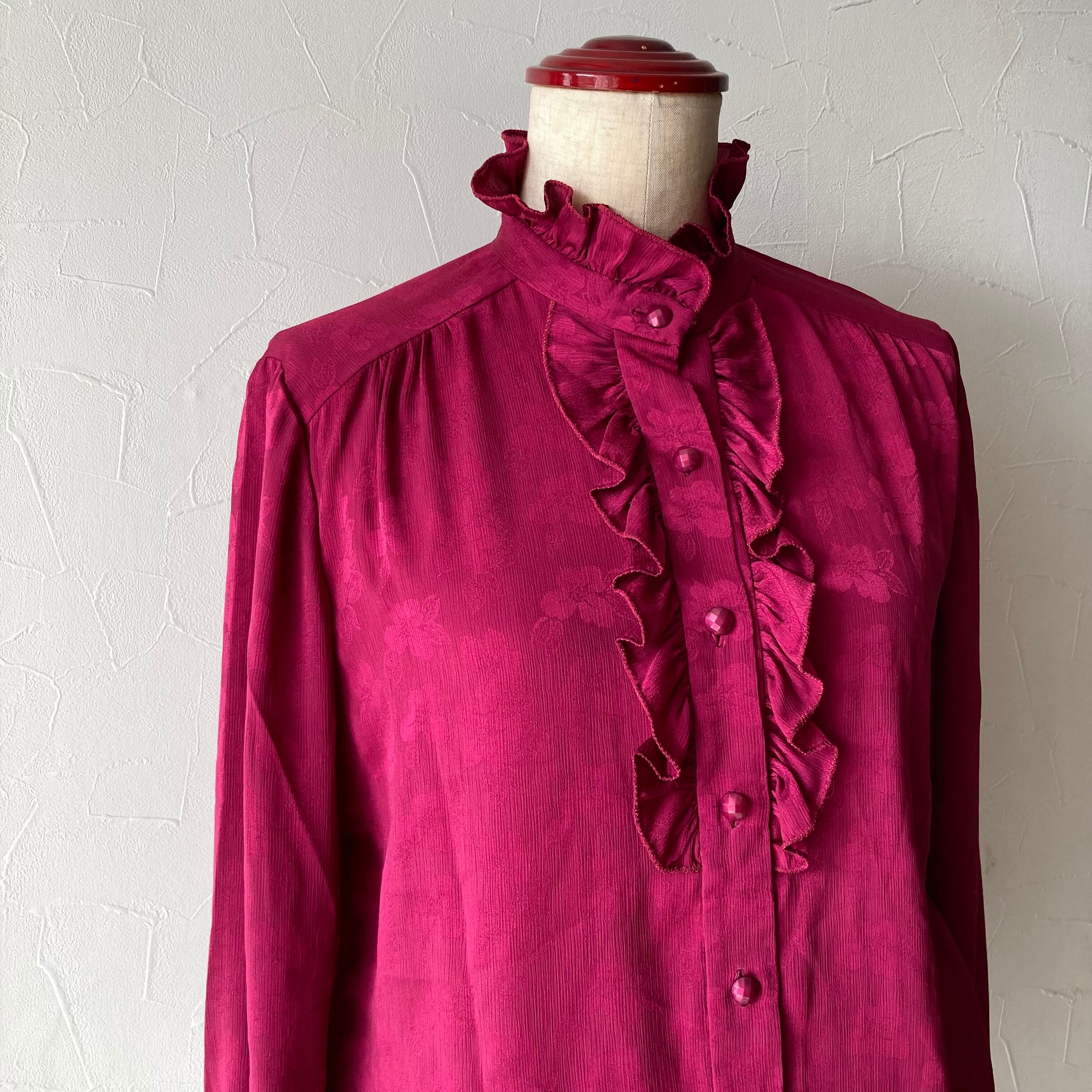 ワインレッド花模様フリルブラウス 昭和レトロ 古着 used vintage
