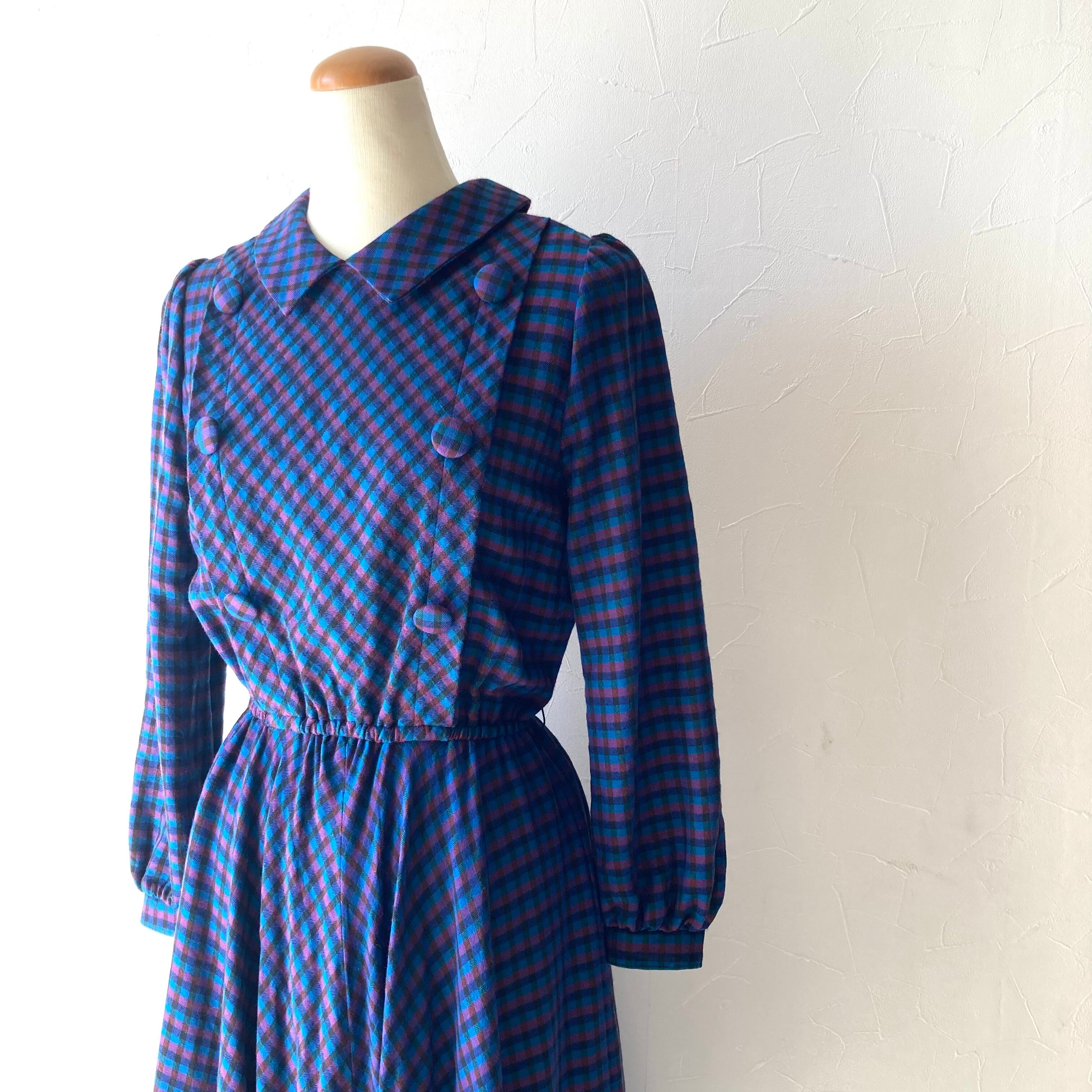 フロントの大きめ飾りボタンにパフスリーブ、フレアなスカートがレトロで可愛らしいチェックのワンピースです◯