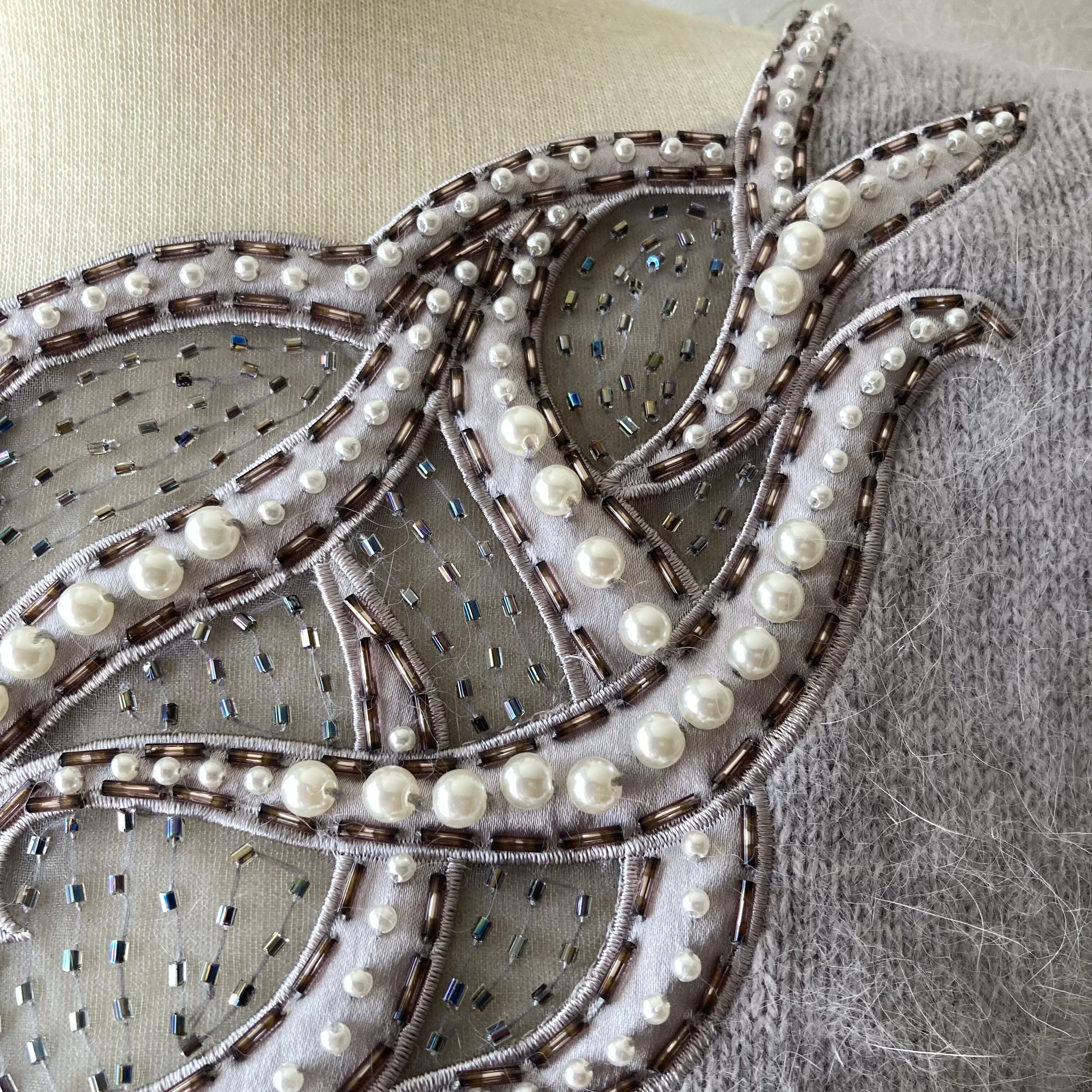 とてもエレガントでゴージャスな素敵な刺繍が施さた淡いグレーのニットです◯
