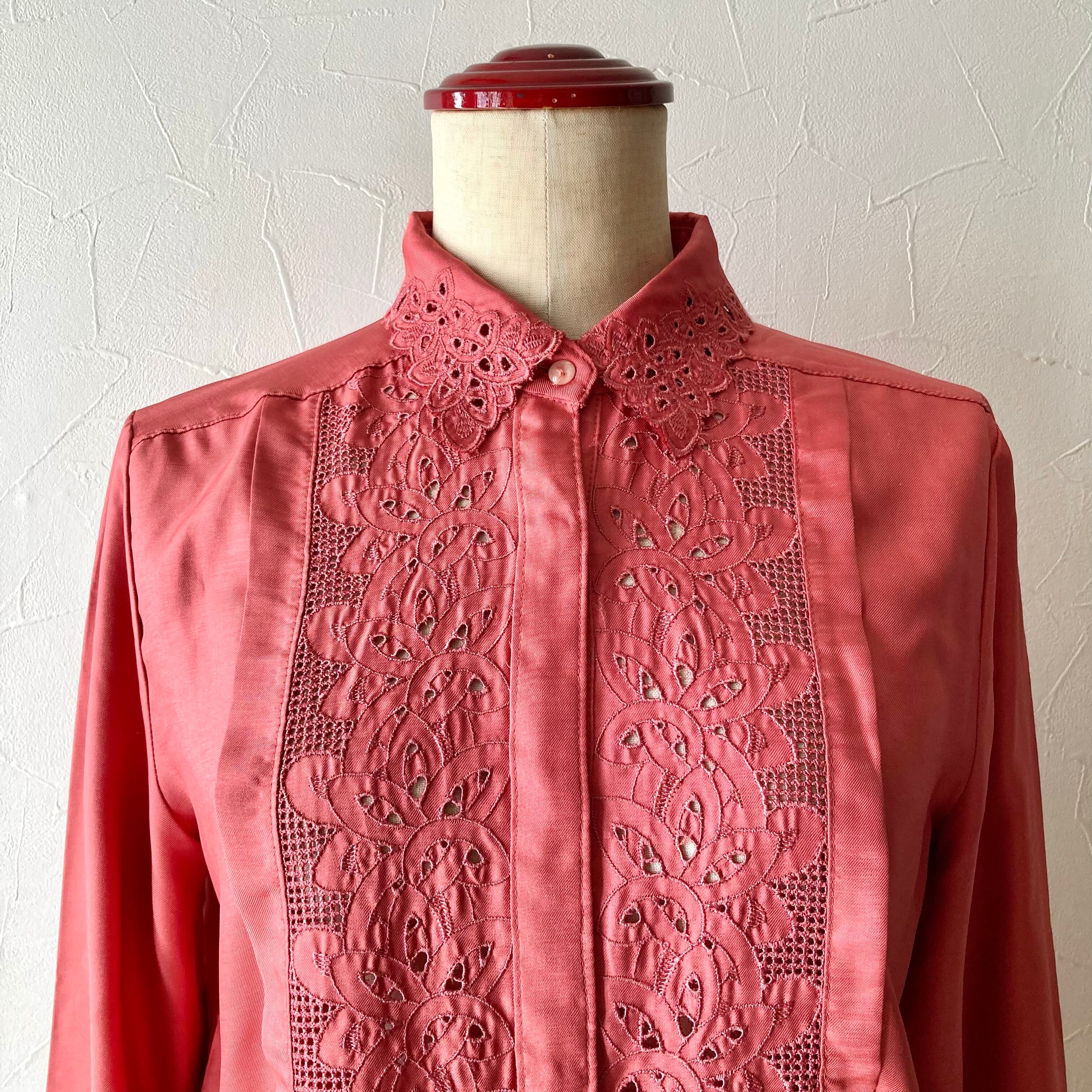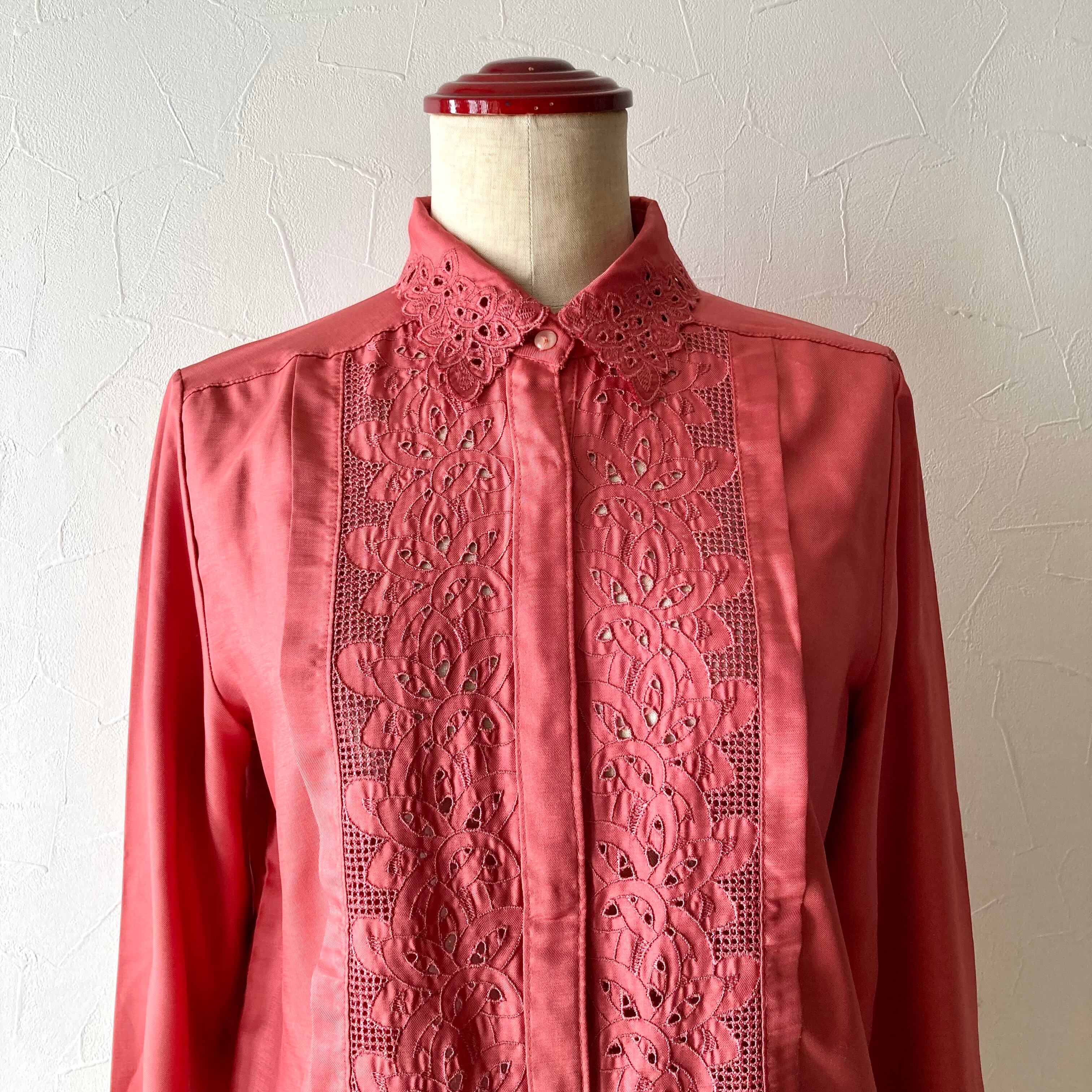 ピンクカットワークブラウス 昭和レトロ 古着 used vintage