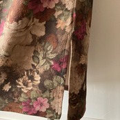 エレガントな花柄に茶系にピンクのお花が美しく、何か物語を感じような、素敵なスリット入りロングスカートです◯