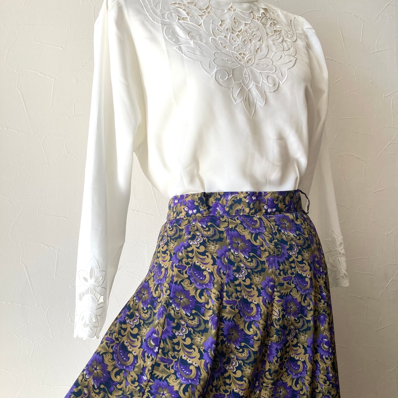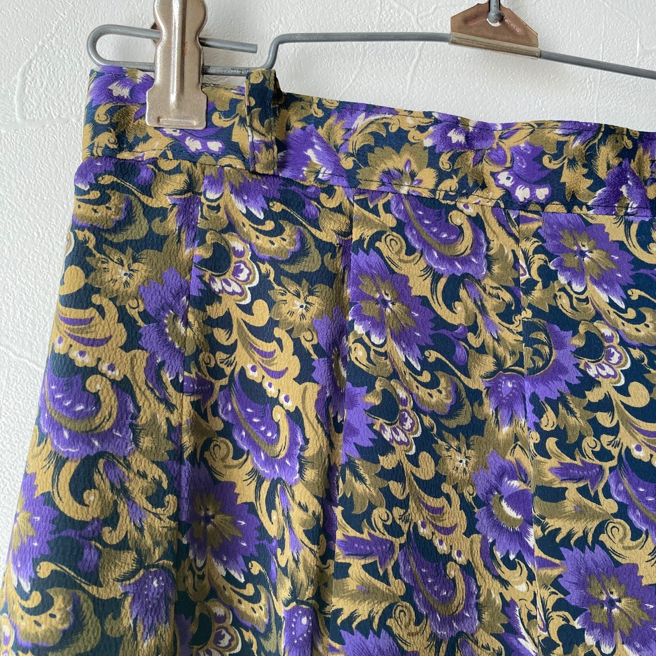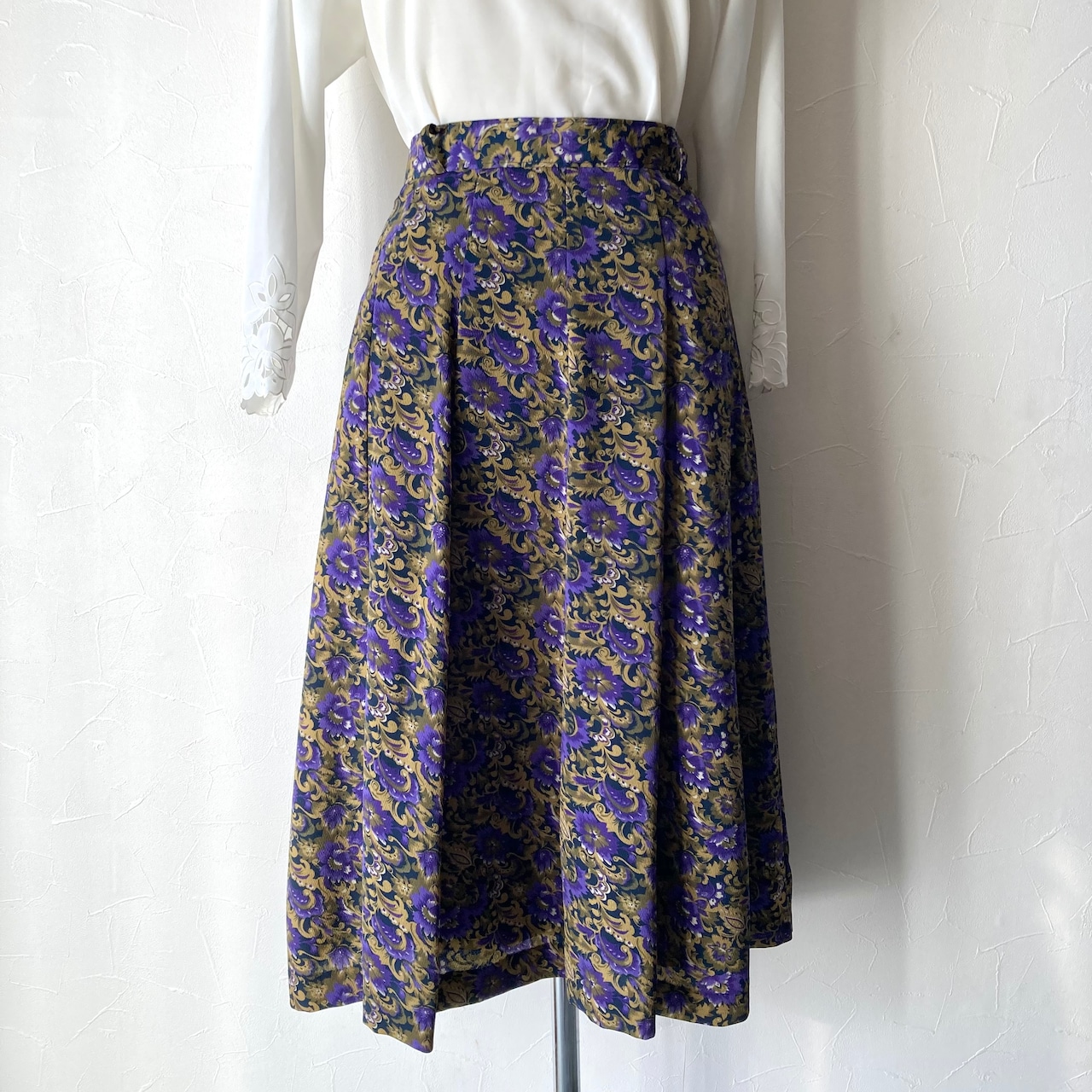 紫のボタニカル柄スカート 昭和レトロ 古着 used