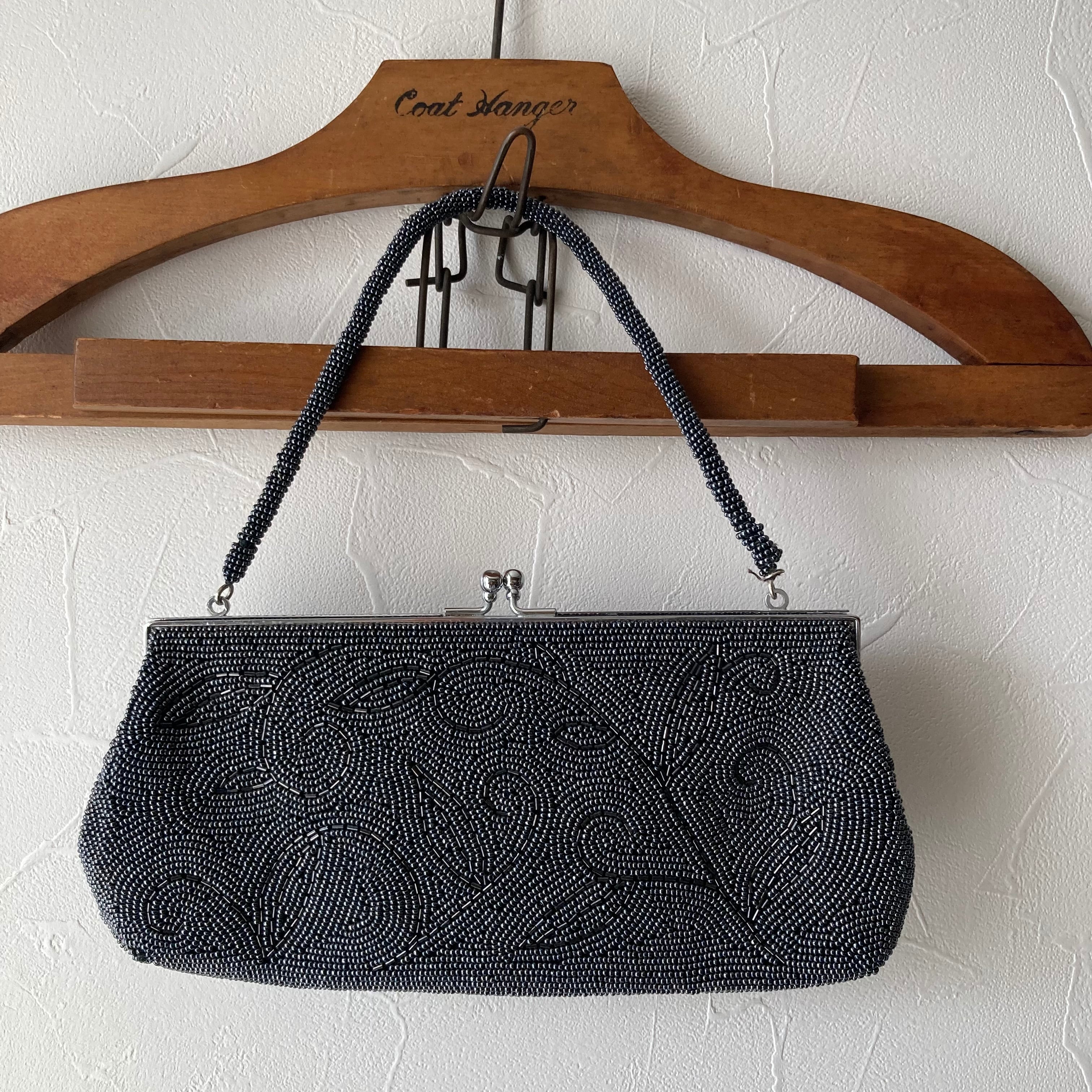 取手部分もビーズの横長サイズのビーズ刺繍バッグです。