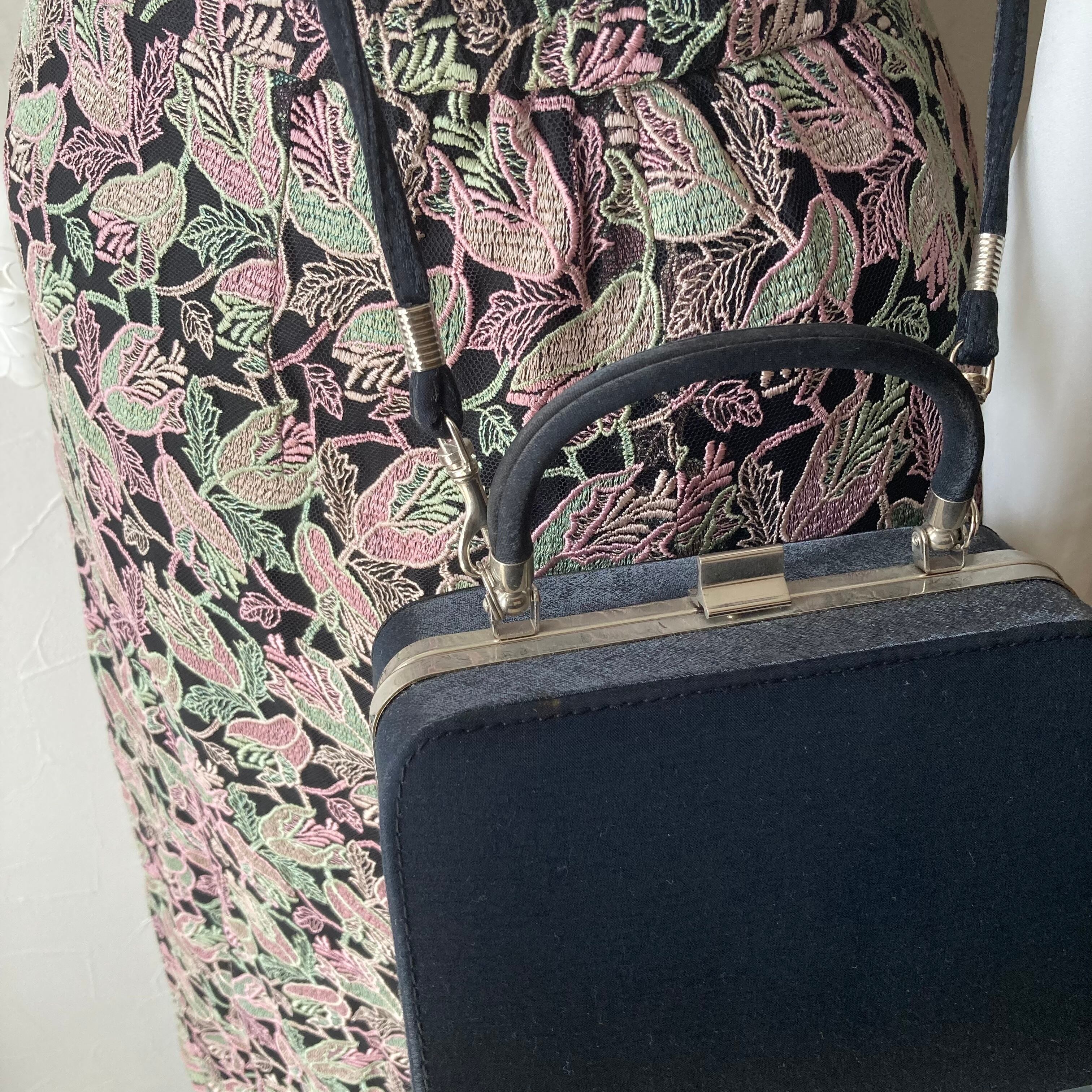 黒の箱型ショルダーバッグ 昭和レトロ used vintage