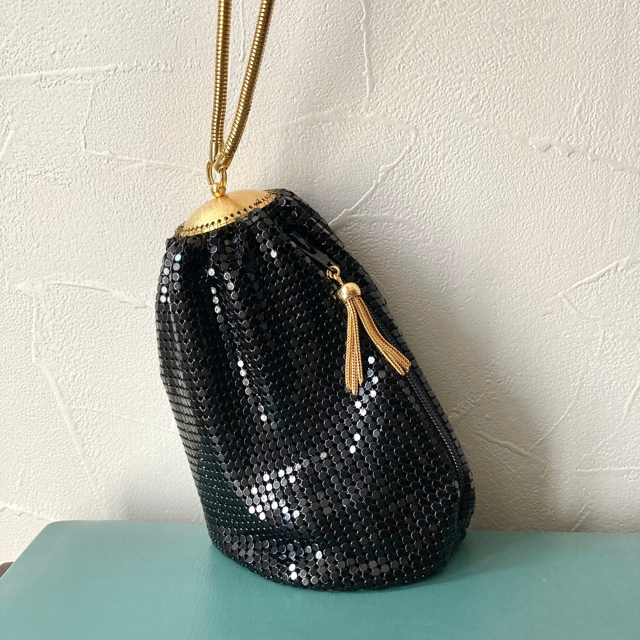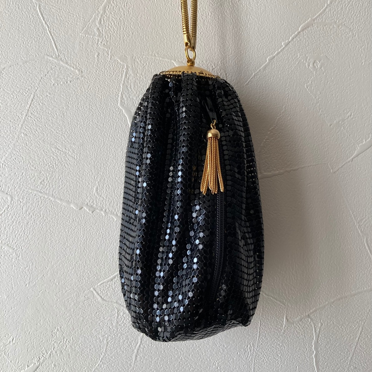 キラキラスパンコールにゴールドチェーンとゴールドタッセルがピリッとクールでおしゃれな小さなポーチです。