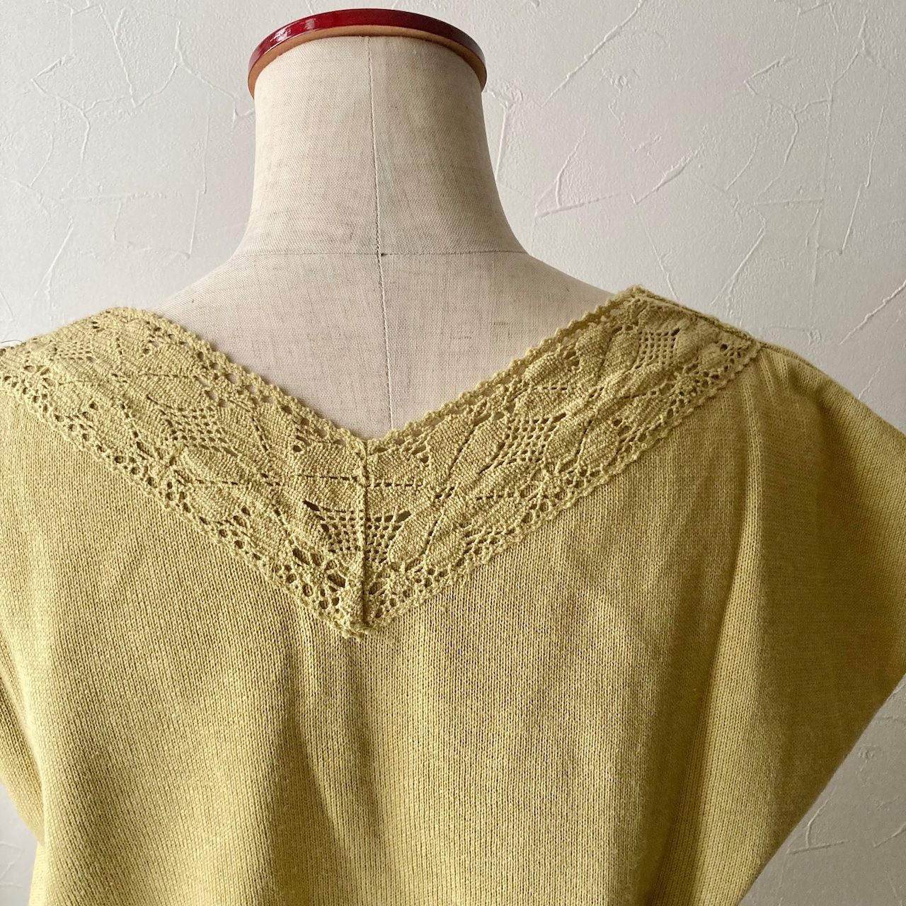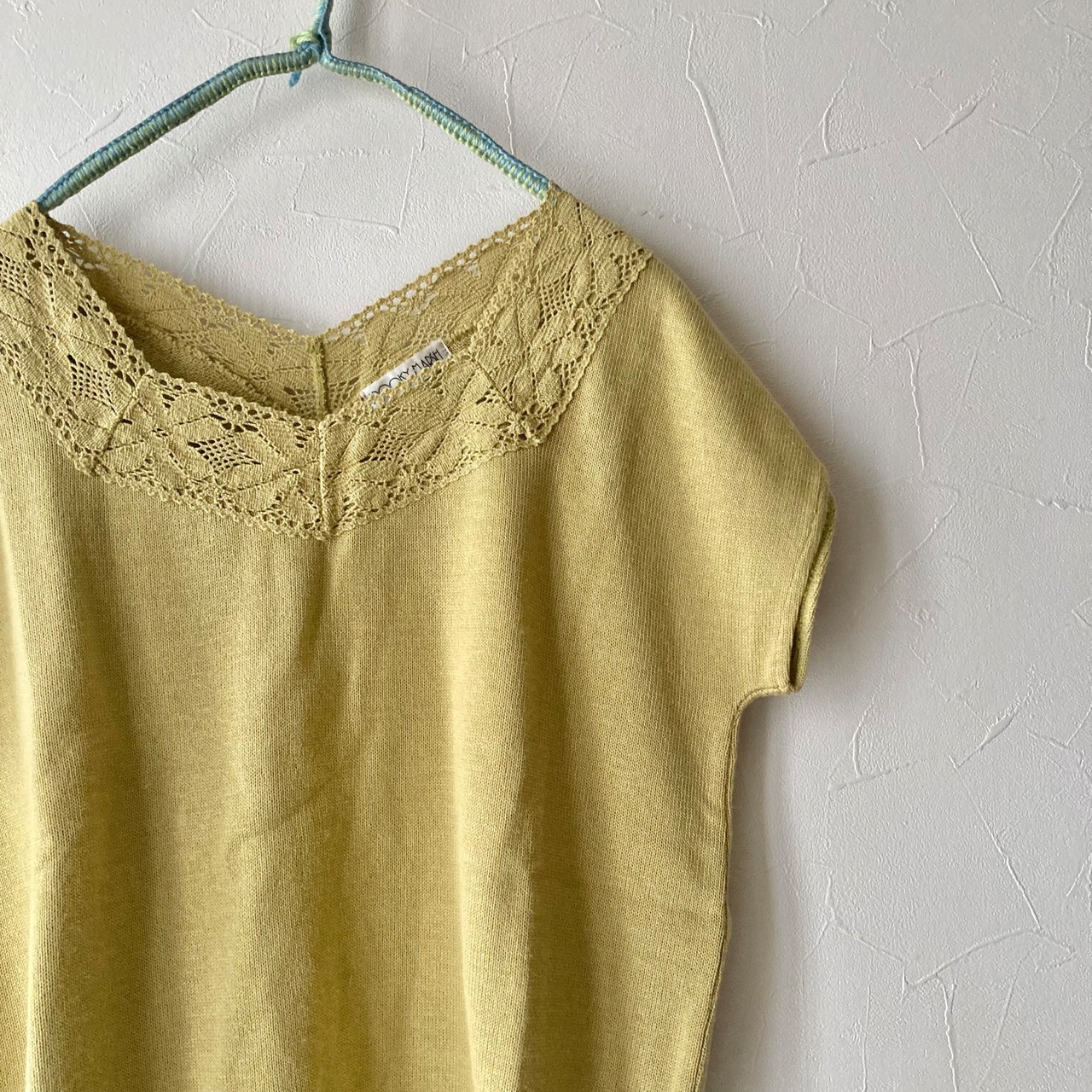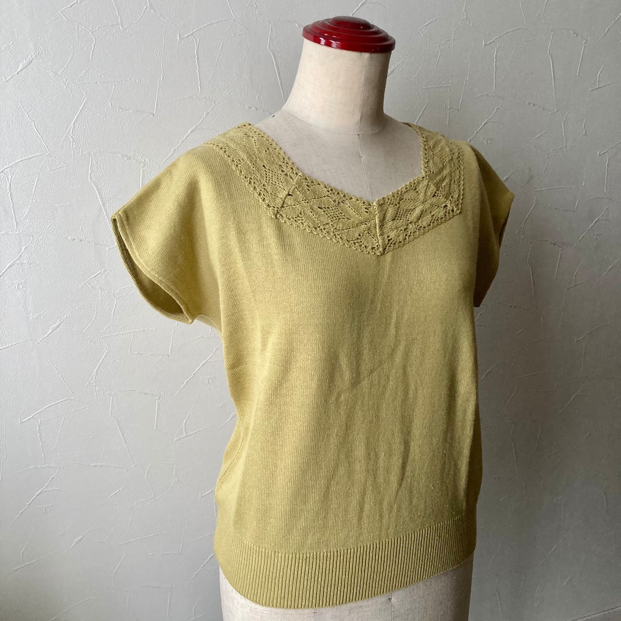 マスタードカラーフレンチスリーブトップス 昭和レトロ 古着 used